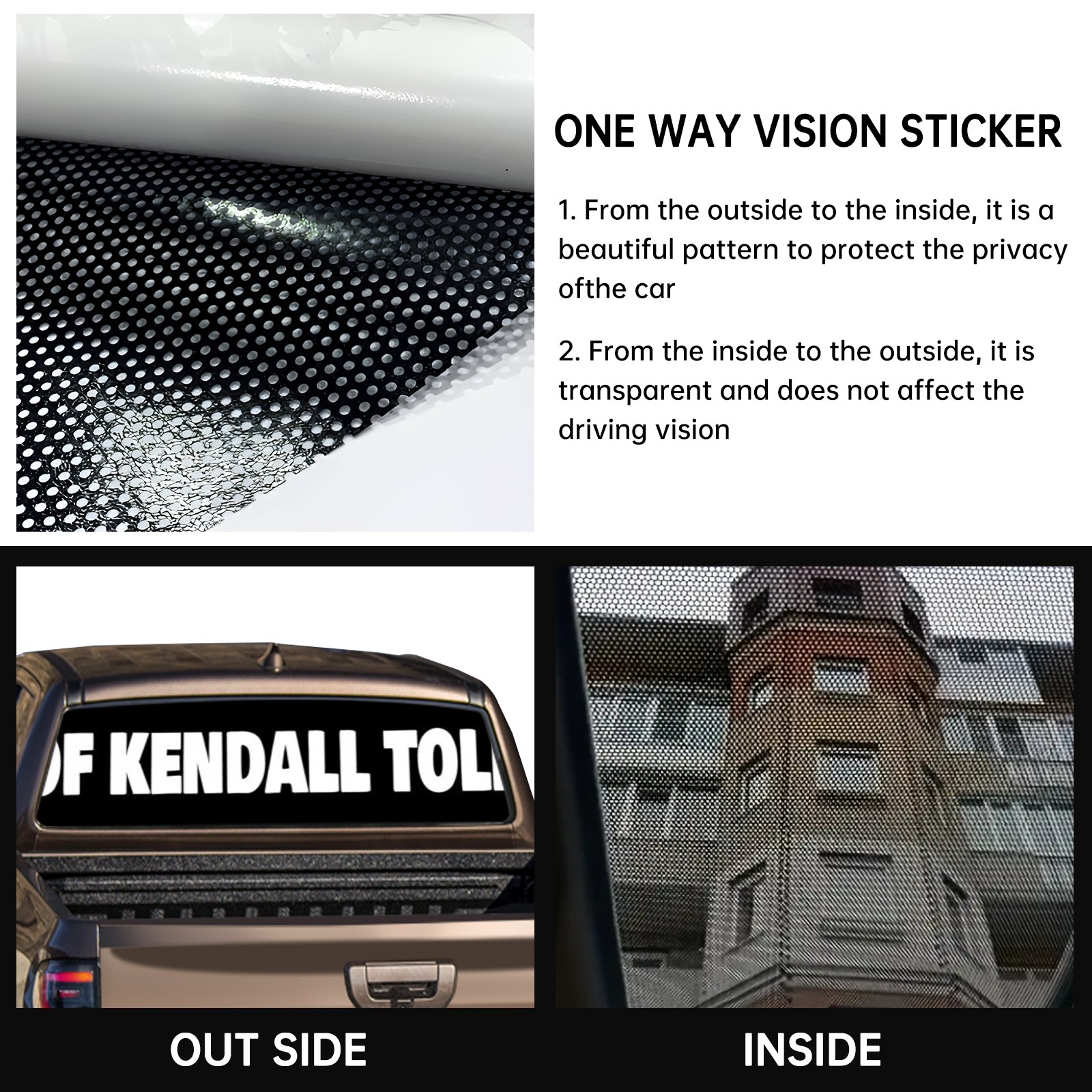 <p><strong>Truck Rear Window Graphics Decals Pickup Trucks Back Window Film Stickers 66" x 22" Perforated Vinyl Wrap Stickers Decorations for Car Rear Window</strong></p><p><strong><br /></strong></p><p><strong>Features :</strong></p><p>- Size of the rear window decals for trucks is 66x22 Inches (168x56cm).</p><p>- High quality perforated vinyl window film, one way vision sticker.</p><p>- Perforated is see through from the inside but not from outside.</p><p>- Clear printing, waterproof and durable.</p><p>- The car back window graphics stickers fits most truck and makes your vehicle more beautiful.&nbsp;</p><p><br /></p><p><strong>【Installation Instructions】</strong></p><p><strong>1. CLEAN SURFACE -</strong> Clean the rear window thoroughly and make sure the surface clean.</p><p><strong>2. STICK THE DECALS -</strong> Tear off the paper on the back and stick the decal on the window.</p><p><strong>3. SCRAPE OFF AIR BUBBLES -</strong> Use a squeegee or other card to scrape off the excess air bubbles.</p><p><strong>4. TRIM THE EXCESS -</strong> Use a knife to cut off the excess stickers of the window, finally complete.</p><p><br /></p><p>1. Please measure the size before purchasing, back window graphics decal for truck can be cut to your desired size.</p><p>2.The graphics stickers for truck back window is a great gift for yourself also can as a birthday / halloween / christmas gift for your friends and family.</p>