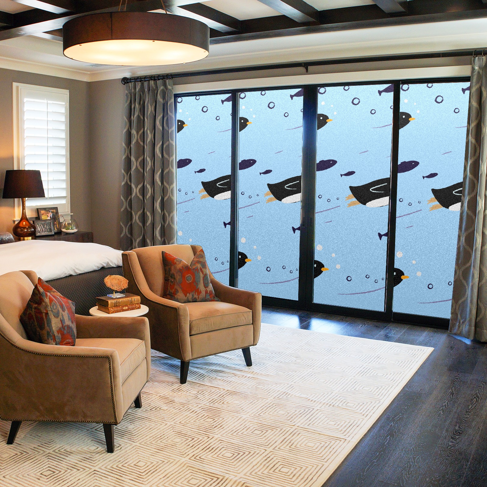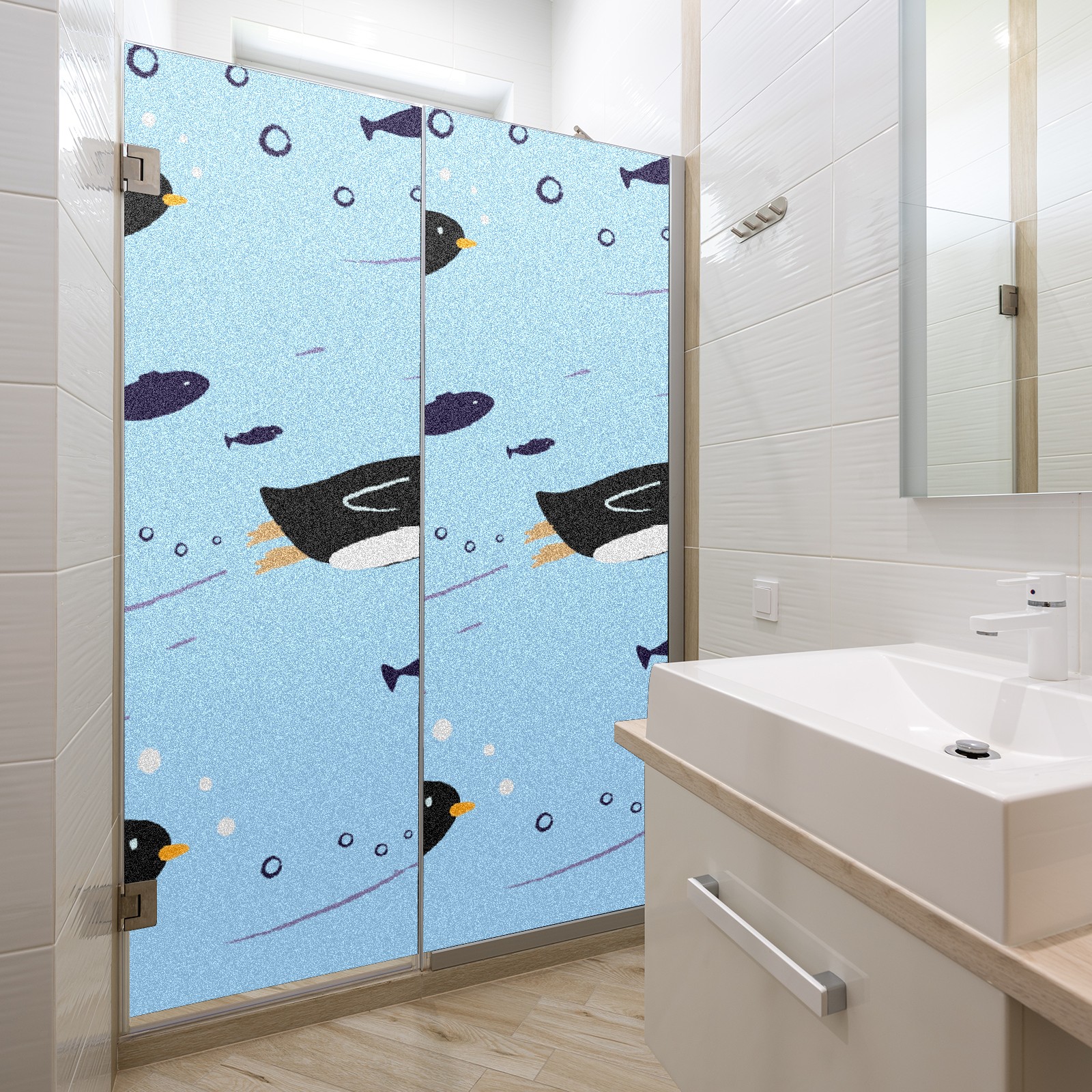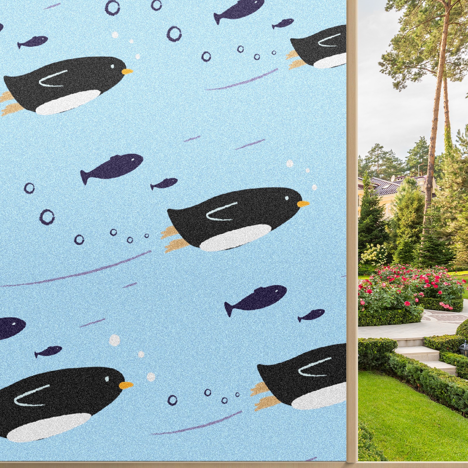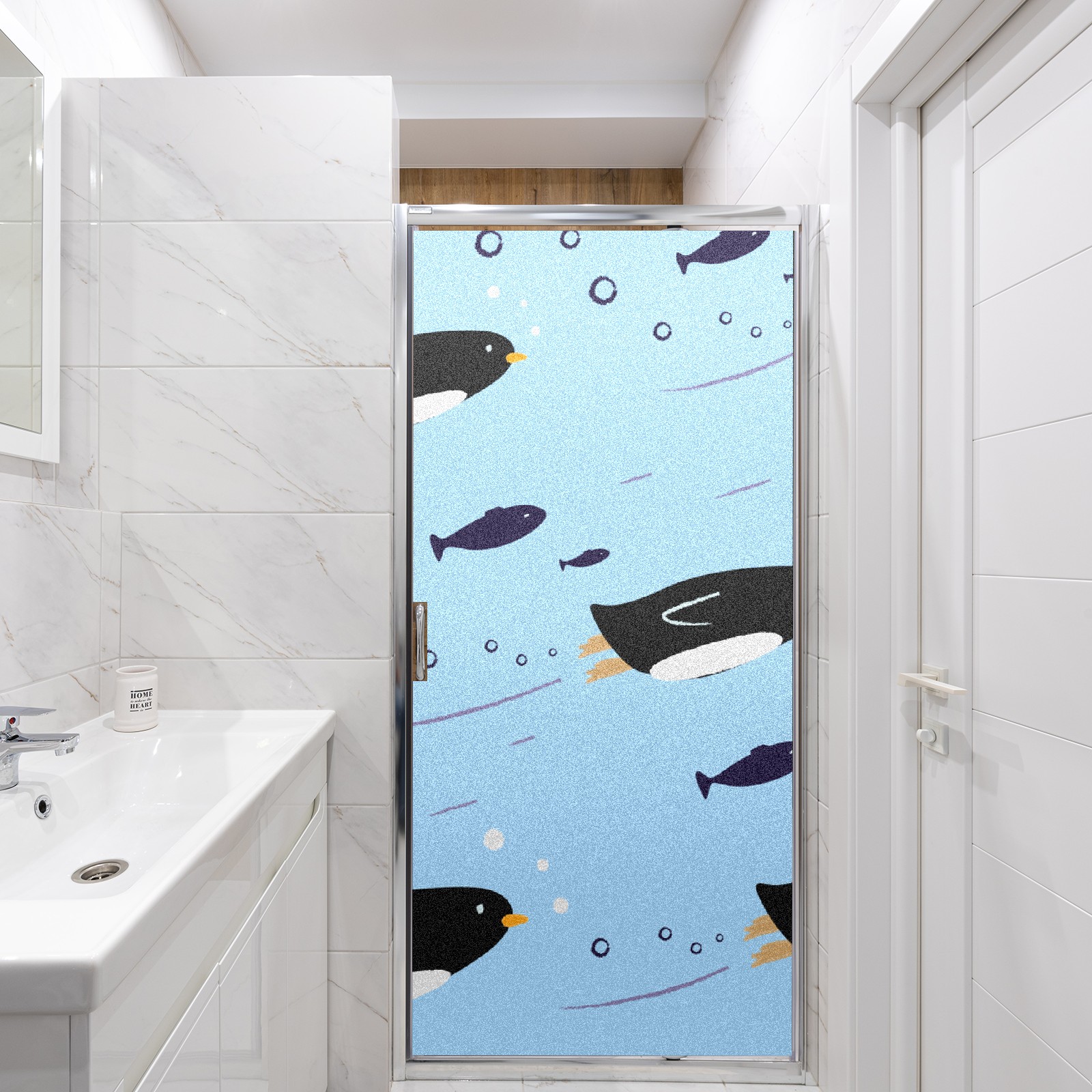 Window Privacy Film Frosted Stained Glass Film Decorative Static Cling for Bathroom Home Office Peel and Stick Window Film Cute Penguin(17.7x23.6in)