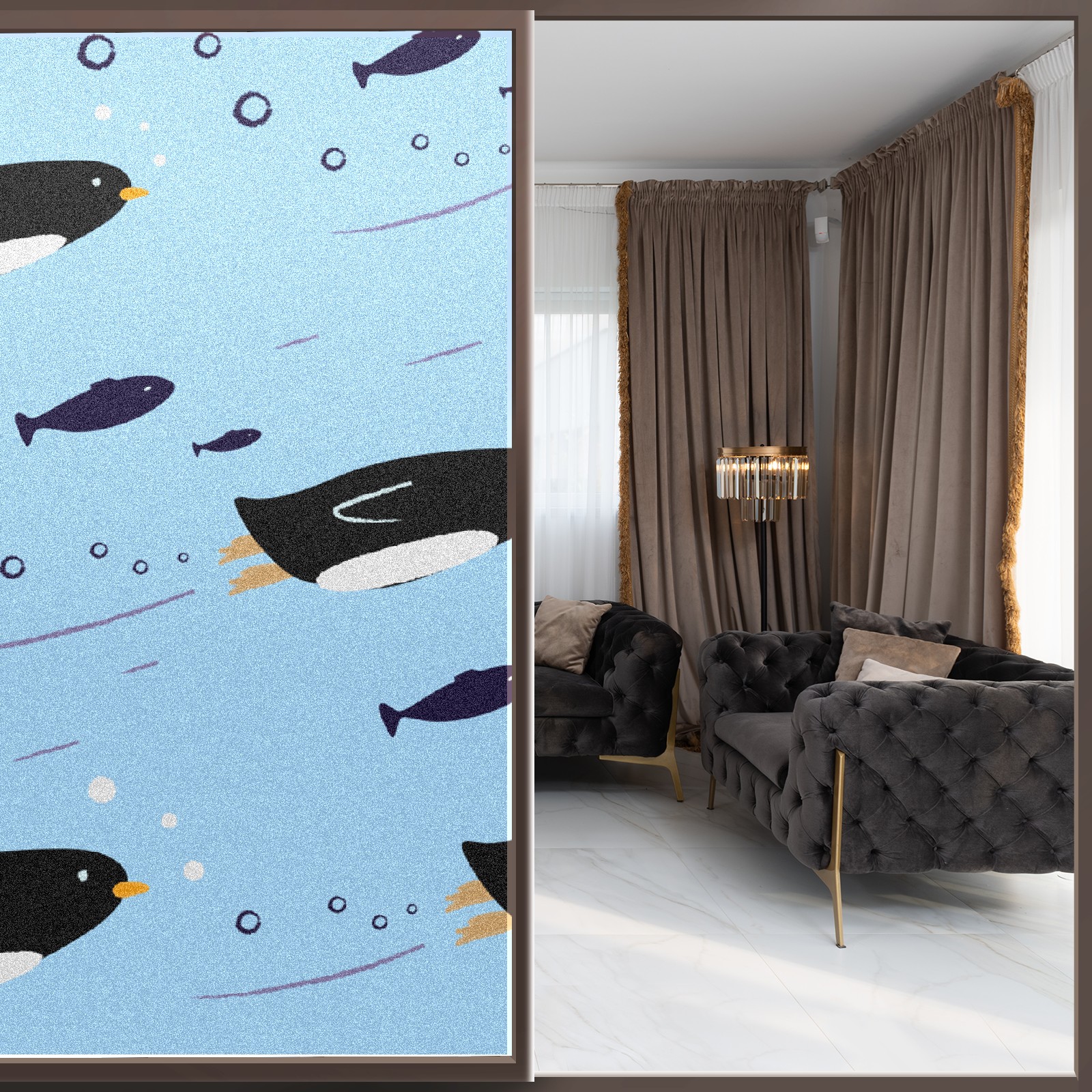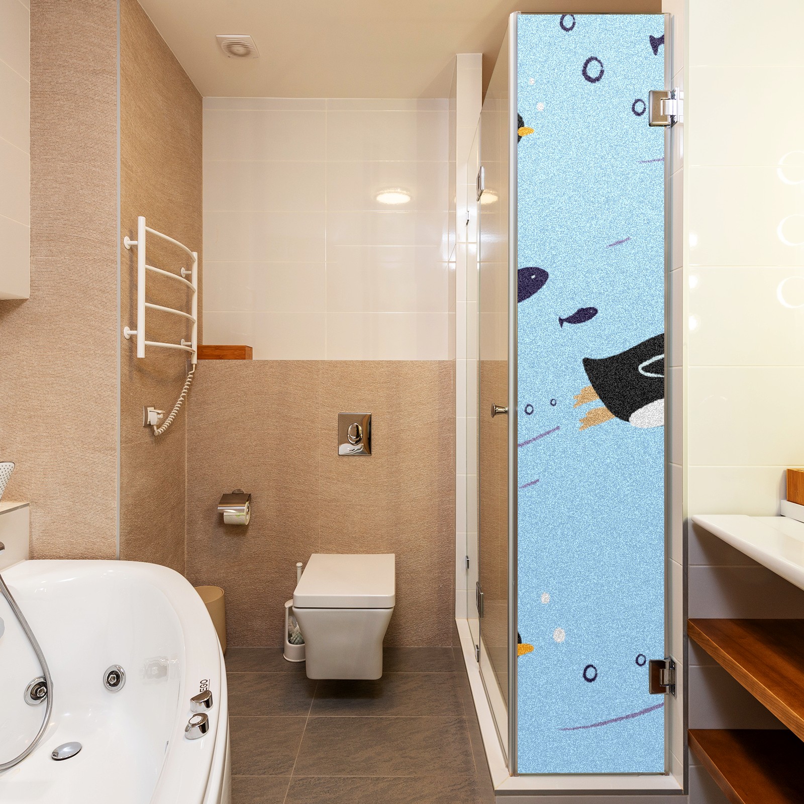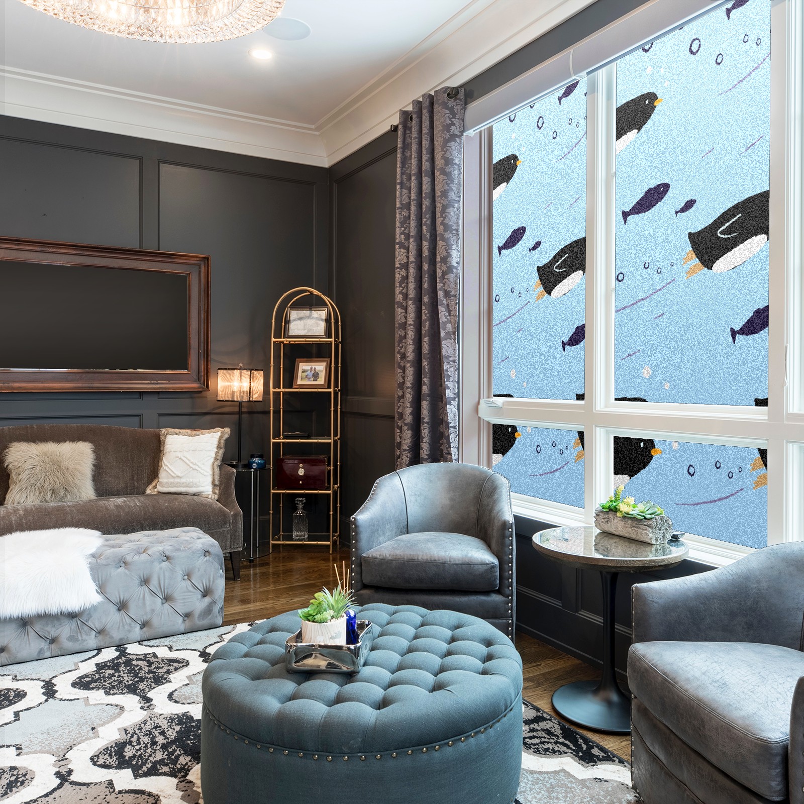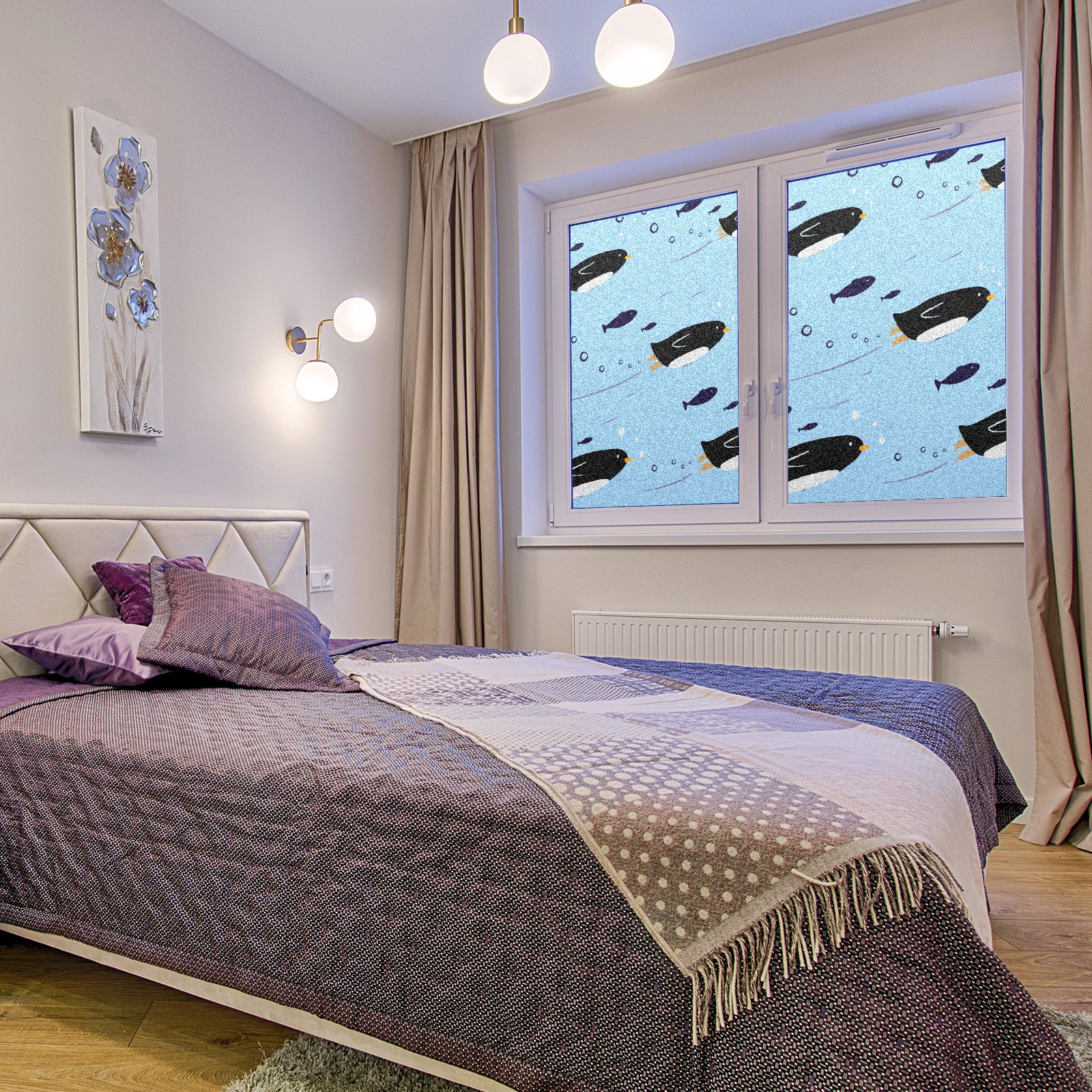 Window Privacy Film Frosted Stained Glass Film Decorative Static Cling for Bathroom Home Office Peel and Stick Window Film Cute Penguin(17.7x23.6in)