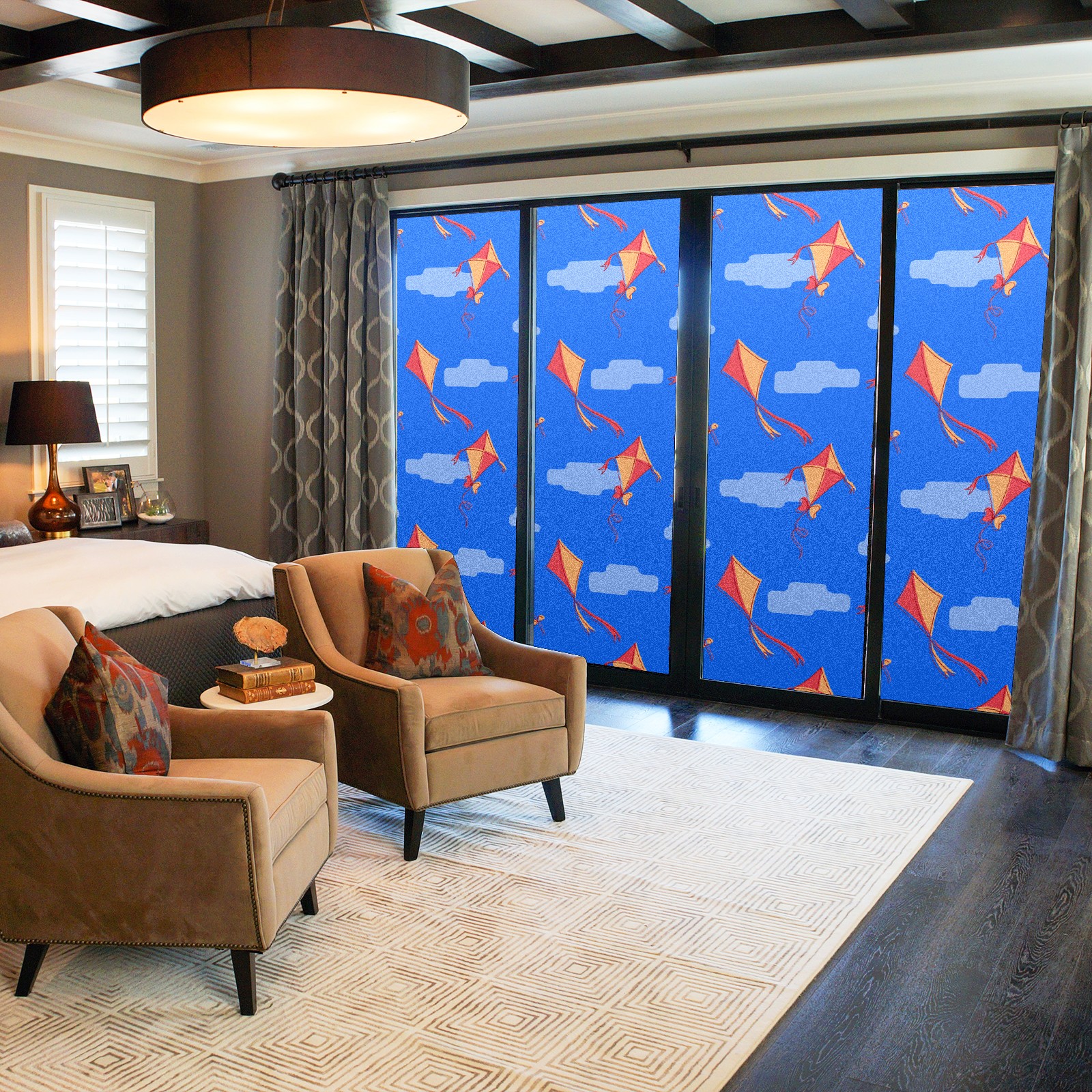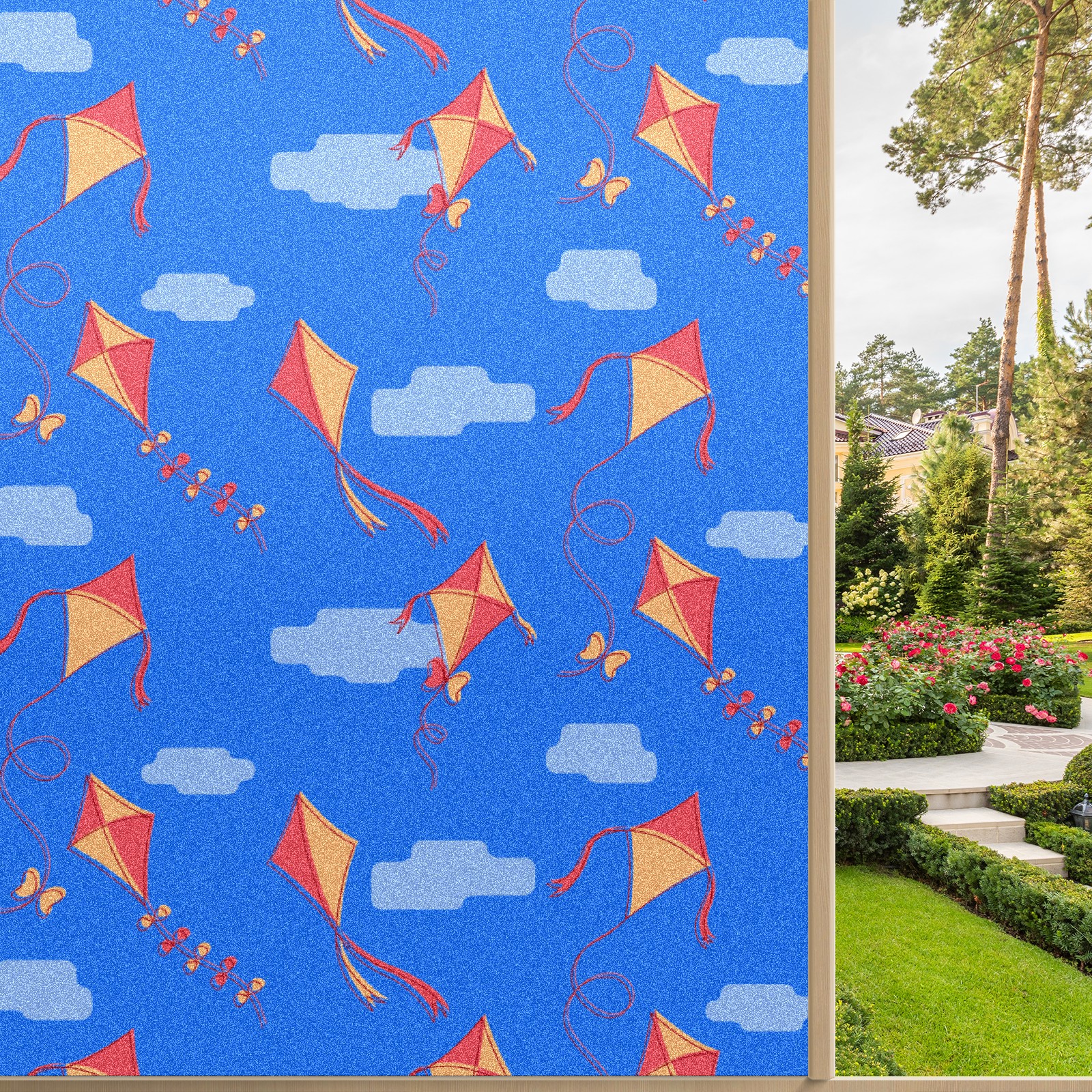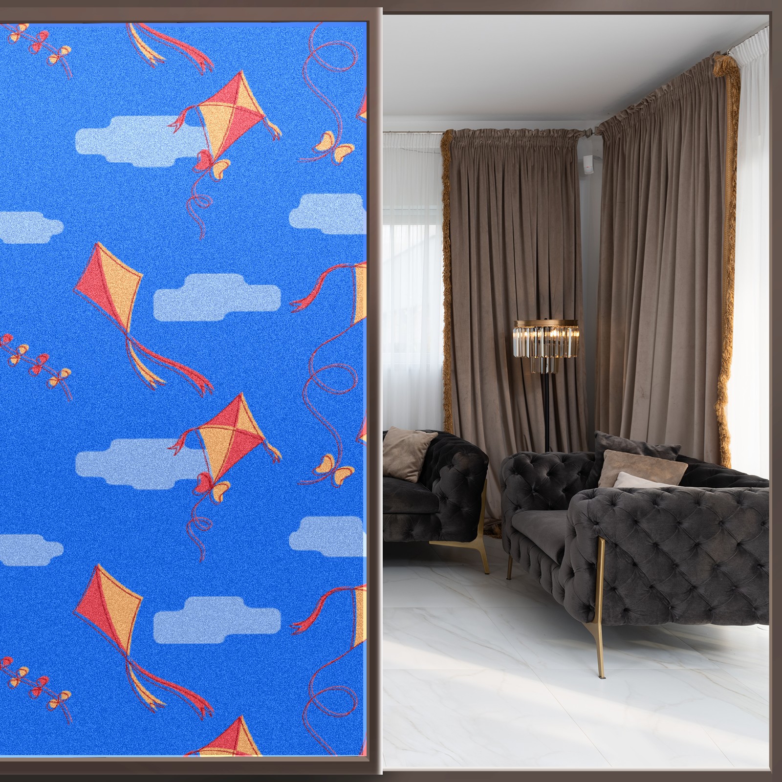 Window Privacy Film Frosted Stained Glass Film Decorative Static Cling for Bathroom Home Office Peel and Stick Window Film Cute Kite(17.7x23.6in)