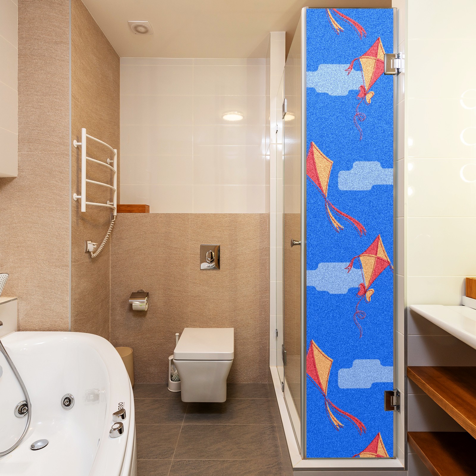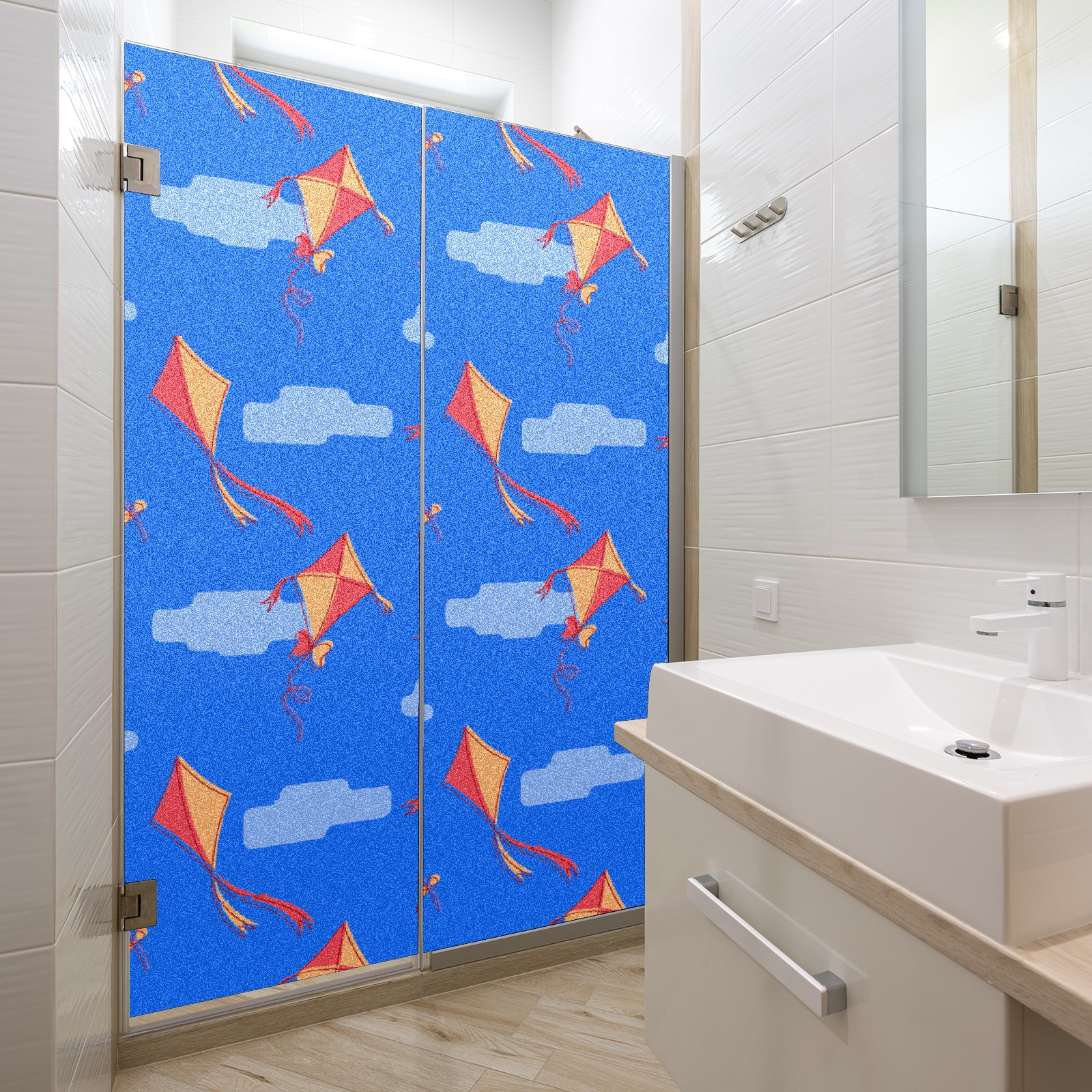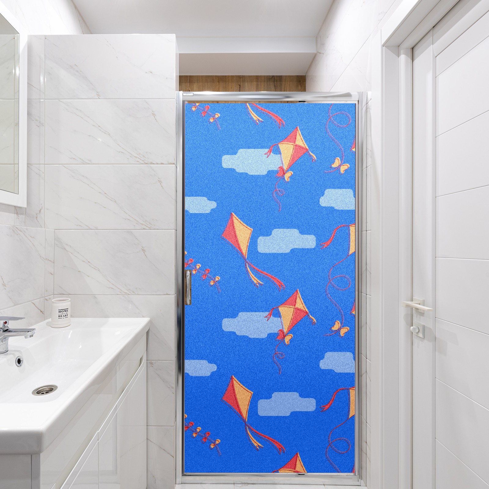 Window Privacy Film Frosted Stained Glass Film Decorative Static Cling for Bathroom Home Office Peel and Stick Window Film Cute Kite(17.7x23.6in)