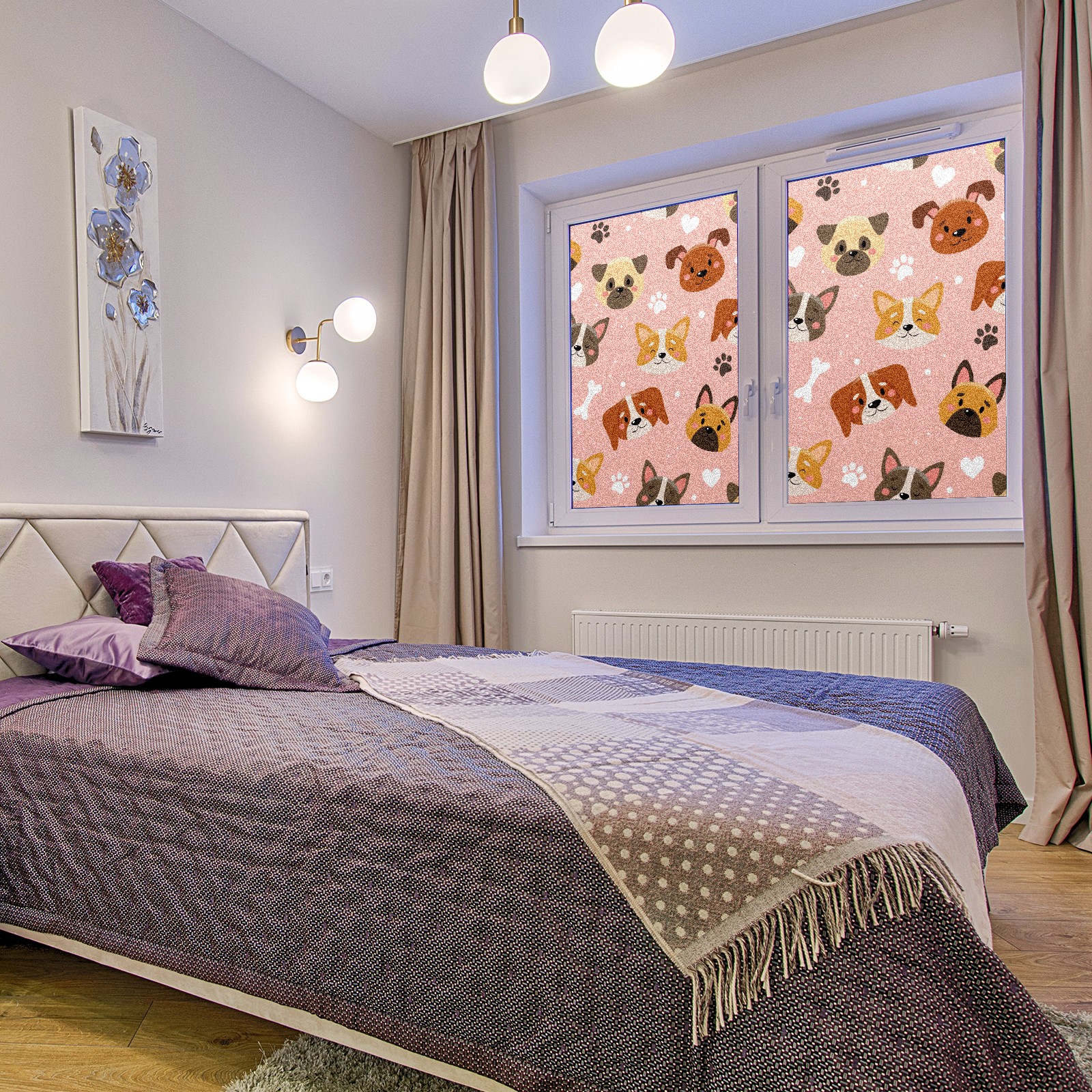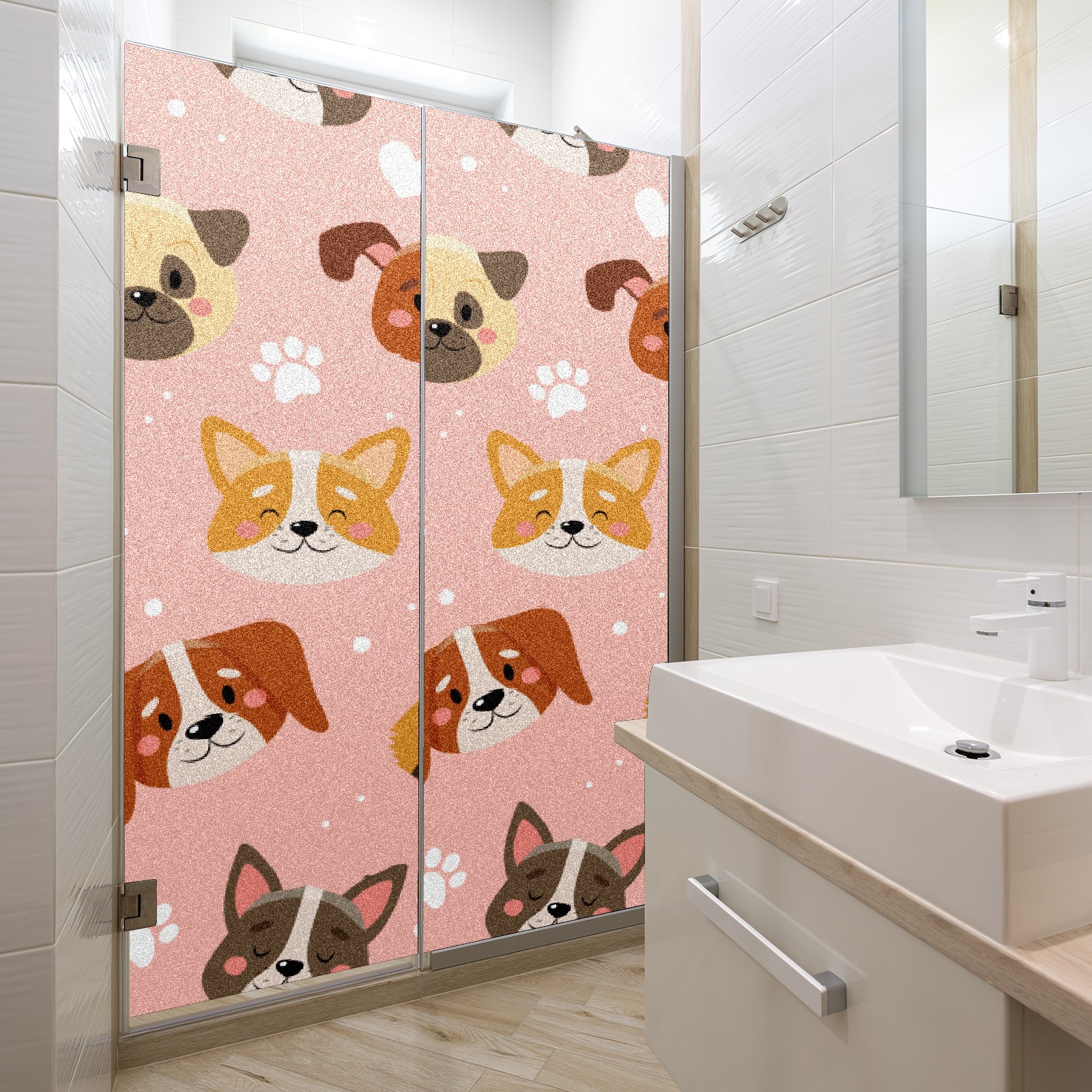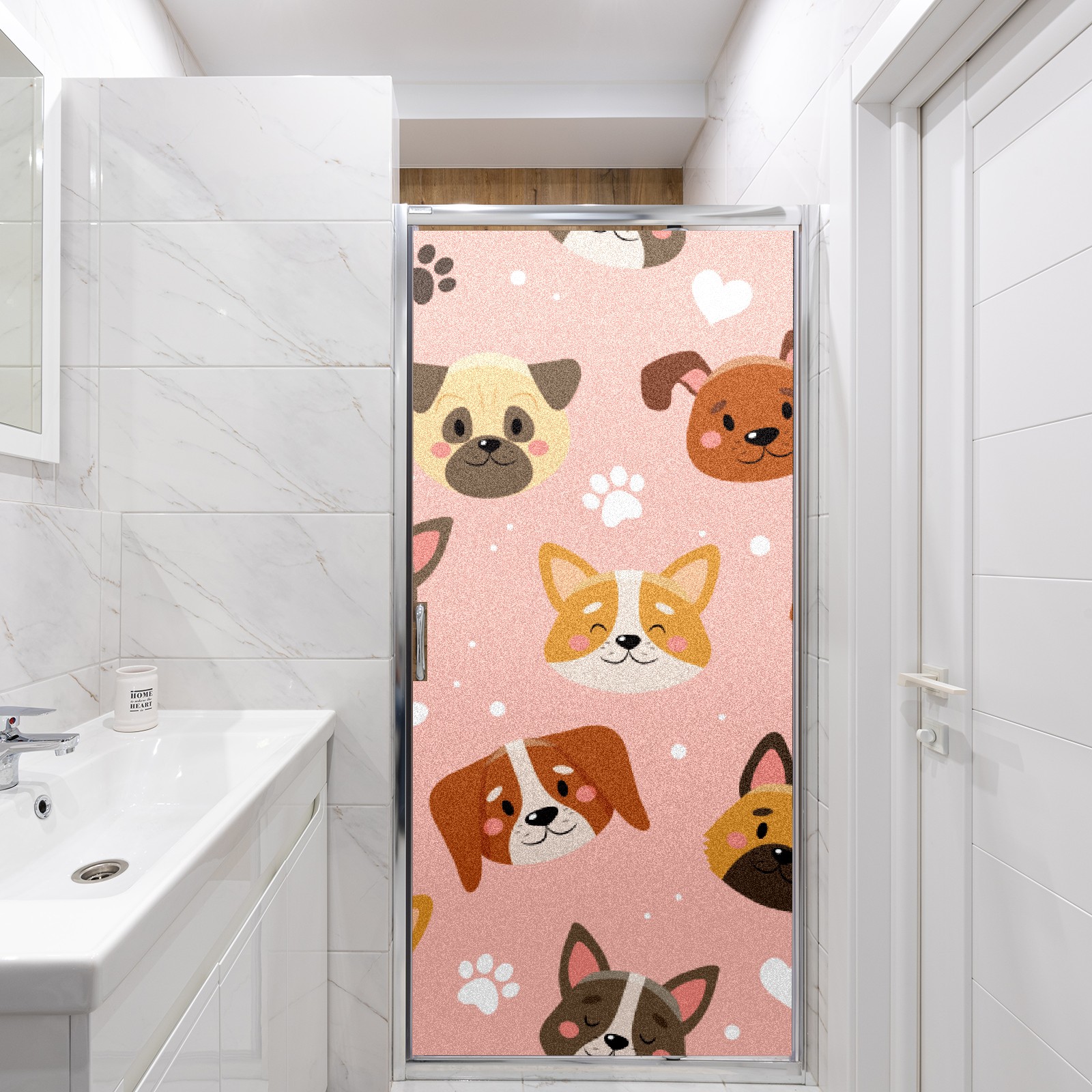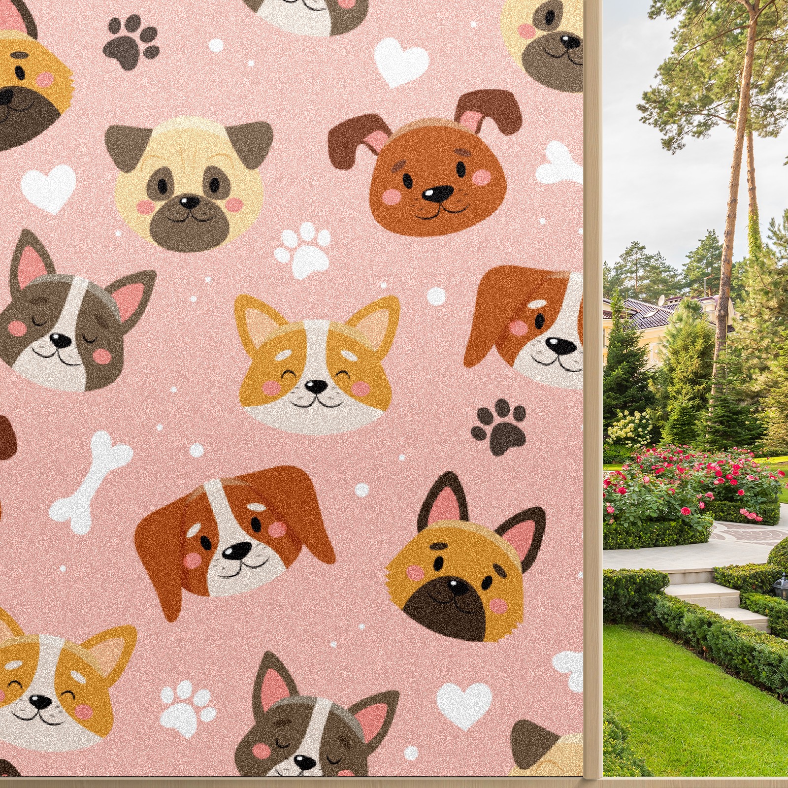Window Privacy Film Frosted Stained Glass Film Decorative Static Cling for Bathroom Home Office Peel and Stick Window Film Cute Pets Pink(17.7x23.6in)