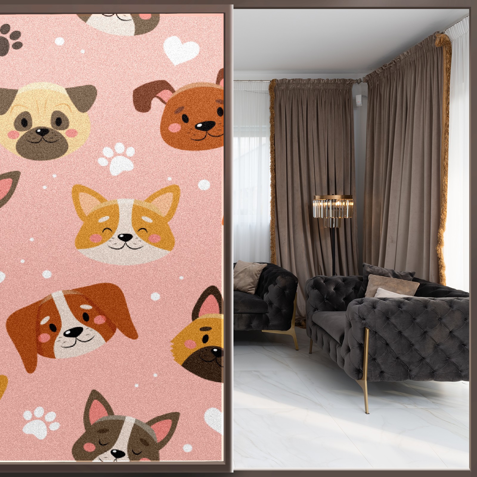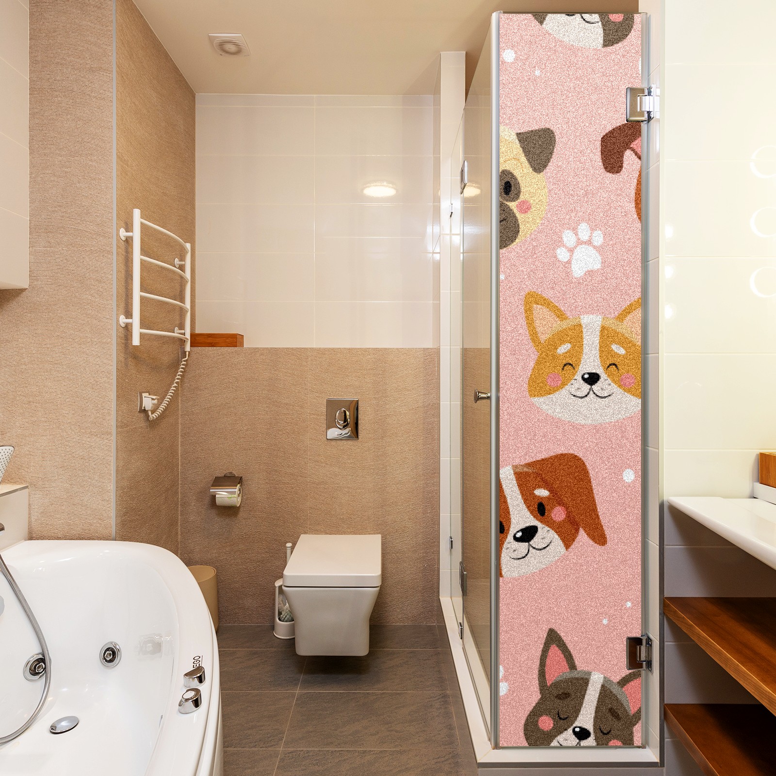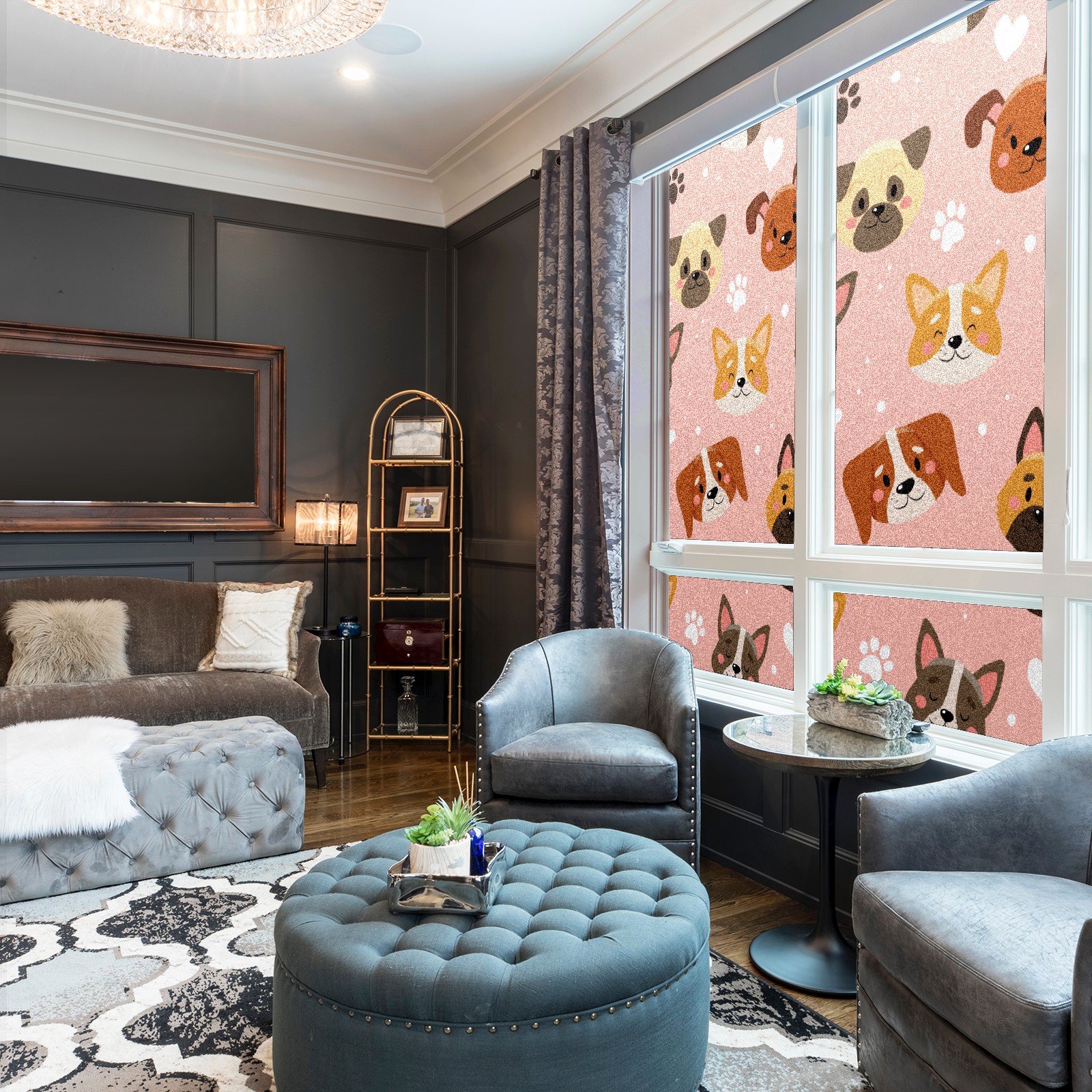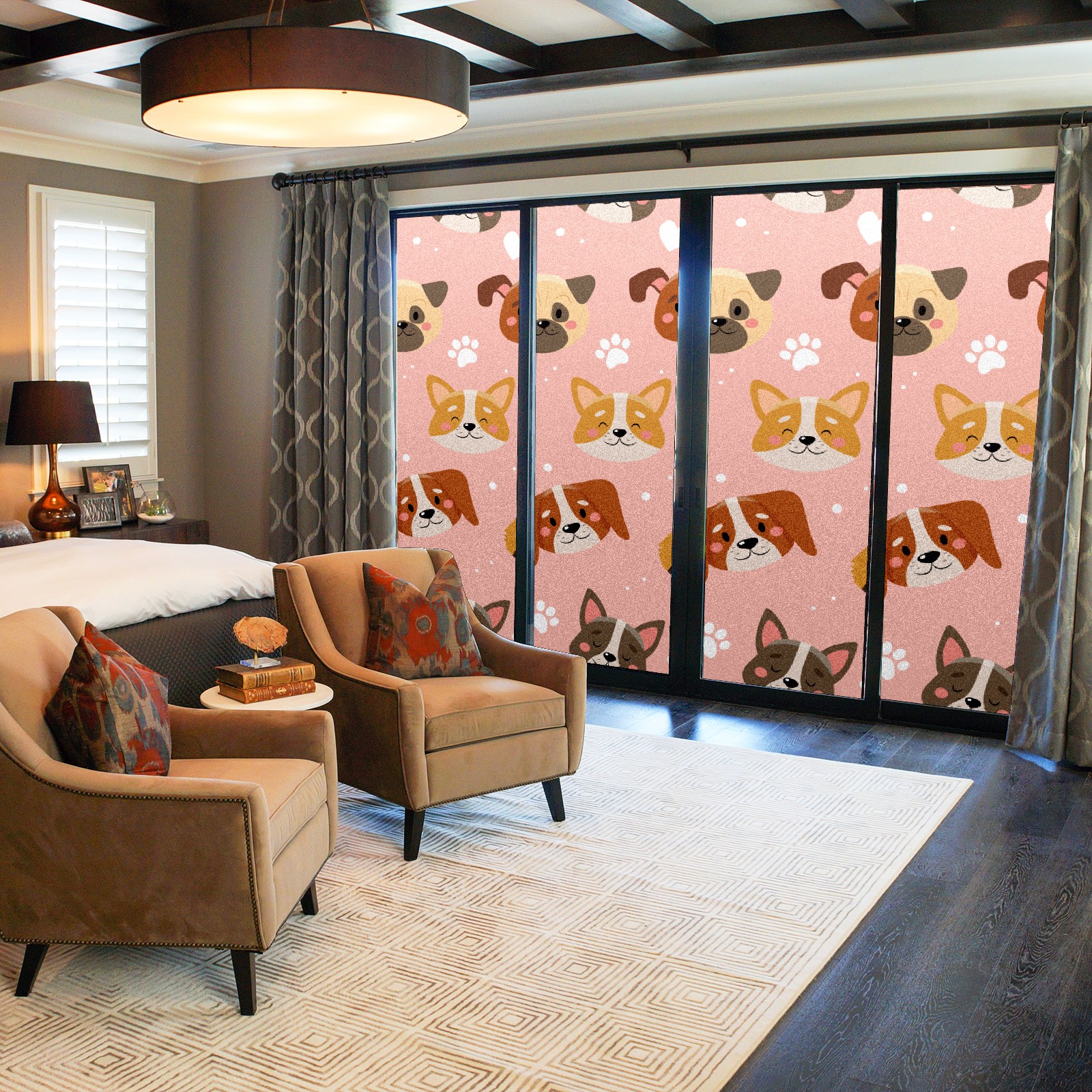Window Privacy Film Frosted Stained Glass Film Decorative Static Cling for Bathroom Home Office Peel and Stick Window Film Cute Pets Pink(17.7x23.6in)