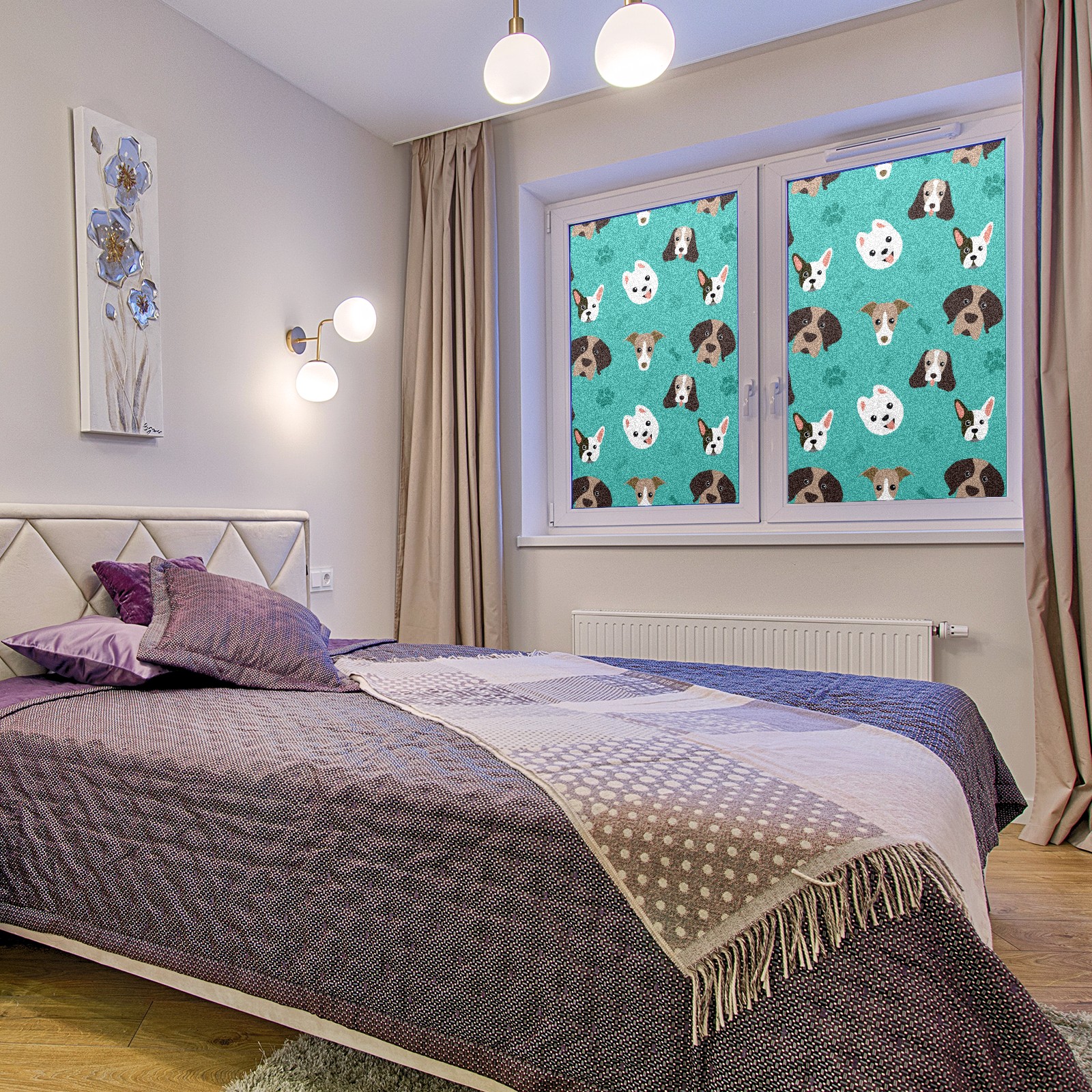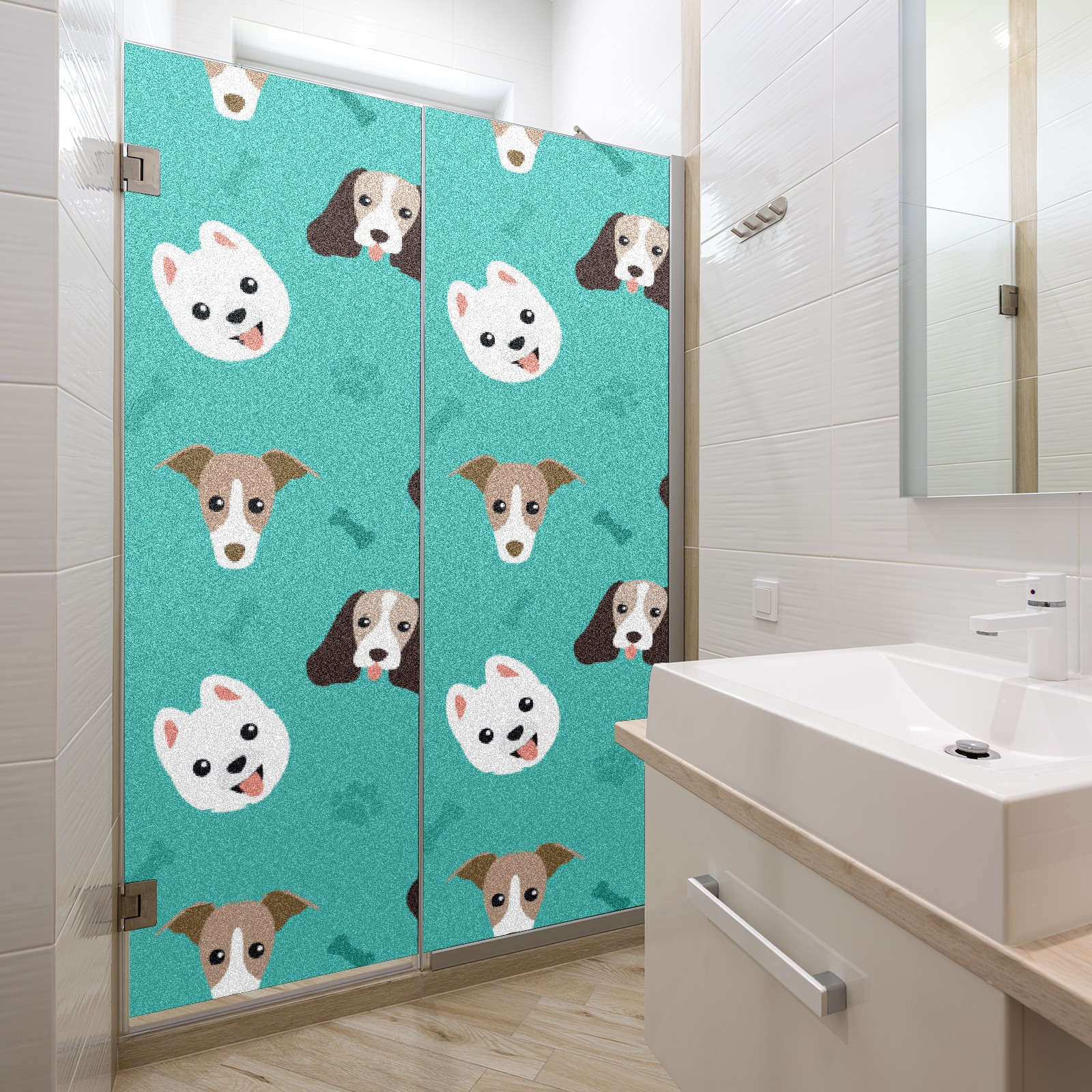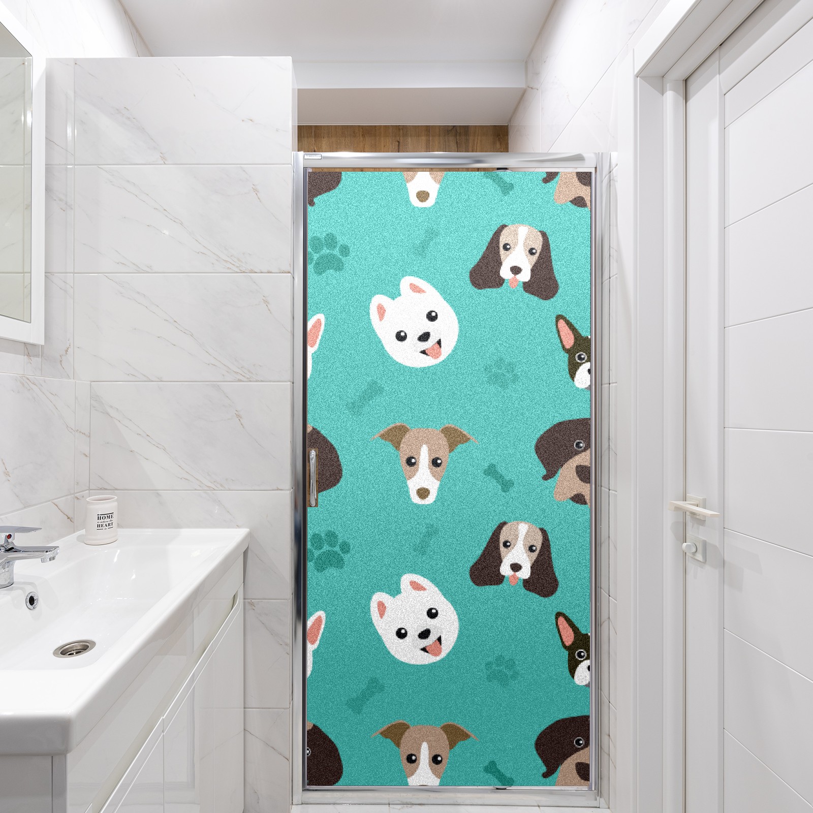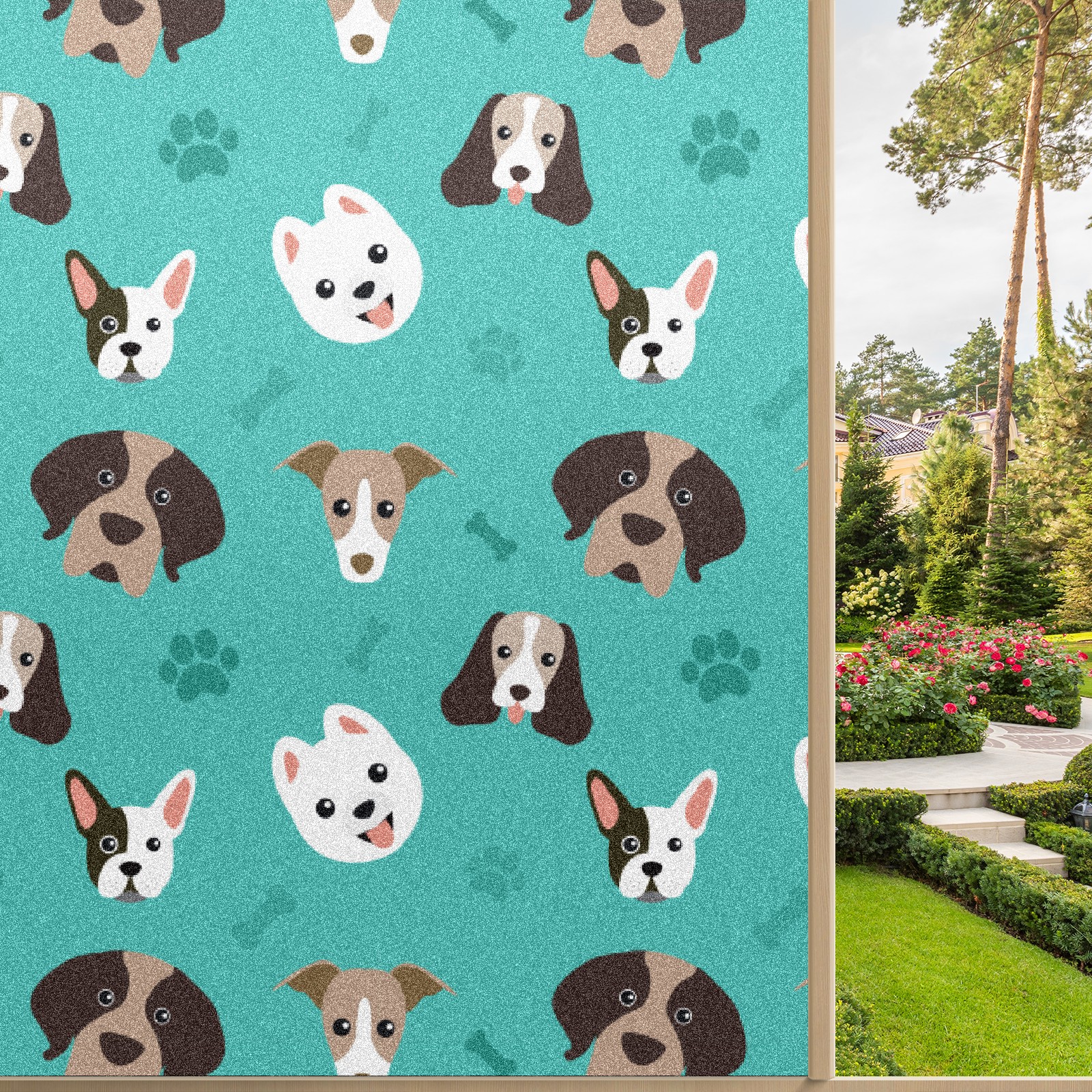 Window Privacy Film Frosted Stained Glass Film Decorative Static Cling for Bathroom Home Office Peel and Stick Window Film Lovely Dog Puppy(17.7x23.6in)