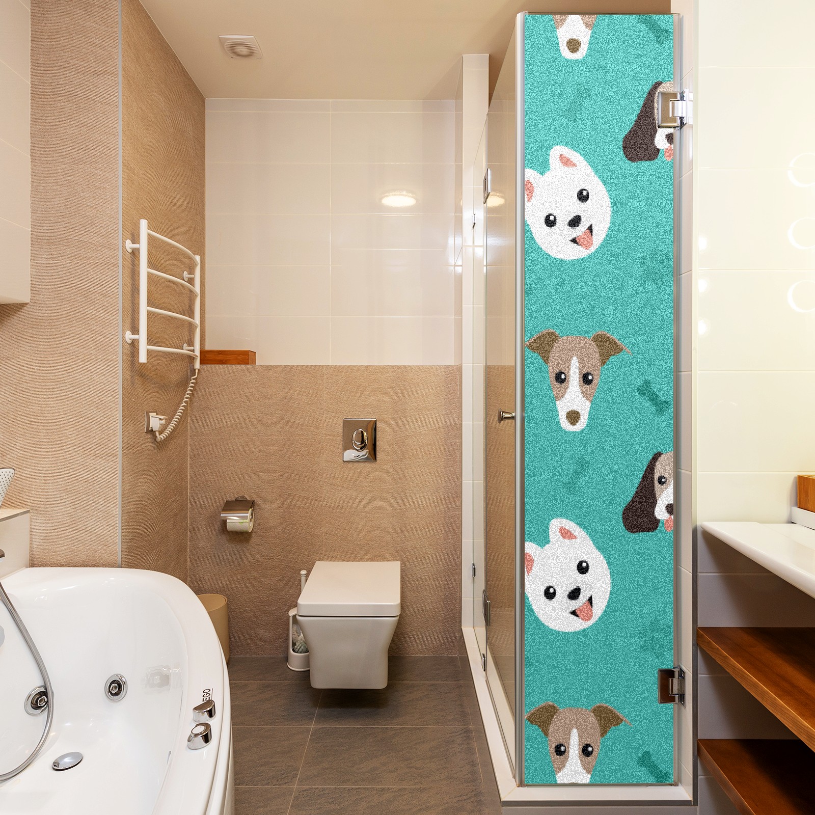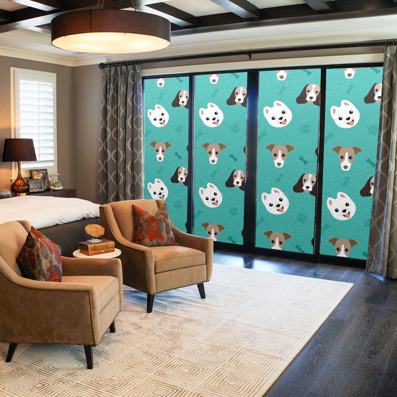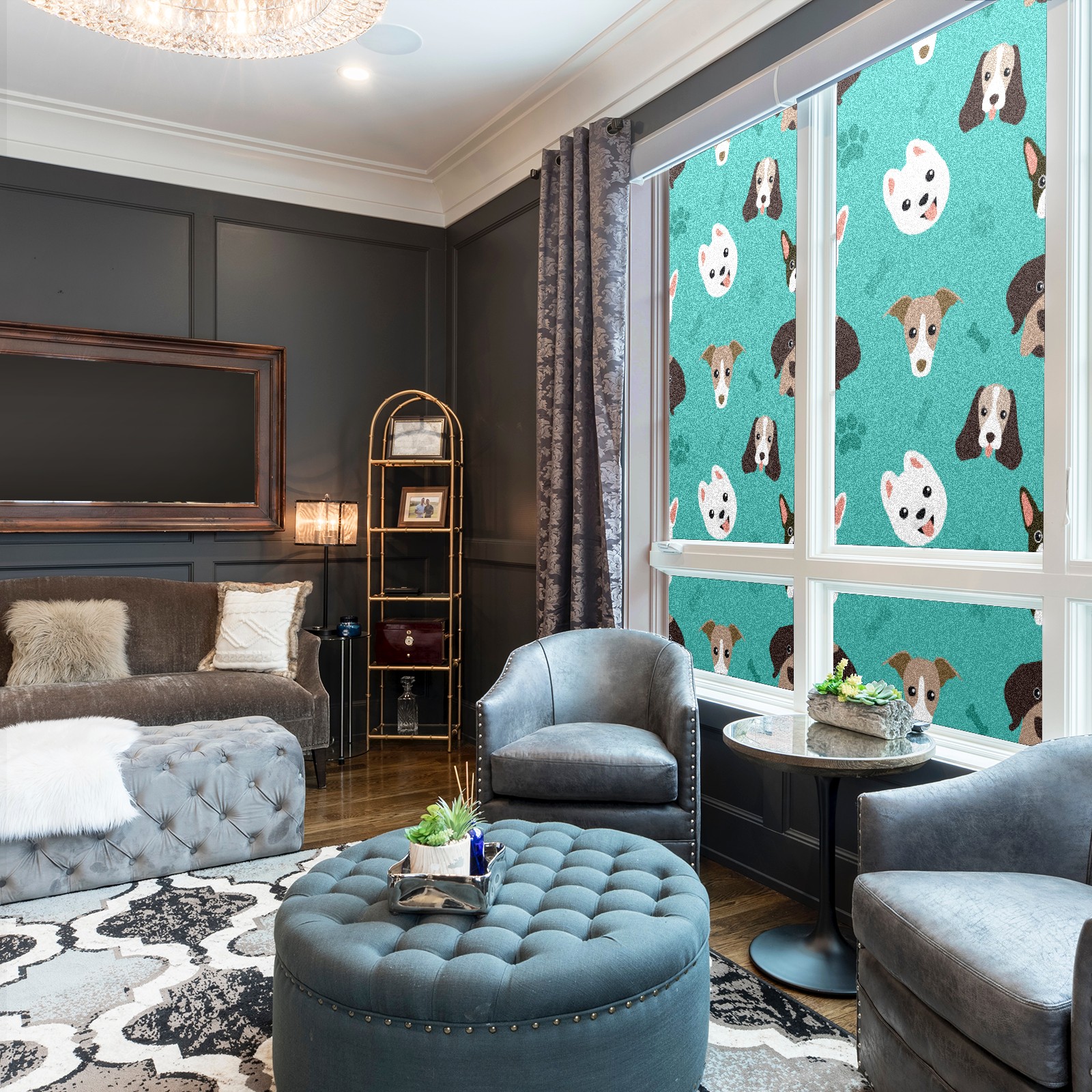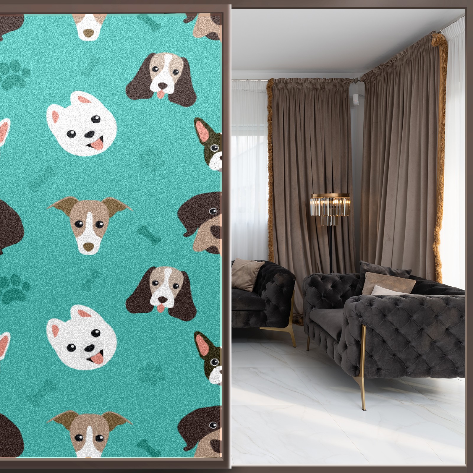 Window Privacy Film Frosted Stained Glass Film Decorative Static Cling for Bathroom Home Office Peel and Stick Window Film Lovely Dog Puppy(17.7x23.6in)