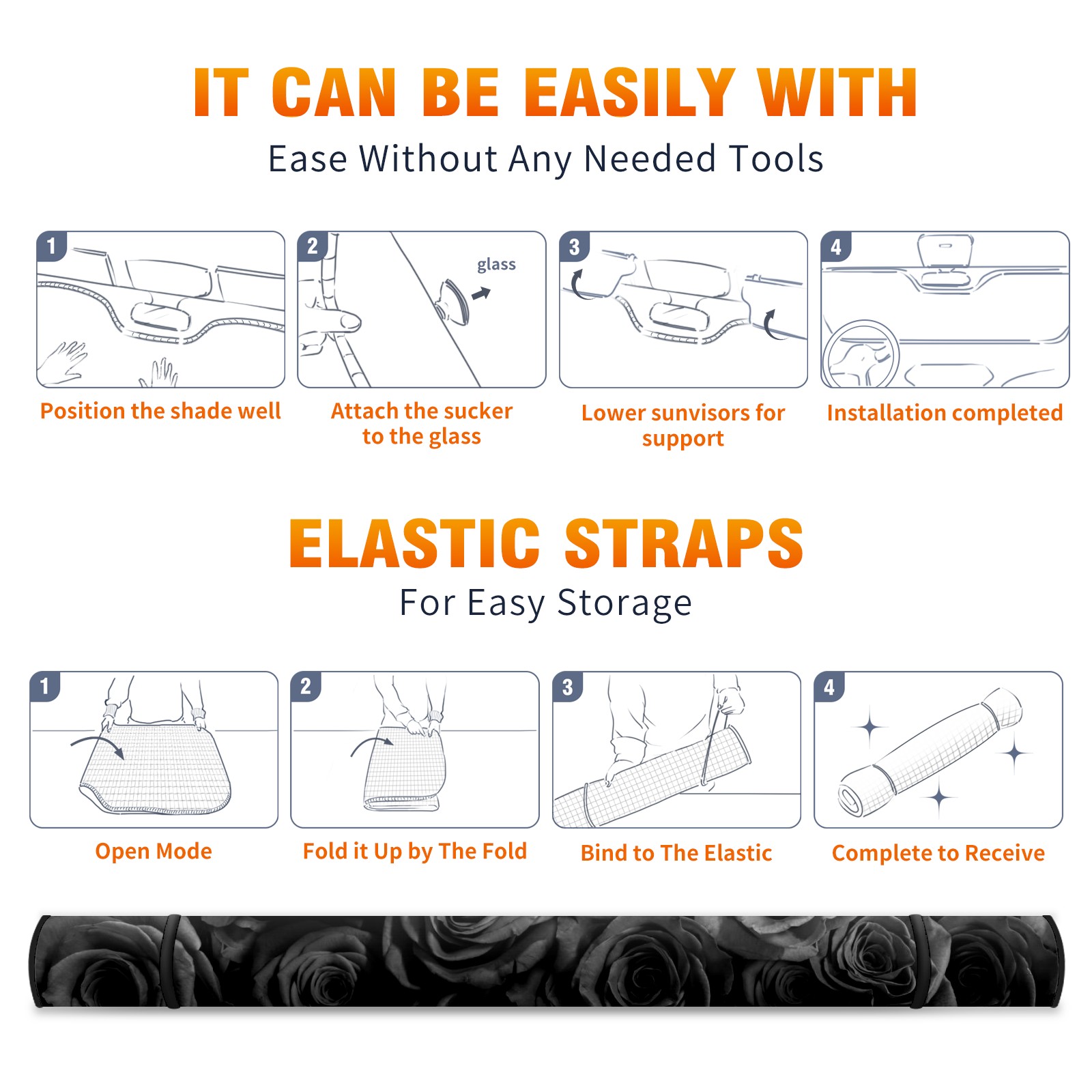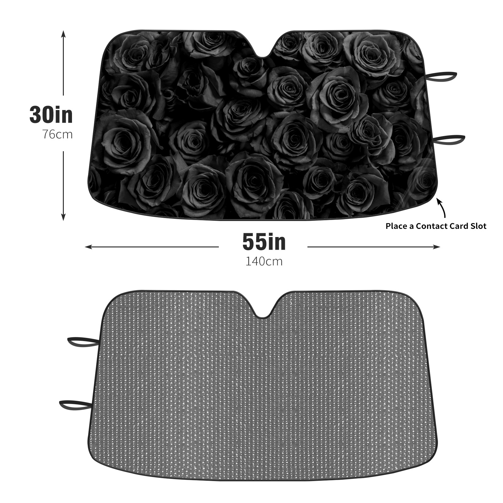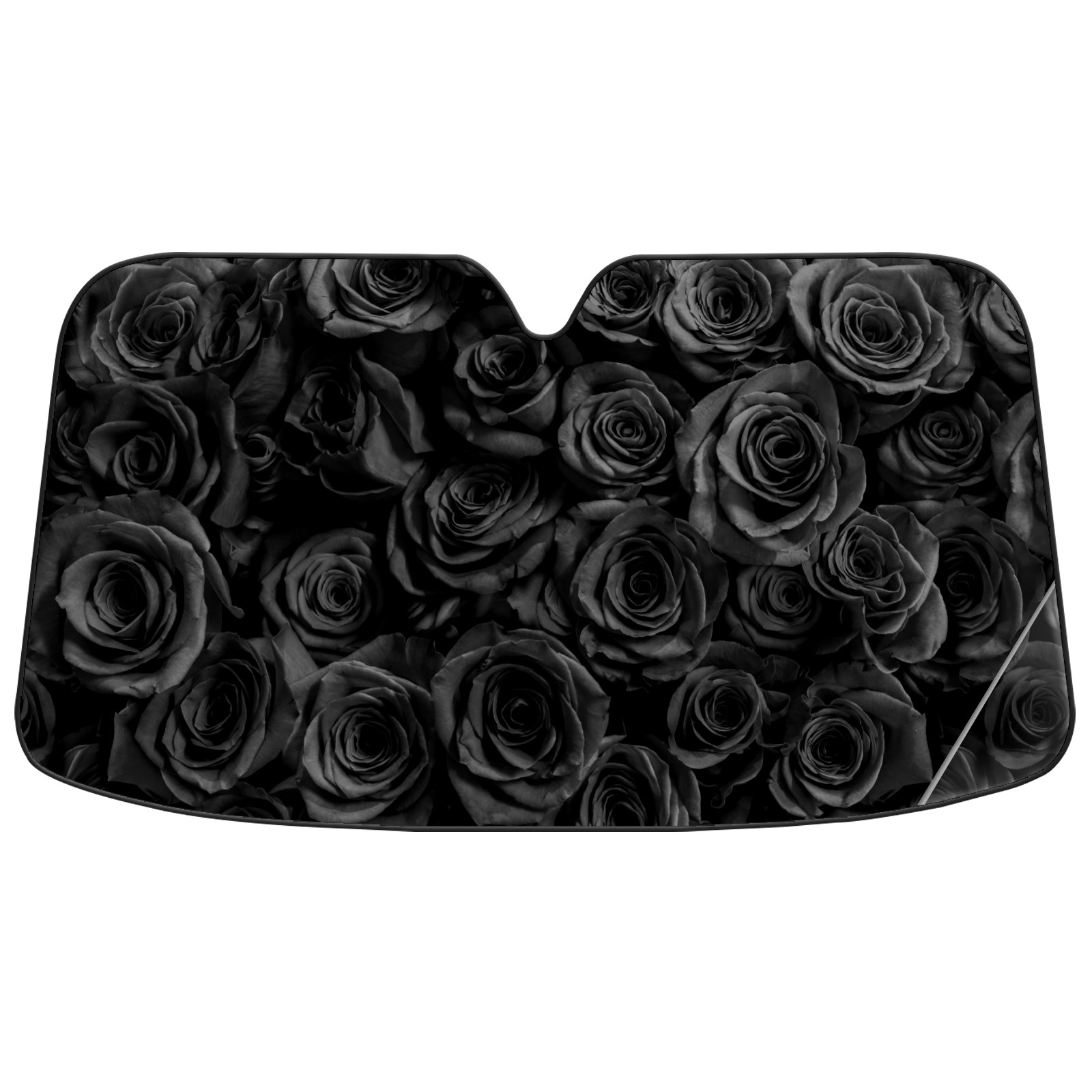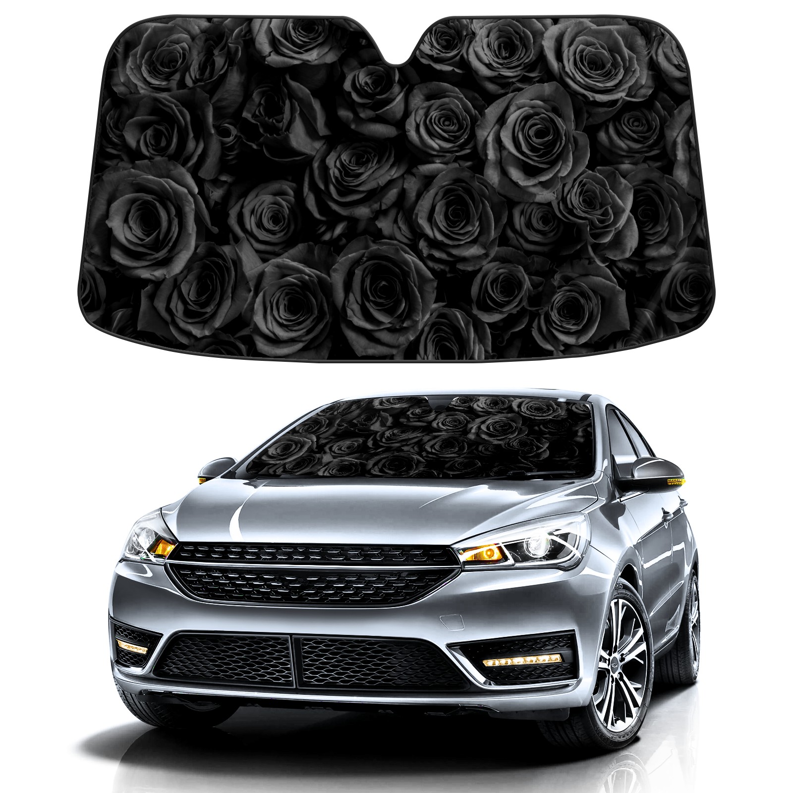 Retro Black And White Rose Flower Car Sun Shade UV Protection Foldable Sunshade for Windshield Heat Insulation Portable Sun Shield for Car Interior Protection Automotive Window Protector