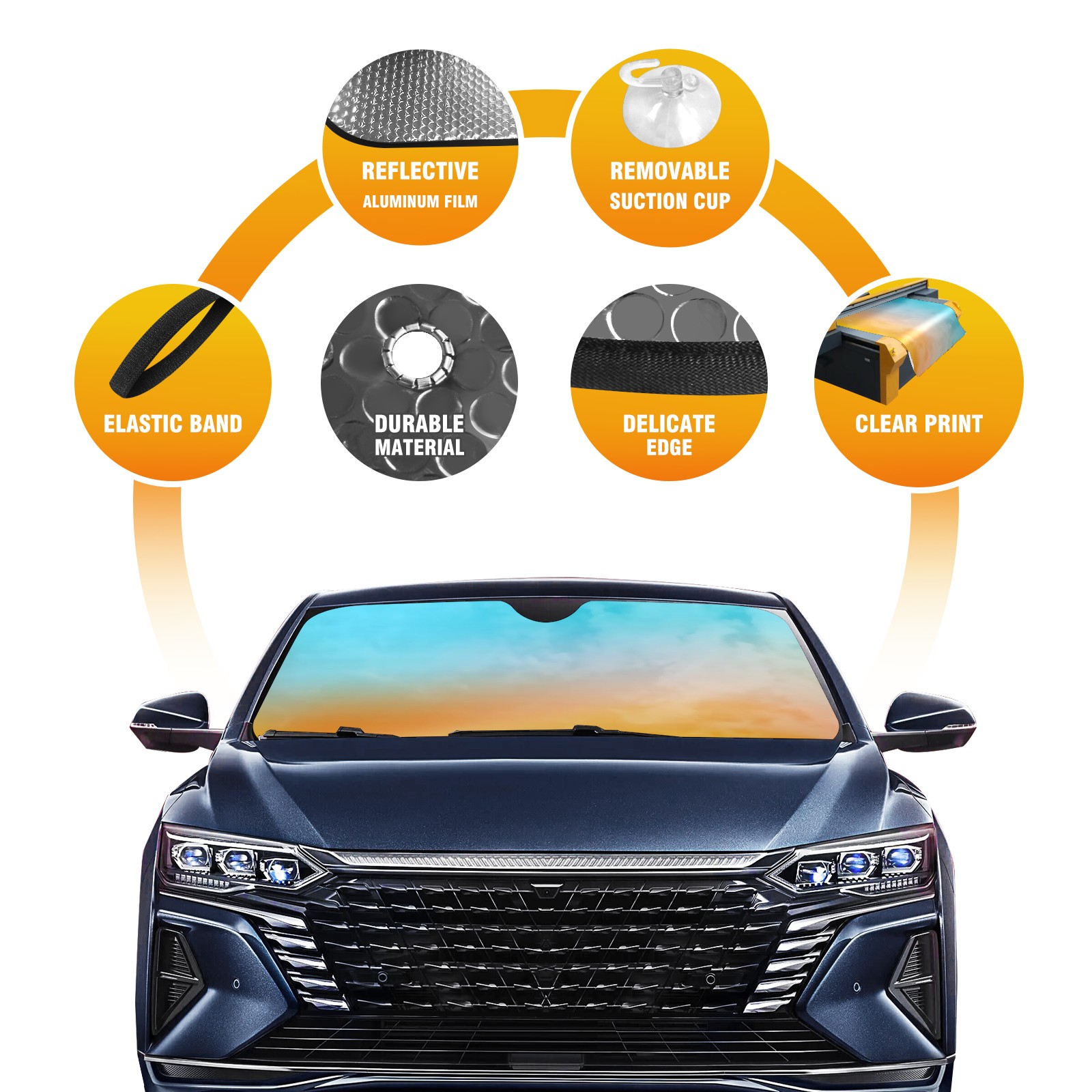Blue Orange Sky Car Sun Shade UV Protection Foldable Sunshade for Windshield Heat Insulation Portable Sun Shield for Car Interior Protection Automotive Window Protector