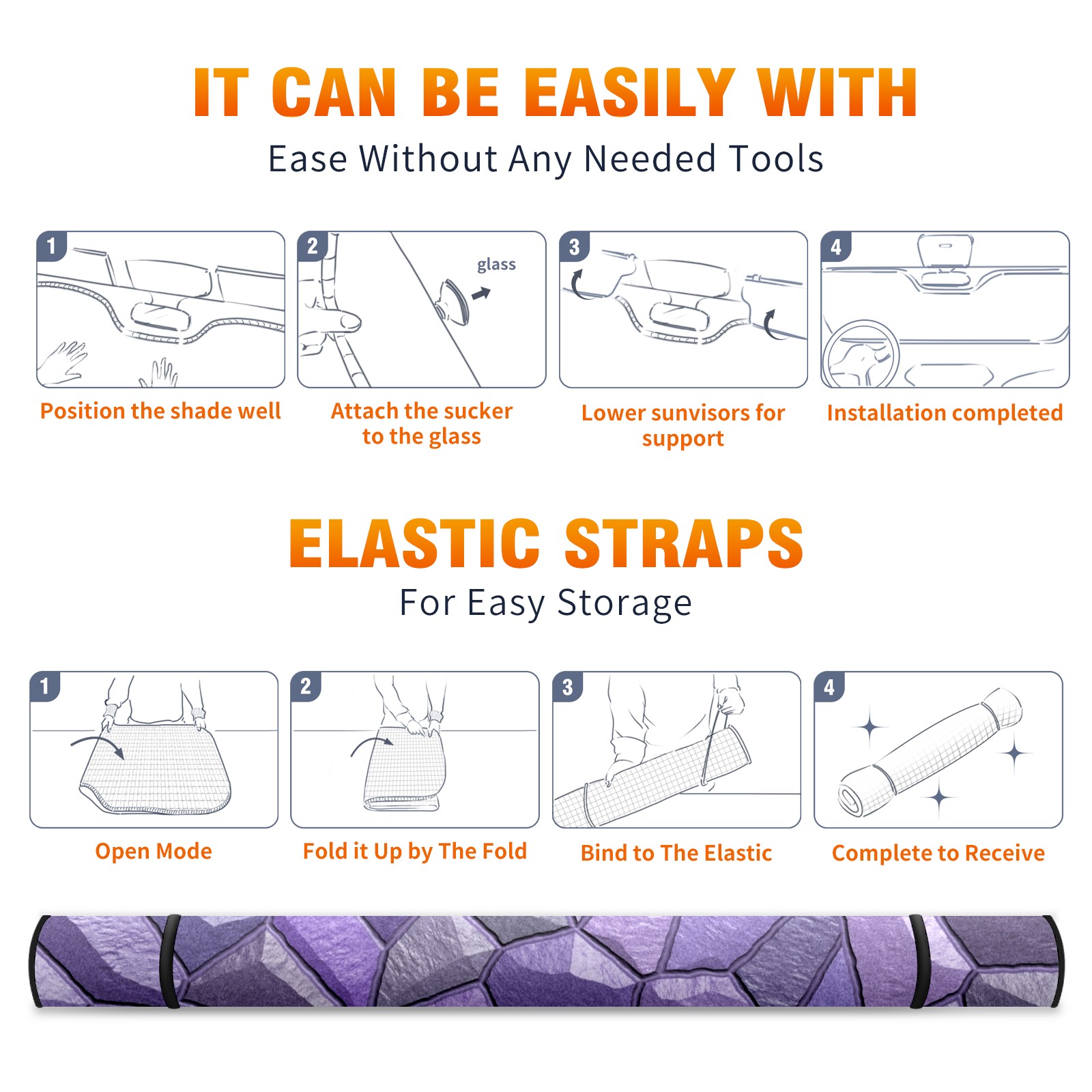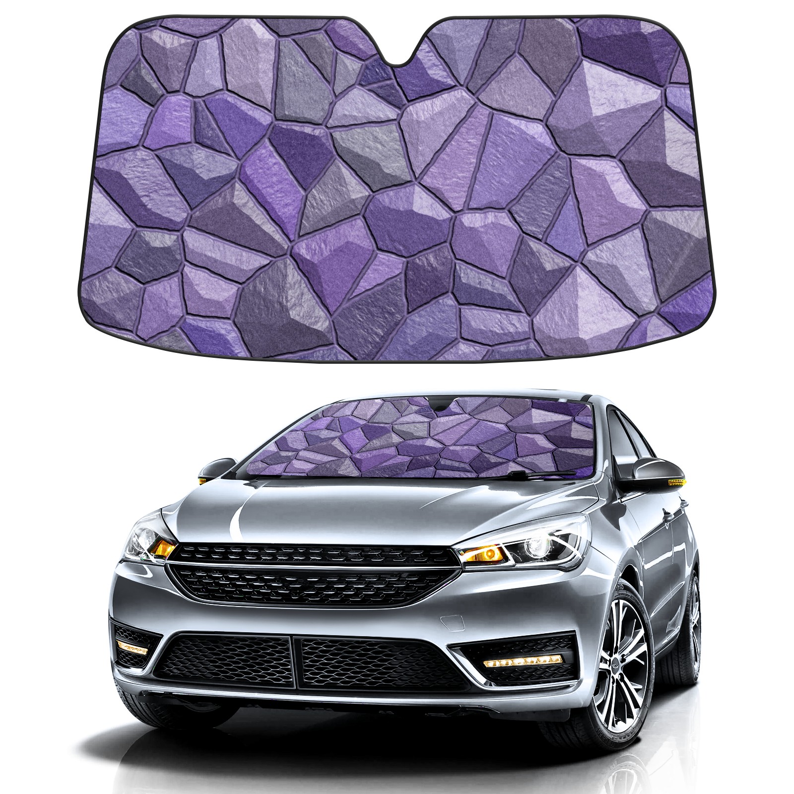 Stones Purple Geometric Texture Car Sun Shade UV Protection Foldable Sunshade for Windshield Heat Insulation Portable Sun Shield for Car Interior Protection Automotive Window Protector