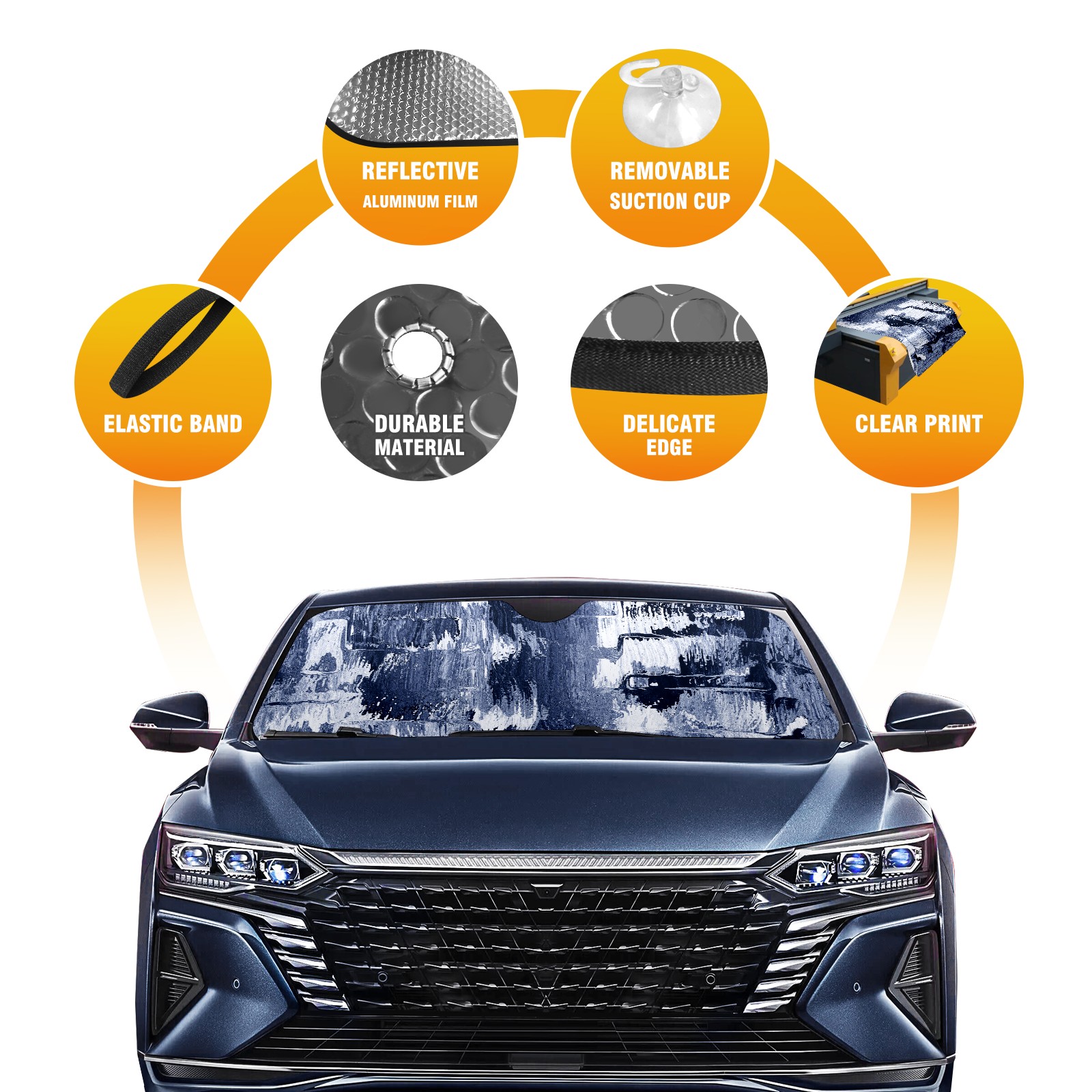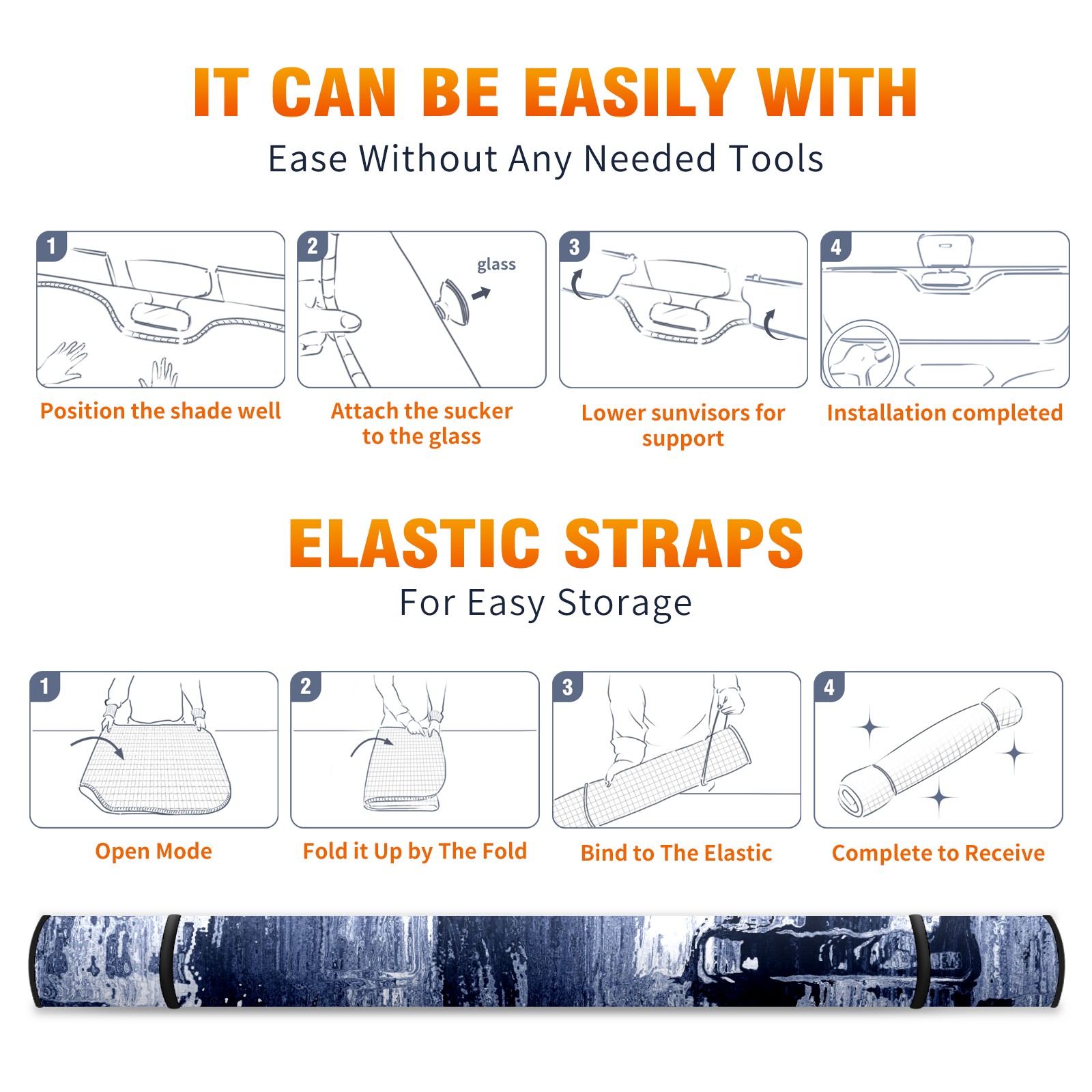 • <p><b>Foldable Premium Car Windshield Sunshade is your great solution to reduce your car’s interior temperature dramatically! This is definitely a must-have item for your summer travel!</b></p><p><b>【Precision Fit, Stylish Protection】</b></p><p>55"x30" (140x76cm) universal size with 3cm flexible margins fits curved windshields of most sedans/SUVs.</p><p><b>【Blocking Uv Rays &amp; Heat Insulation】</b></p><p>Our vehicle sunshade provides effective UV, sun, and summer heat protection, preventing leather fading and plastic cracking to keep your car interior pristine.</p><p><b>【Zero-Mark Installation &amp; Space-Saving】</b></p><p>Equipped with dual scratch-free silicone suction cups + adjustable straps: Medical-grade silicone cups hold firmly yet remove cleanly. Folds to A3 size (42x30cm x &lt;2cm thick), tucks discreetly into glove compartments or door pockets.&nbsp;</p>