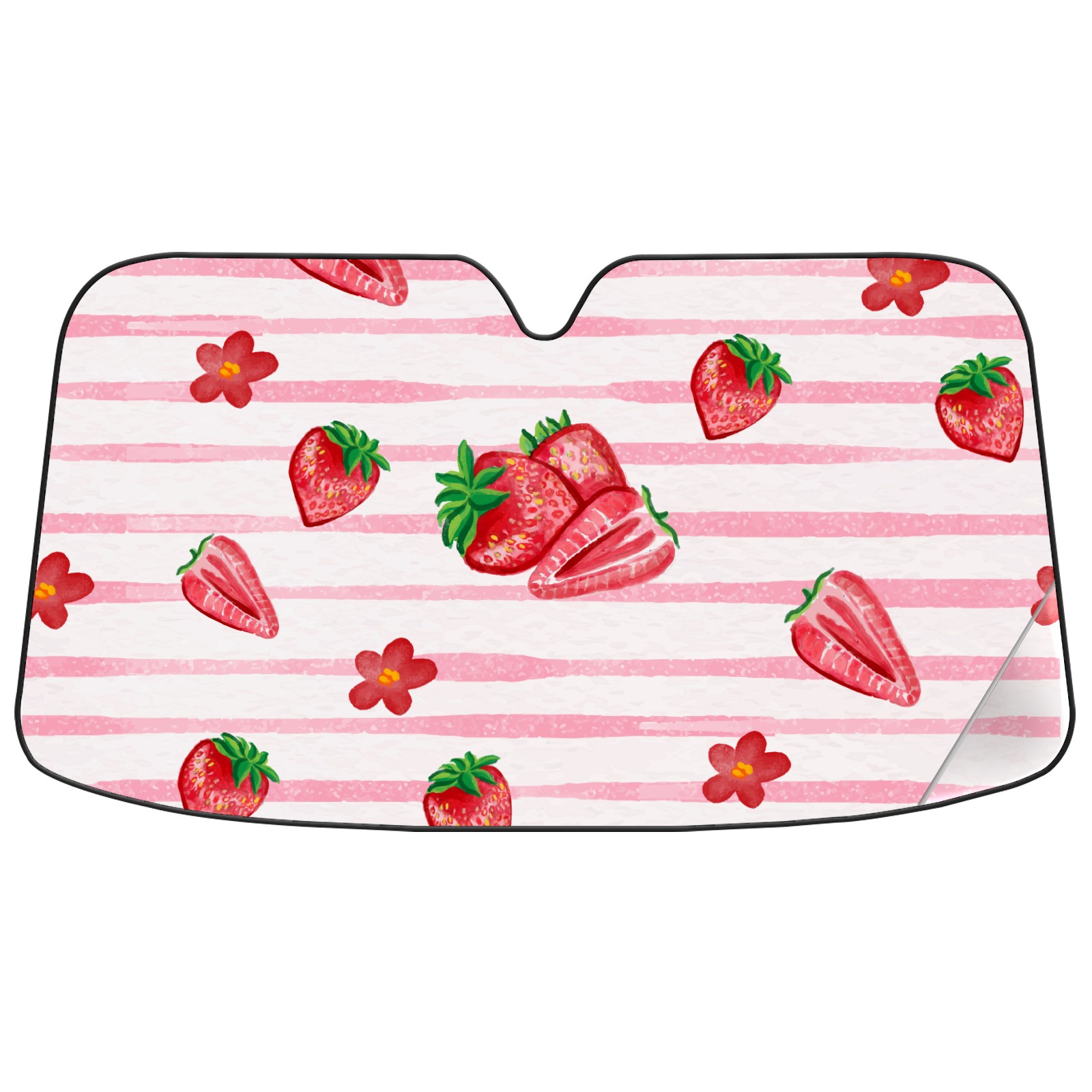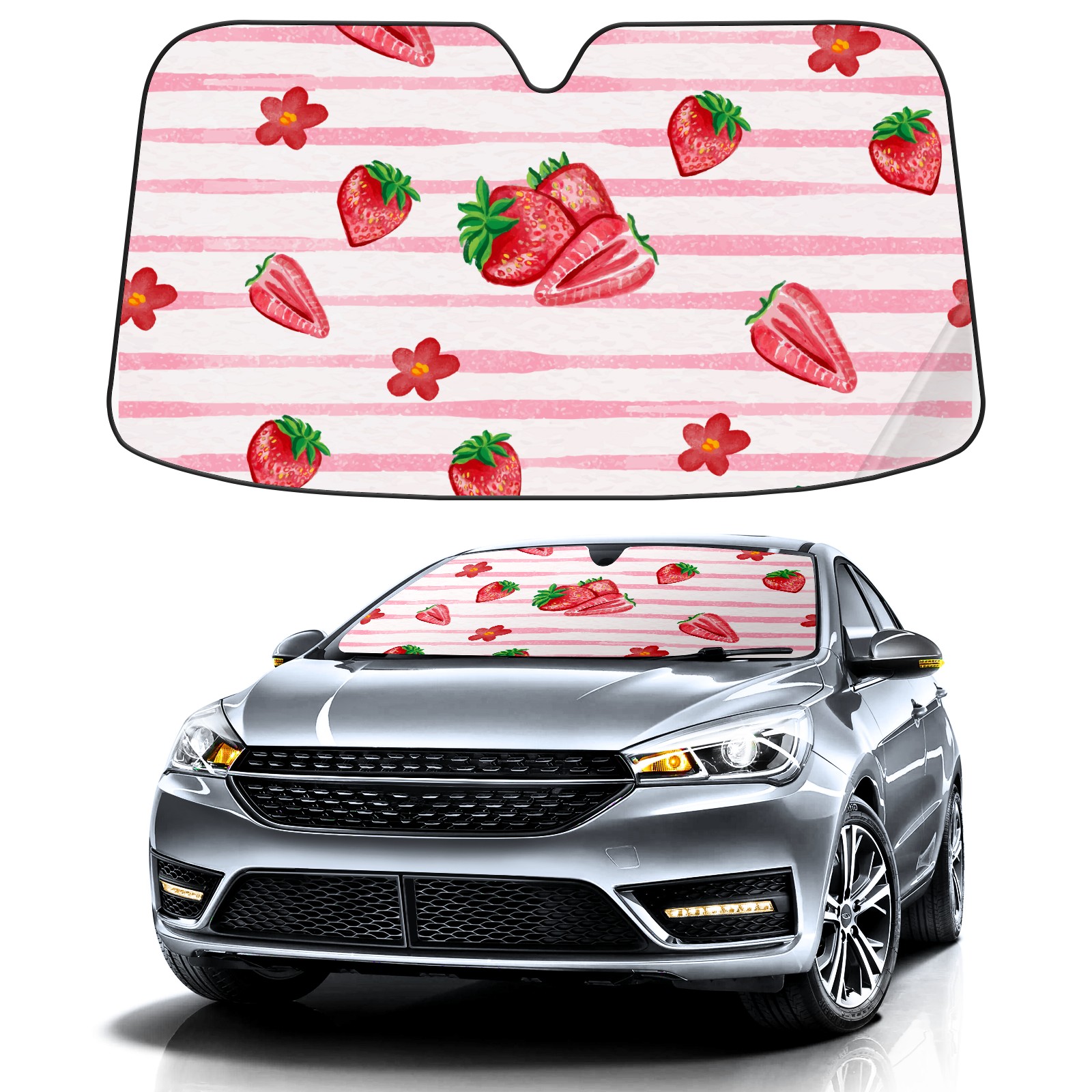 Pink Strawberry Car Sun Shade UV Protection Foldable Sunshade for Windshield Heat Insulation Portable Sun Shield for Car Interior Protection Automotive Window Protector