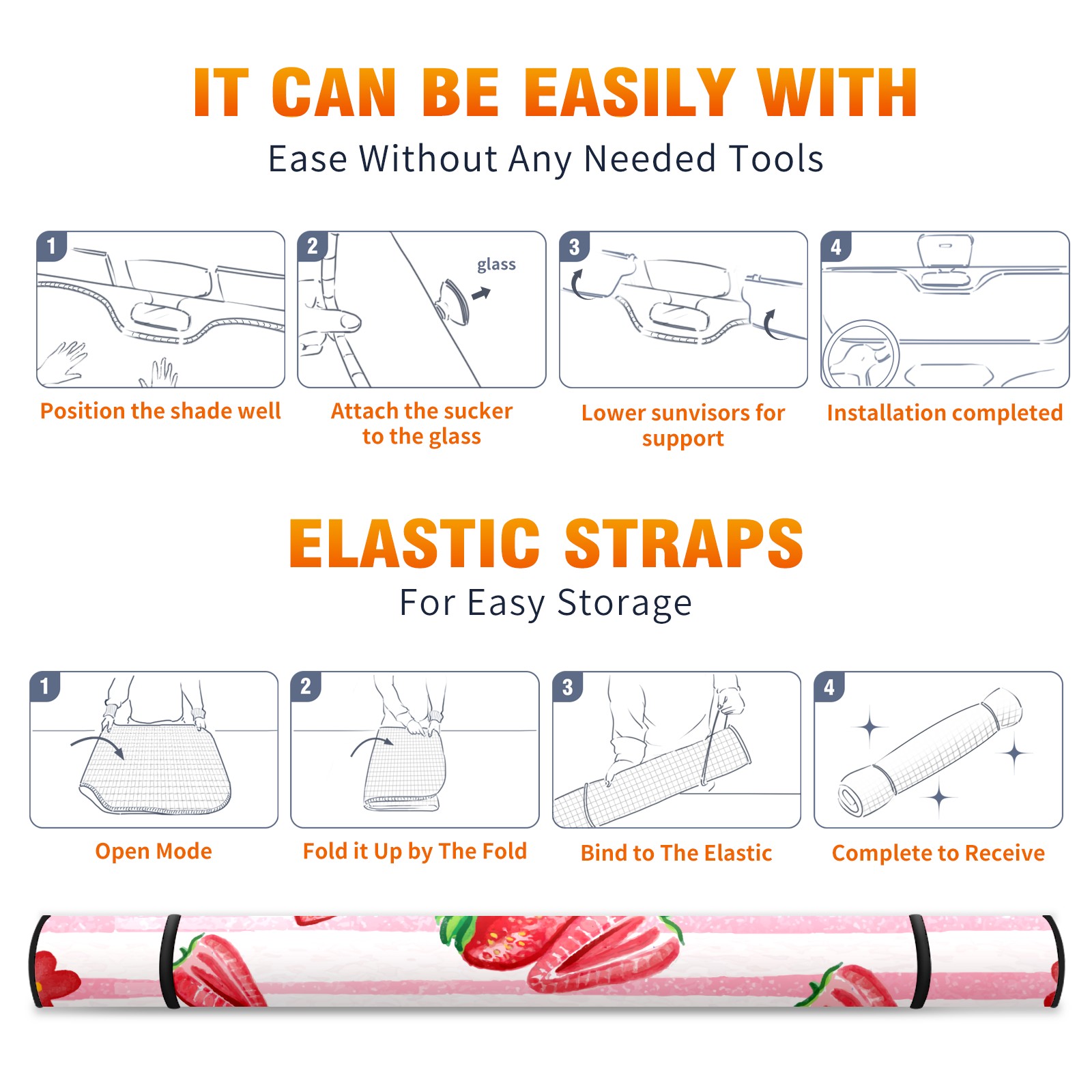 • <p><b>Foldable Premium Car Windshield Sunshade is your great solution to reduce your car’s interior temperature dramatically! This is definitely a must-have item for your summer travel!</b></p><p><b>【Precision Fit, Stylish Protection】</b></p><p>55"x30" (140x76cm) universal size with 3cm flexible margins fits curved windshields of most sedans/SUVs.</p><p><b>【Blocking Uv Rays &amp; Heat Insulation】</b></p><p>Our vehicle sunshade provides effective UV, sun, and summer heat protection, preventing leather fading and plastic cracking to keep your car interior pristine.</p><p><b>【Zero-Mark Installation &amp; Space-Saving】</b></p><p>Equipped with dual scratch-free silicone suction cups + adjustable straps: Medical-grade silicone cups hold firmly yet remove cleanly. Folds to A3 size (42x30cm x &lt;2cm thick), tucks discreetly into glove compartments or door pockets.&nbsp;</p>