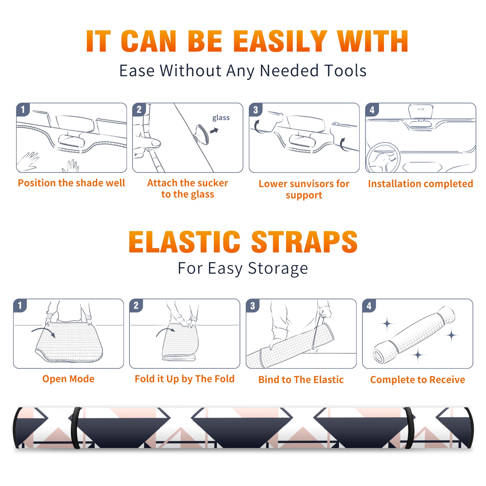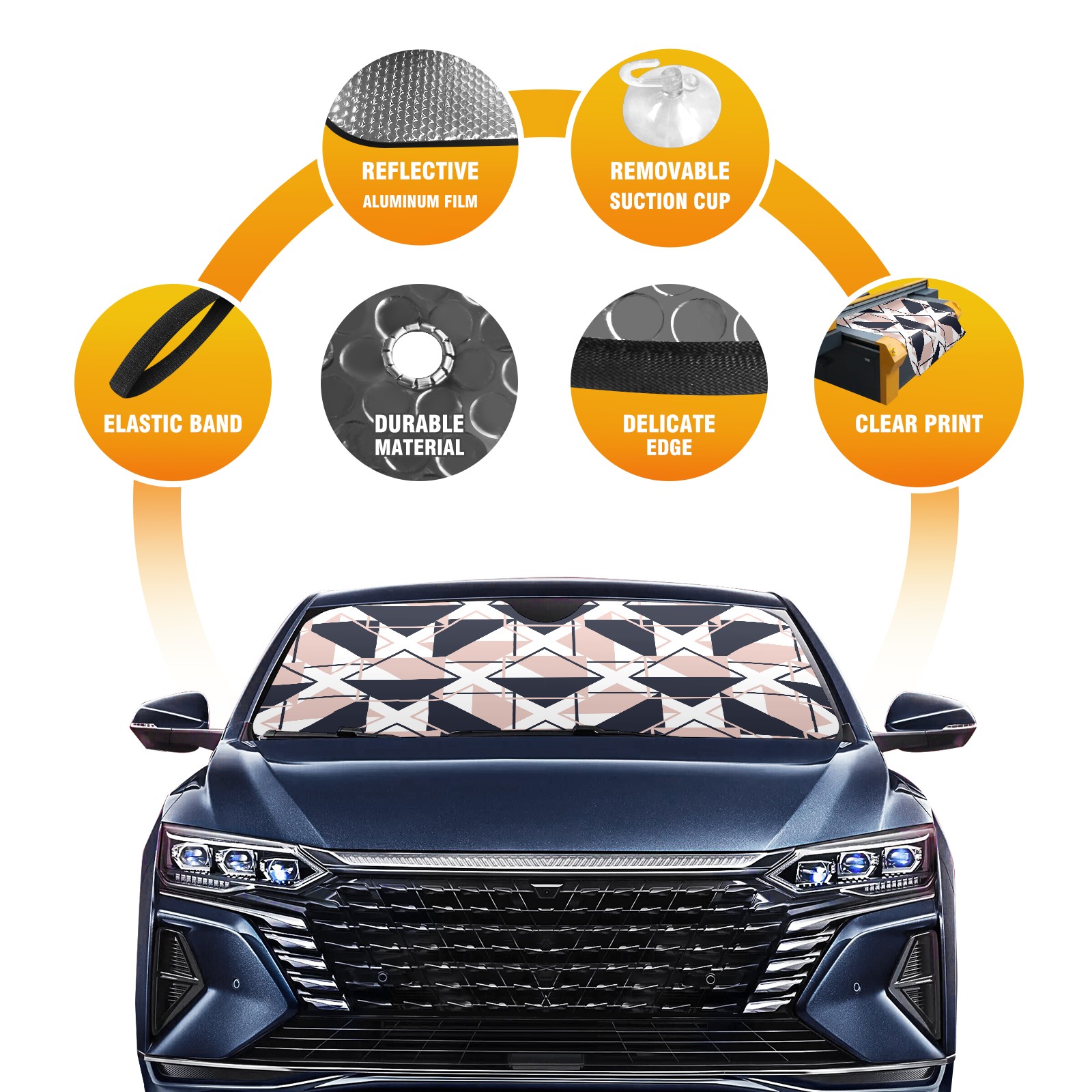 • <p><b>Foldable Premium Car Windshield Sunshade is your great solution to reduce your car’s interior temperature dramatically! This is definitely a must-have item for your summer travel!</b></p><p><b>【Precision Fit, Stylish Protection】</b></p><p>55"x30" (140x76cm) universal size with 3cm flexible margins fits curved windshields of most sedans/SUVs.</p><p><b>【Blocking Uv Rays &amp; Heat Insulation】</b></p><p>Our vehicle sunshade provides effective UV, sun, and summer heat protection, preventing leather fading and plastic cracking to keep your car interior pristine.</p><p><b>【Zero-Mark Installation &amp; Space-Saving】</b></p><p>Equipped with dual scratch-free silicone suction cups + adjustable straps: Medical-grade silicone cups hold firmly yet remove cleanly. Folds to A3 size (42x30cm x &lt;2cm thick), tucks discreetly into glove compartments or door pockets.&nbsp;</p>