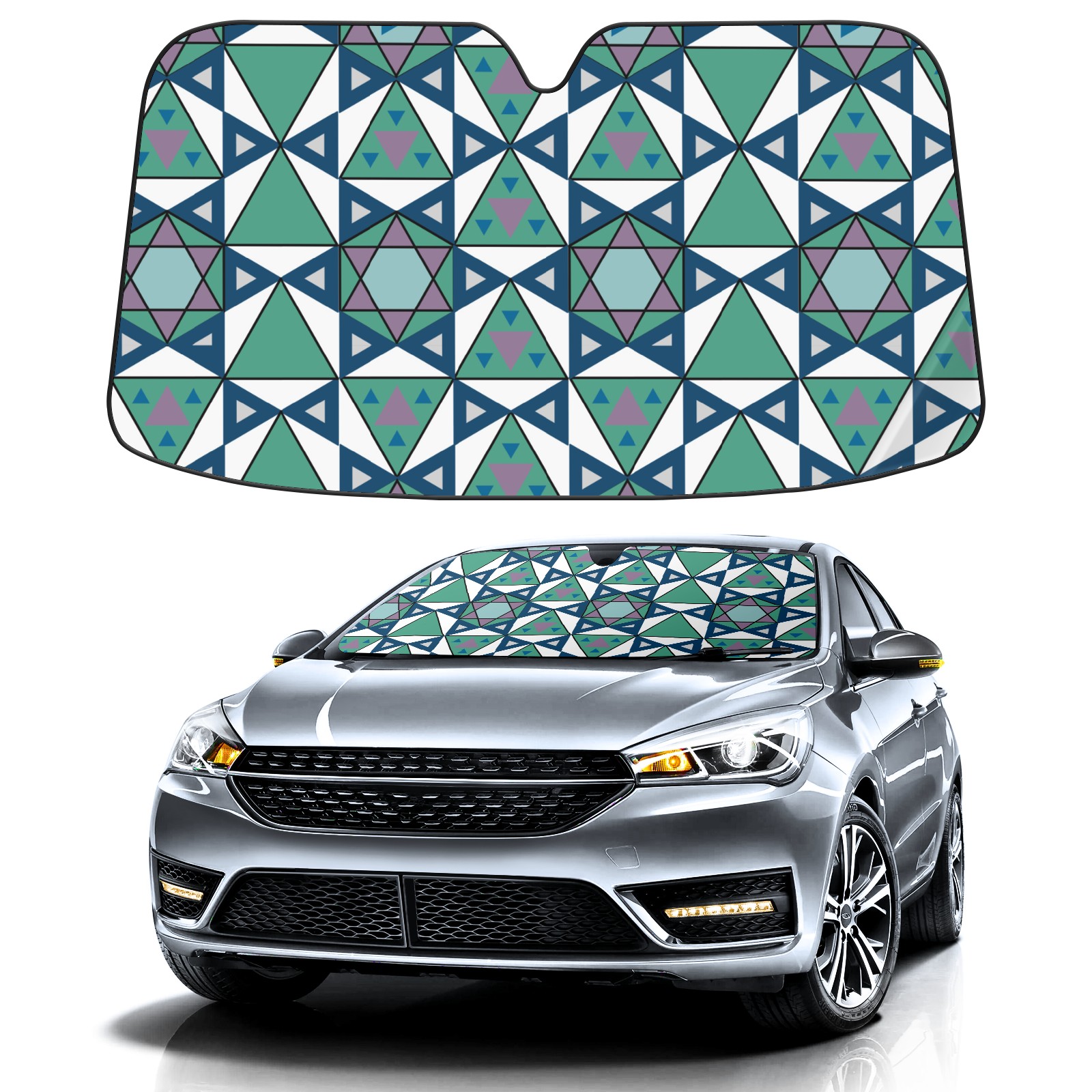 Vintage Geometric Car Sun Shade UV Protection Foldable Sunshade for Windshield Heat Insulation Portable Sun Shield for Car Interior Protection Automotive Window Protector