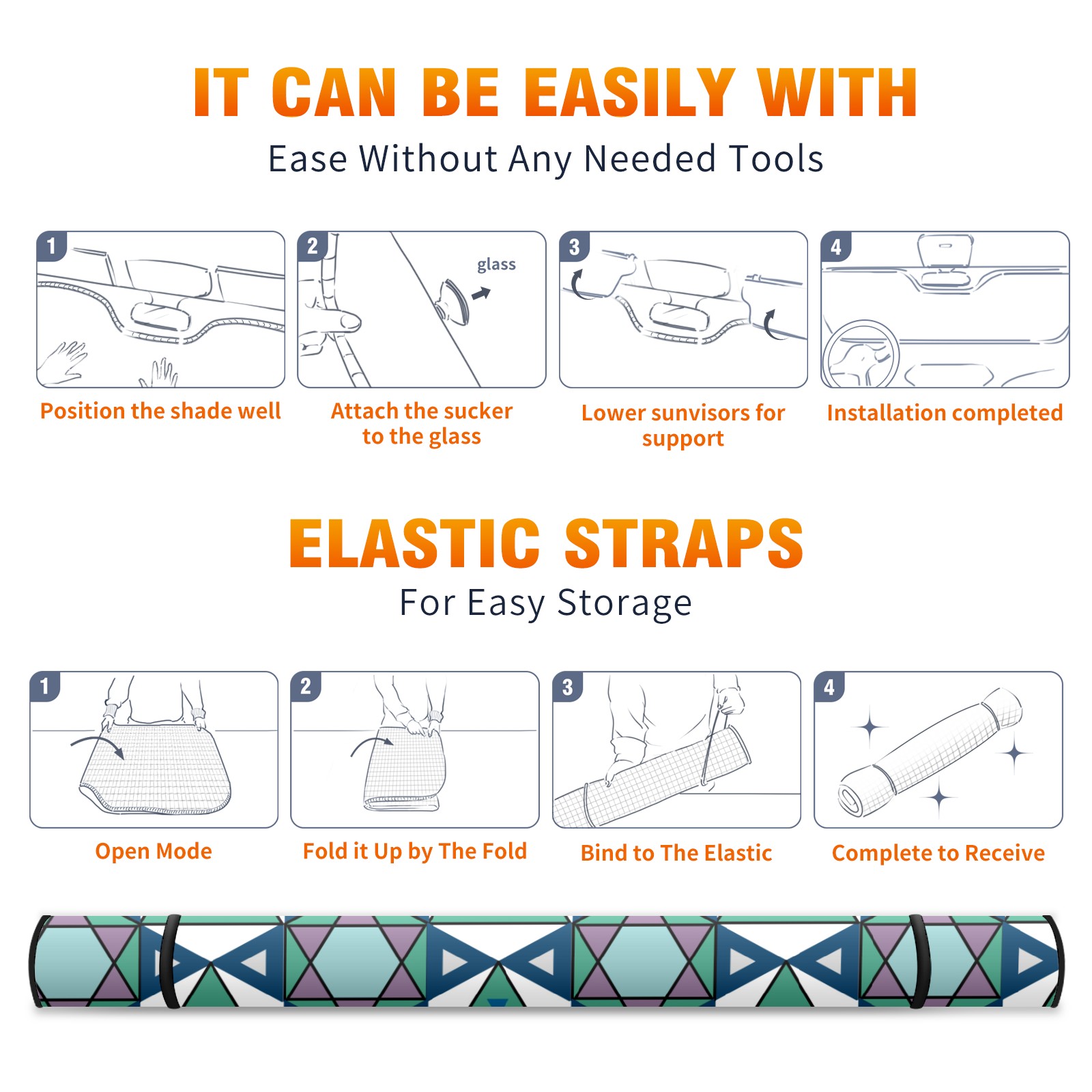 • <p><b>Foldable Premium Car Windshield Sunshade is your great solution to reduce your car’s interior temperature dramatically! This is definitely a must-have item for your summer travel!</b></p><p><b>【Precision Fit, Stylish Protection】</b></p><p>55"x30" (140x76cm) universal size with 3cm flexible margins fits curved windshields of most sedans/SUVs.</p><p><b>【Blocking Uv Rays &amp; Heat Insulation】</b></p><p>Our vehicle sunshade provides effective UV, sun, and summer heat protection, preventing leather fading and plastic cracking to keep your car interior pristine.</p><p><b>【Zero-Mark Installation &amp; Space-Saving】</b></p><p>Equipped with dual scratch-free silicone suction cups + adjustable straps: Medical-grade silicone cups hold firmly yet remove cleanly. Folds to A3 size (42x30cm x &lt;2cm thick), tucks discreetly into glove compartments or door pockets.&nbsp;</p>