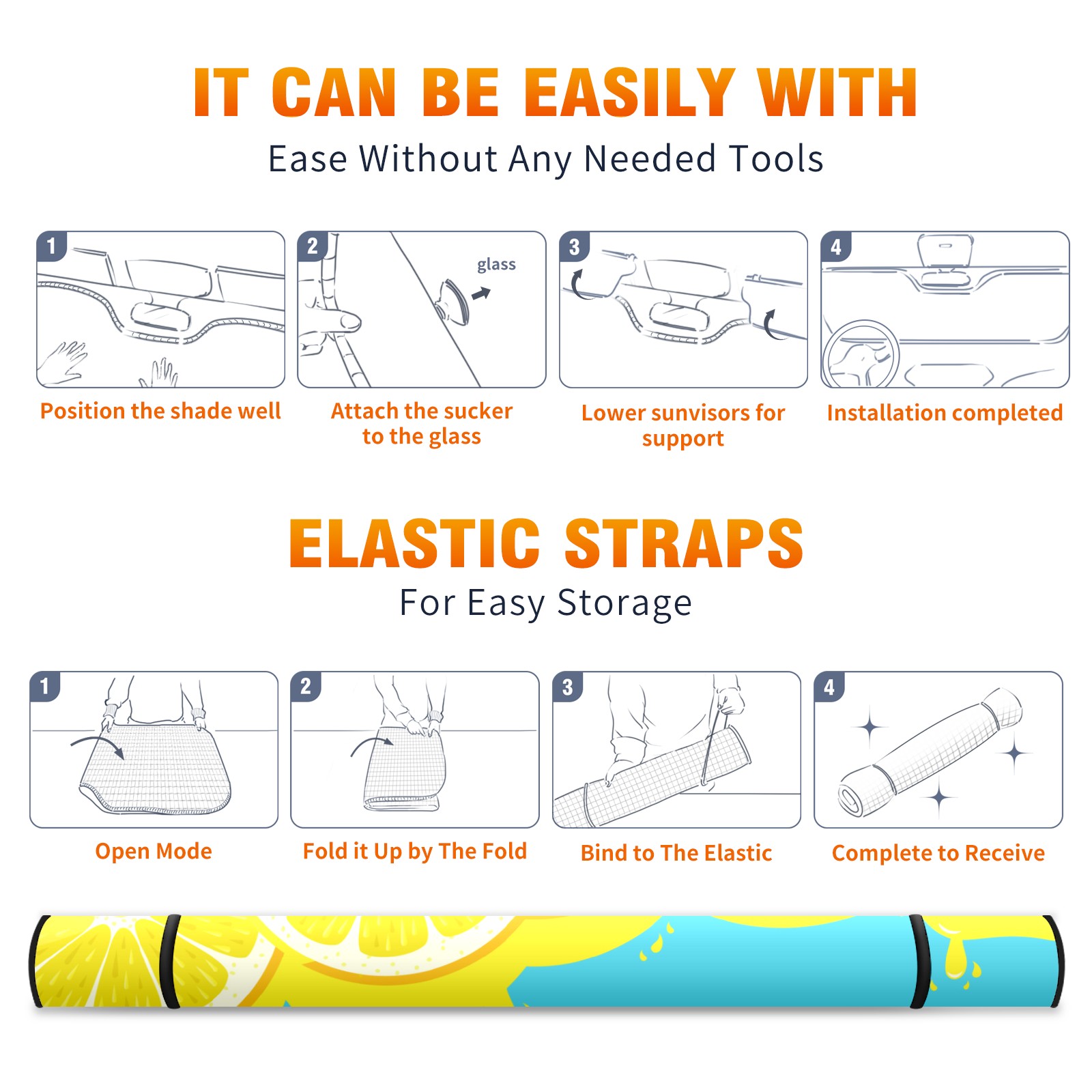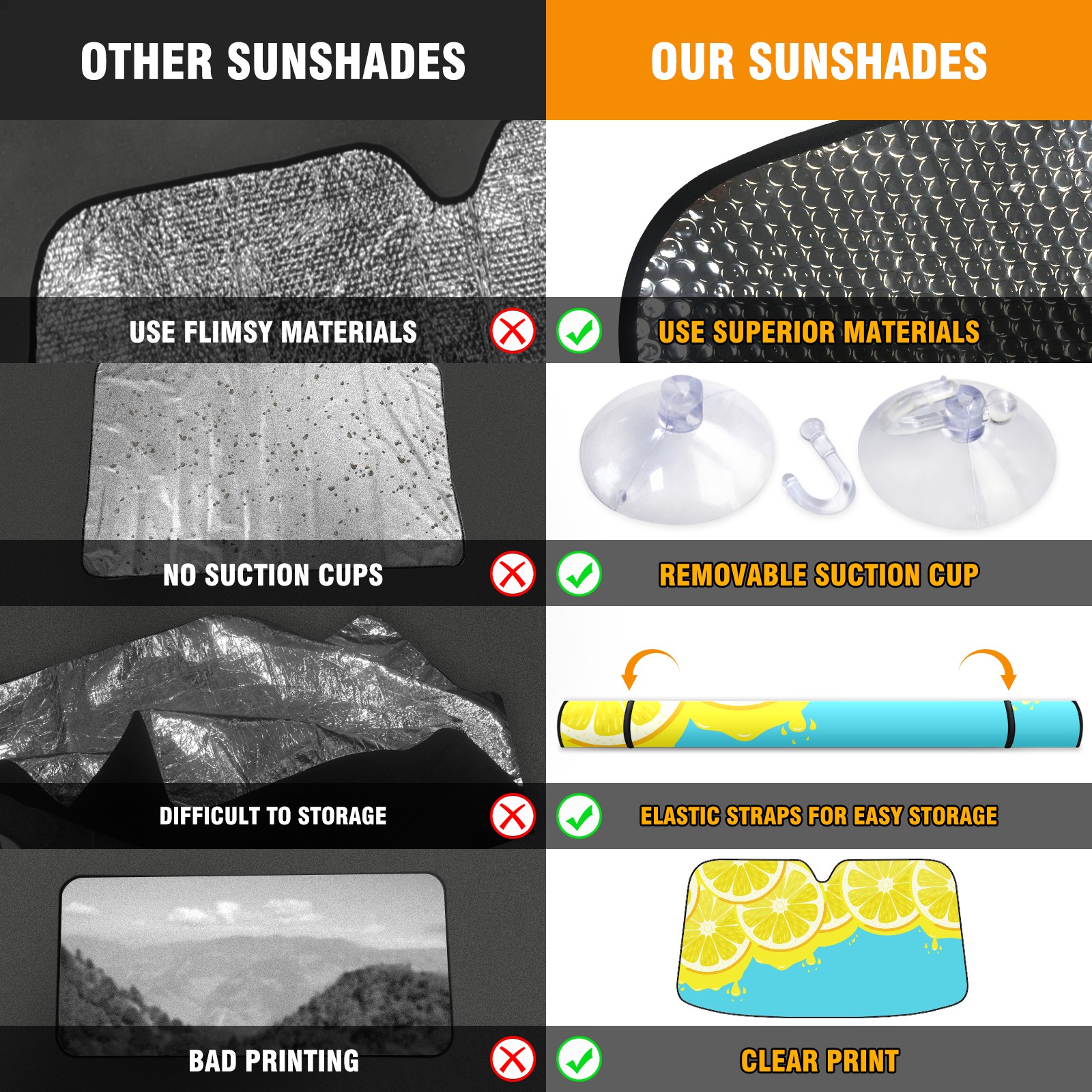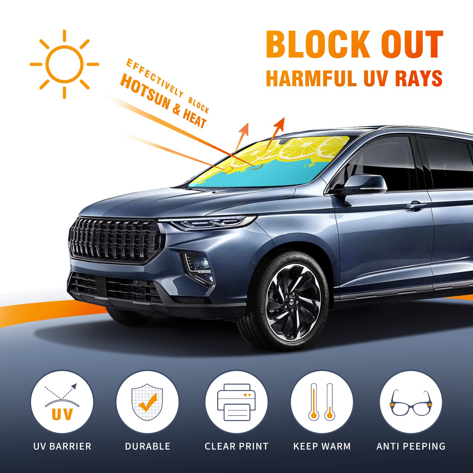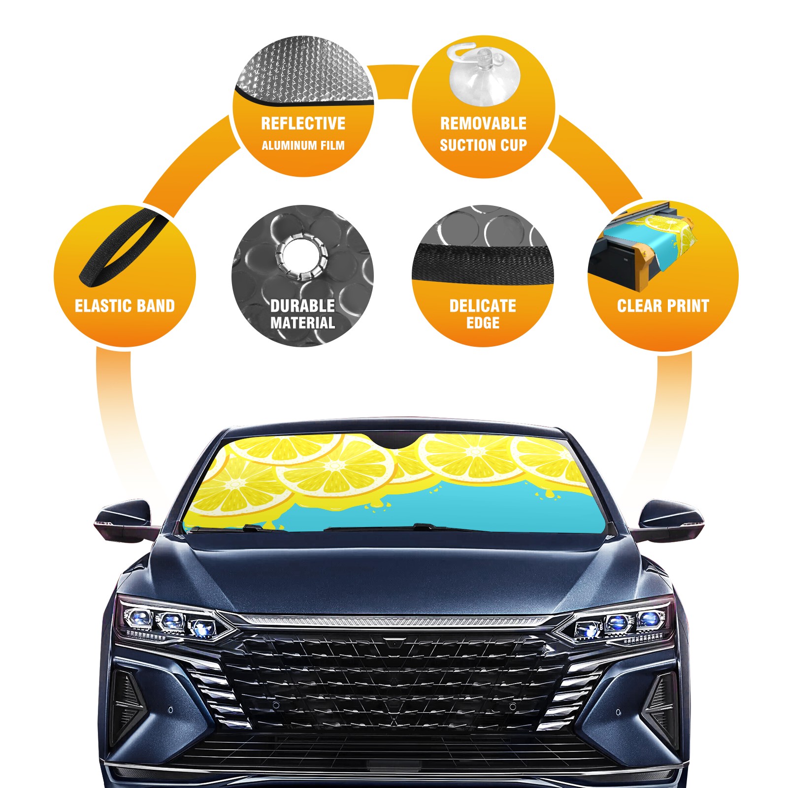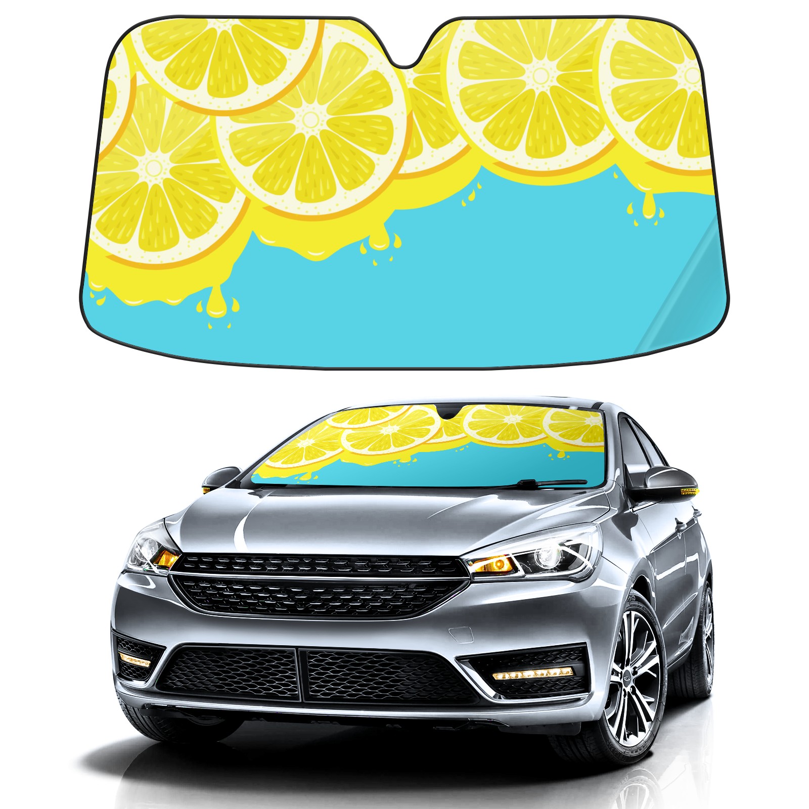 Lemon Blue Car Sun Shade UV Protection Foldable Sunshade for Windshield Heat Insulation Portable Sun Shield for Car Interior Protection Automotive Window Protector