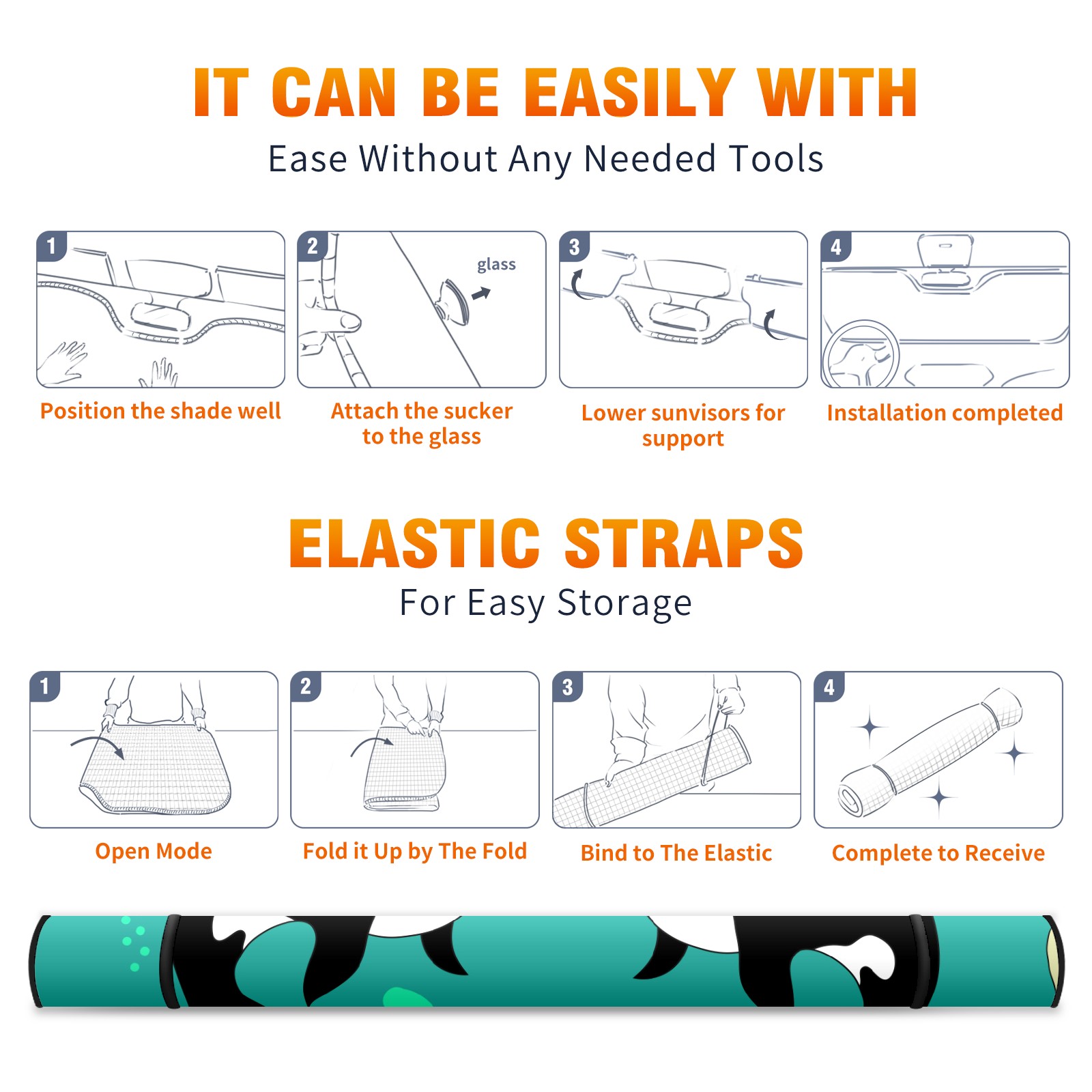 • <p><b>Foldable Premium Car Windshield Sunshade is your great solution to reduce your car’s interior temperature dramatically! This is definitely a must-have item for your summer travel!</b></p><p><b>【Precision Fit, Stylish Protection】</b></p><p>55"x30" (140x76cm) universal size with 3cm flexible margins fits curved windshields of most sedans/SUVs.</p><p><b>【Blocking Uv Rays &amp; Heat Insulation】</b></p><p>Our vehicle sunshade provides effective UV, sun, and summer heat protection, preventing leather fading and plastic cracking to keep your car interior pristine.</p><p><b>【Zero-Mark Installation &amp; Space-Saving】</b></p><p>Equipped with dual scratch-free silicone suction cups + adjustable straps: Medical-grade silicone cups hold firmly yet remove cleanly. Folds to A3 size (42x30cm x &lt;2cm thick), tucks discreetly into glove compartments or door pockets.&nbsp;</p>