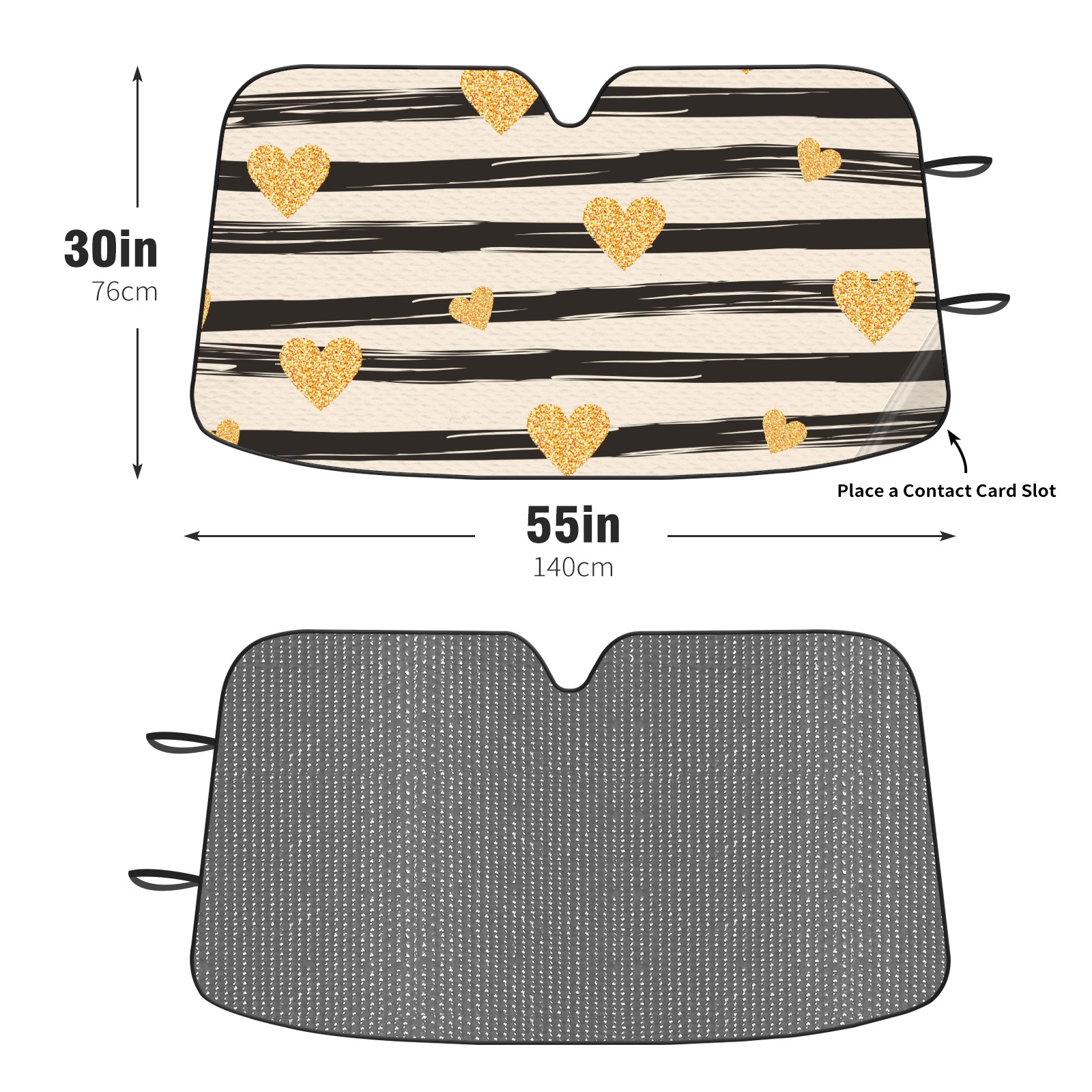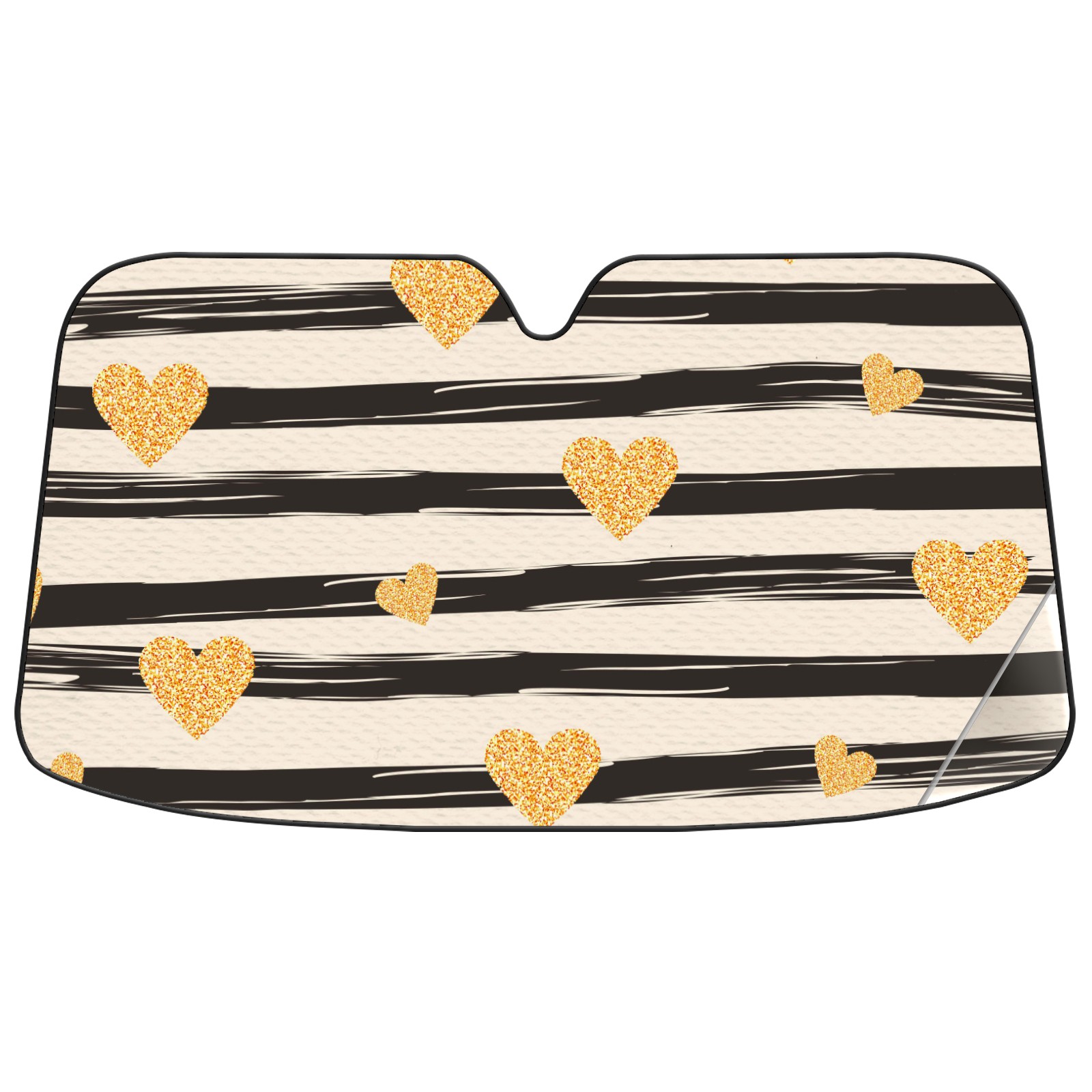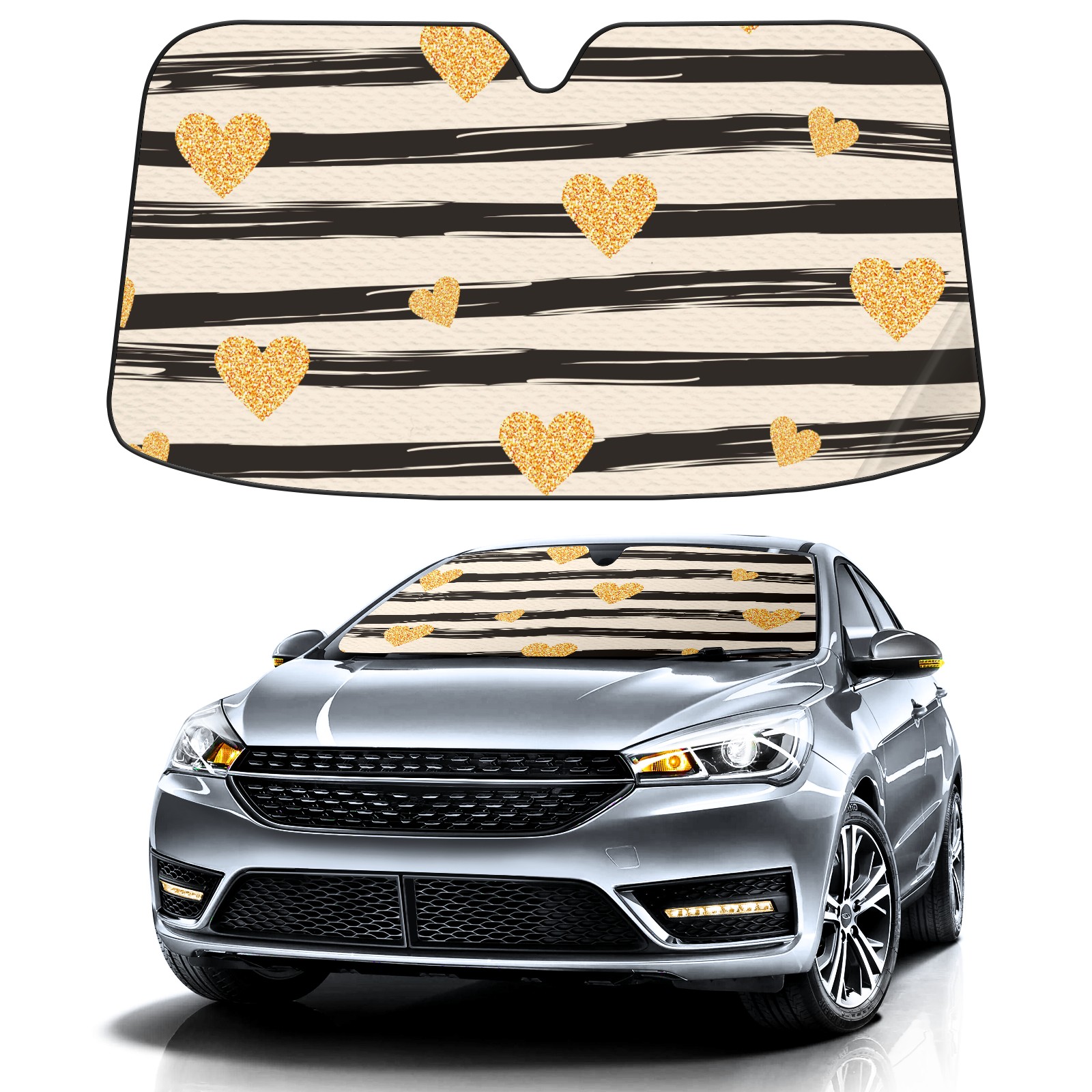 Stripes Golden Hearts Car Sun Shade UV Protection Foldable Sunshade for Windshield Heat Insulation Portable Sun Shield for Car Interior Protection Automotive Window Protector