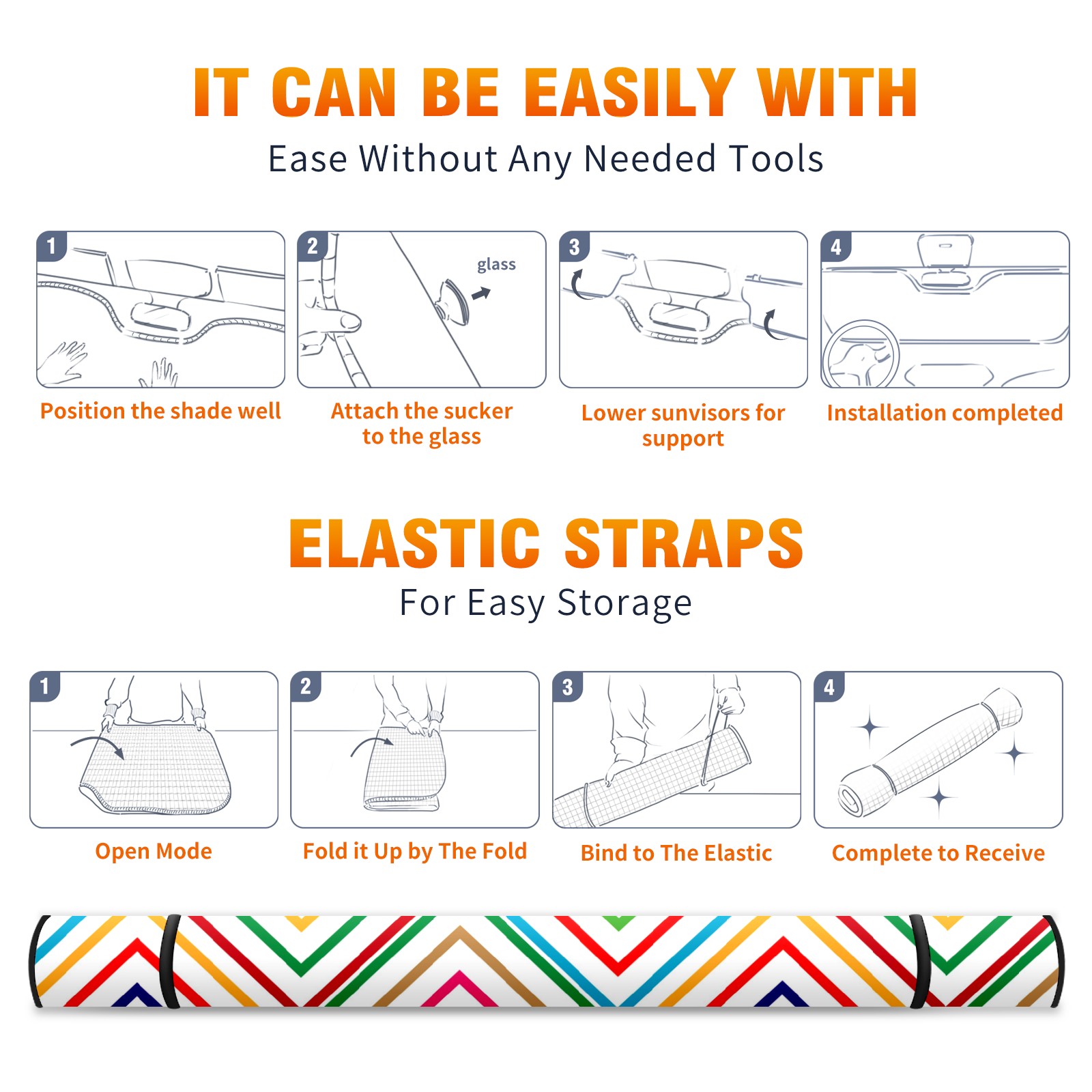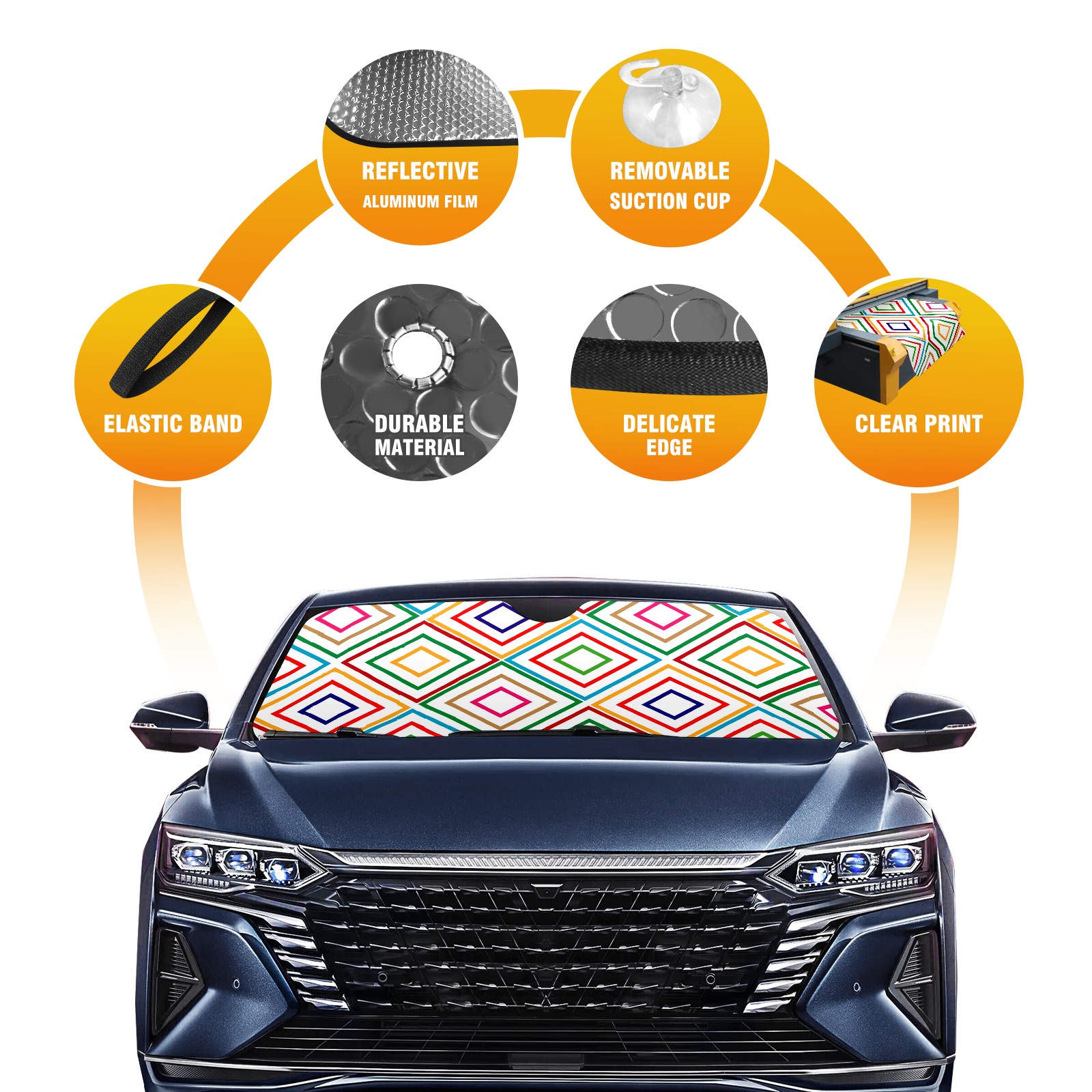• <p><b>Foldable Premium Car Windshield Sunshade is your great solution to reduce your car’s interior temperature dramatically! This is definitely a must-have item for your summer travel!</b></p><p><b>【Precision Fit, Stylish Protection】</b></p><p>55"x30" (140x76cm) universal size with 3cm flexible margins fits curved windshields of most sedans/SUVs.</p><p><b>【Blocking Uv Rays &amp; Heat Insulation】</b></p><p>Our vehicle sunshade provides effective UV, sun, and summer heat protection, preventing leather fading and plastic cracking to keep your car interior pristine.</p><p><b>【Zero-Mark Installation &amp; Space-Saving】</b></p><p>Equipped with dual scratch-free silicone suction cups + adjustable straps: Medical-grade silicone cups hold firmly yet remove cleanly. Folds to A3 size (42x30cm x &lt;2cm thick), tucks discreetly into glove compartments or door pockets.&nbsp;</p>