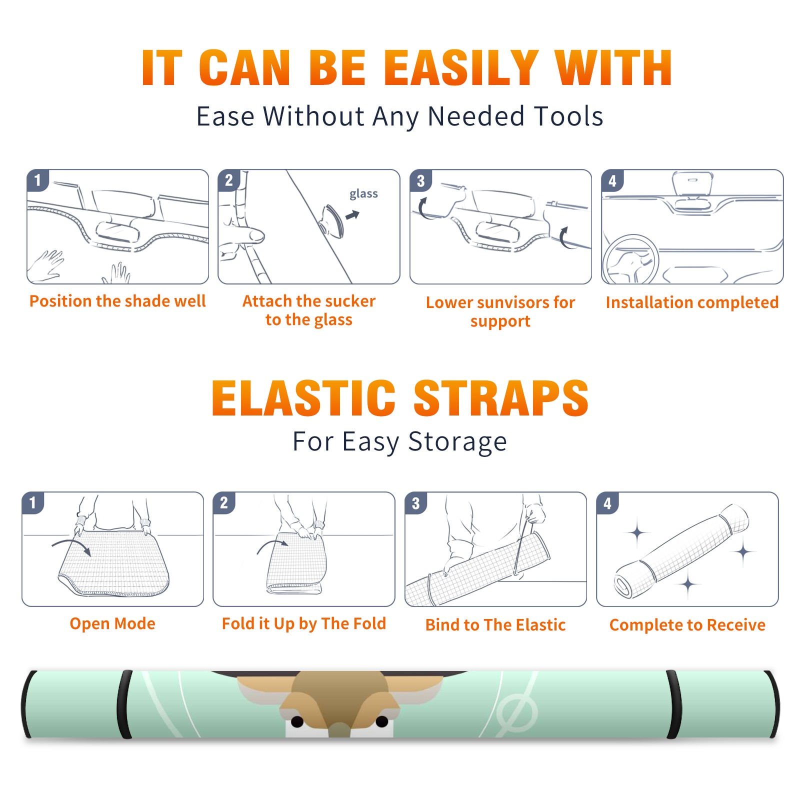 • <p><b>Foldable Premium Car Windshield Sunshade is your great solution to reduce your car’s interior temperature dramatically! This is definitely a must-have item for your summer travel!</b></p><p><b>【Precision Fit, Stylish Protection】</b></p><p>55"x30" (140x76cm) universal size with 3cm flexible margins fits curved windshields of most sedans/SUVs.</p><p><b>【Blocking Uv Rays &amp; Heat Insulation】</b></p><p>Our vehicle sunshade provides effective UV, sun, and summer heat protection, preventing leather fading and plastic cracking to keep your car interior pristine.</p><p><b>【Zero-Mark Installation &amp; Space-Saving】</b></p><p>Equipped with dual scratch-free silicone suction cups + adjustable straps: Medical-grade silicone cups hold firmly yet remove cleanly. Folds to A3 size (42x30cm x &lt;2cm thick), tucks discreetly into glove compartments or door pockets.&nbsp;</p>