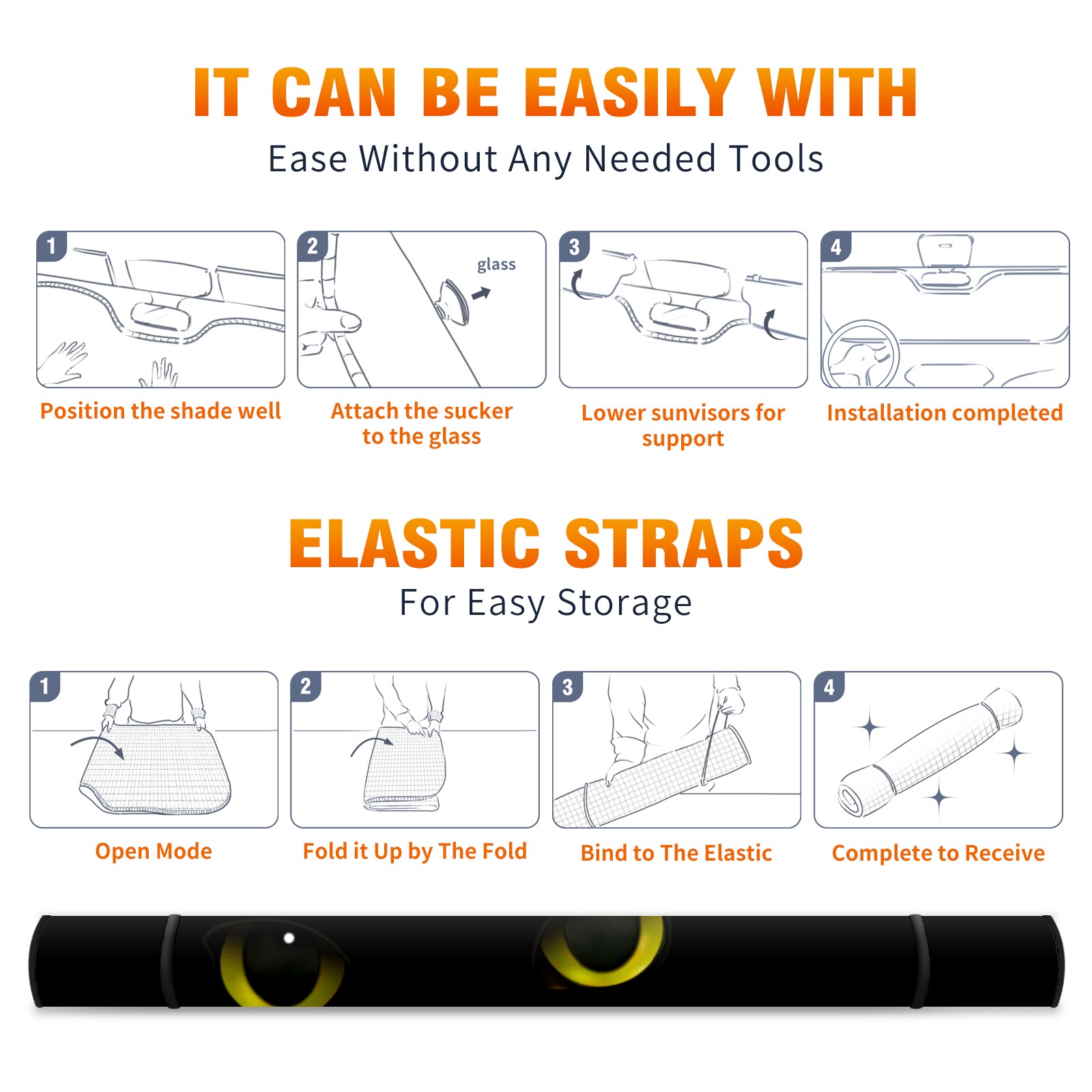 Cats Eyes Darkness Car Sun Shade UV Protection Foldable Sunshade for Windshield Heat Insulation Portable Sun Shield for Car Interior Protection Automotive Window Protector