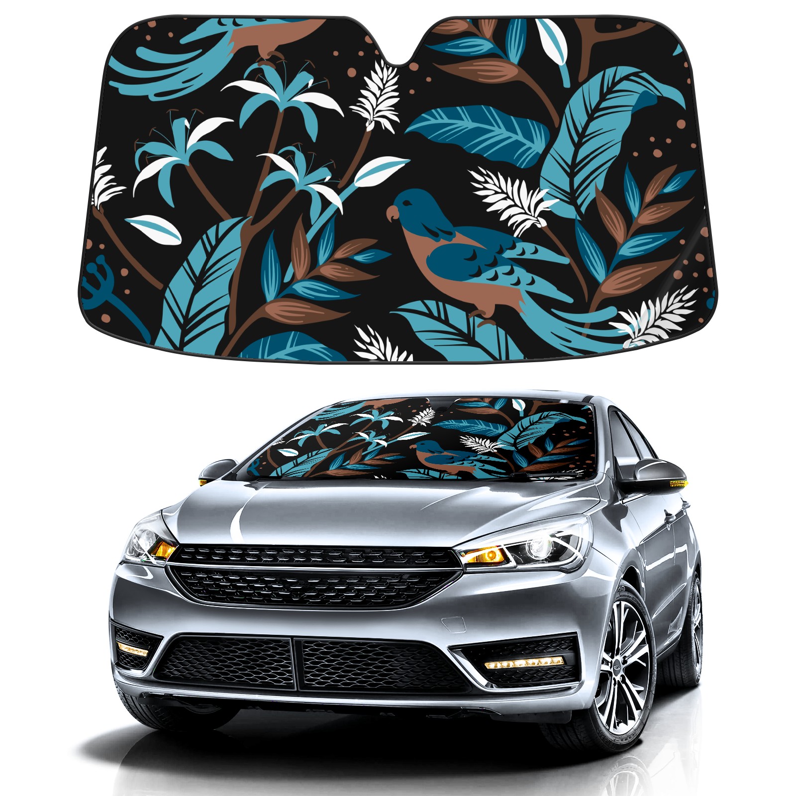 Birds Dark Color Car Sun Shade UV Protection Foldable Sunshade for Windshield Heat Insulation Portable Sun Shield for Car Interior Protection Automotive Window Protector