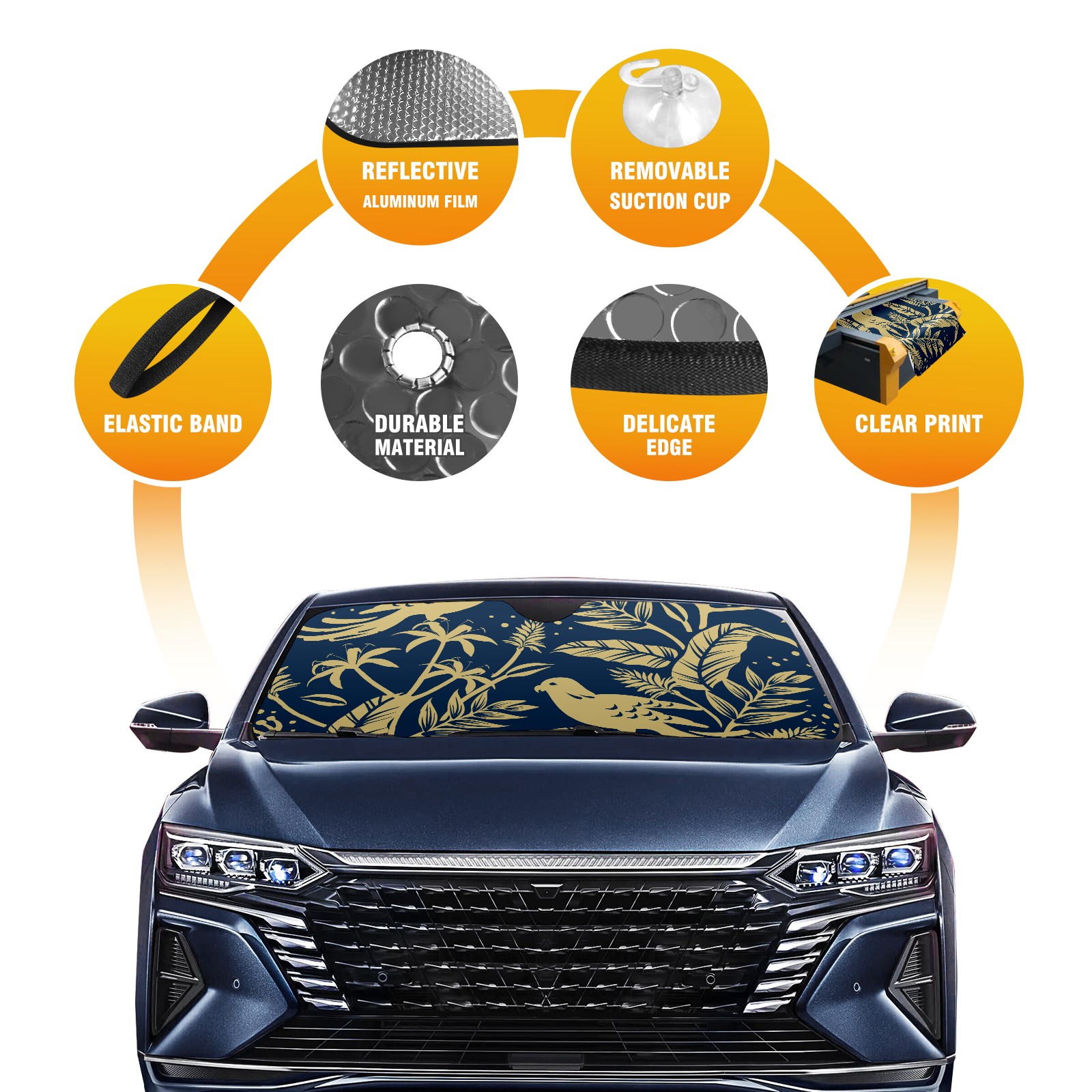 Birds Blue Car Sun Shade UV Protection Foldable Sunshade for Windshield Heat Insulation Portable Sun Shield for Car Interior Protection Automotive Window Protector