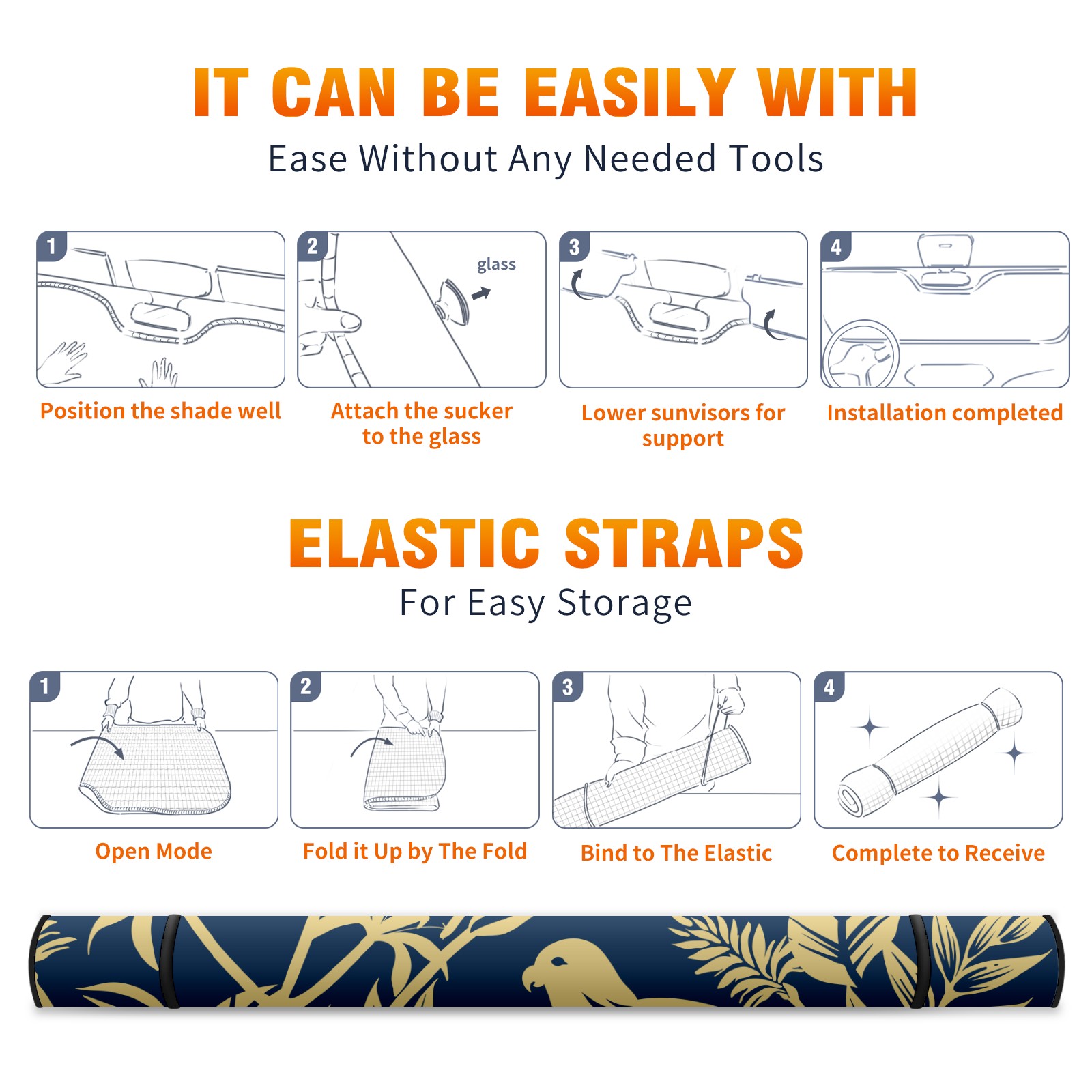 • <p><b>Foldable Premium Car Windshield Sunshade is your great solution to reduce your car’s interior temperature dramatically! This is definitely a must-have item for your summer travel!</b></p><p><b>【Precision Fit, Stylish Protection】</b></p><p>55"x30" (140x76cm) universal size with 3cm flexible margins fits curved windshields of most sedans/SUVs.</p><p><b>【Blocking Uv Rays &amp; Heat Insulation】</b></p><p>Our vehicle sunshade provides effective UV, sun, and summer heat protection, preventing leather fading and plastic cracking to keep your car interior pristine.</p><p><b>【Zero-Mark Installation &amp; Space-Saving】</b></p><p>Equipped with dual scratch-free silicone suction cups + adjustable straps: Medical-grade silicone cups hold firmly yet remove cleanly. Folds to A3 size (42x30cm x &lt;2cm thick), tucks discreetly into glove compartments or door pockets.&nbsp;</p>