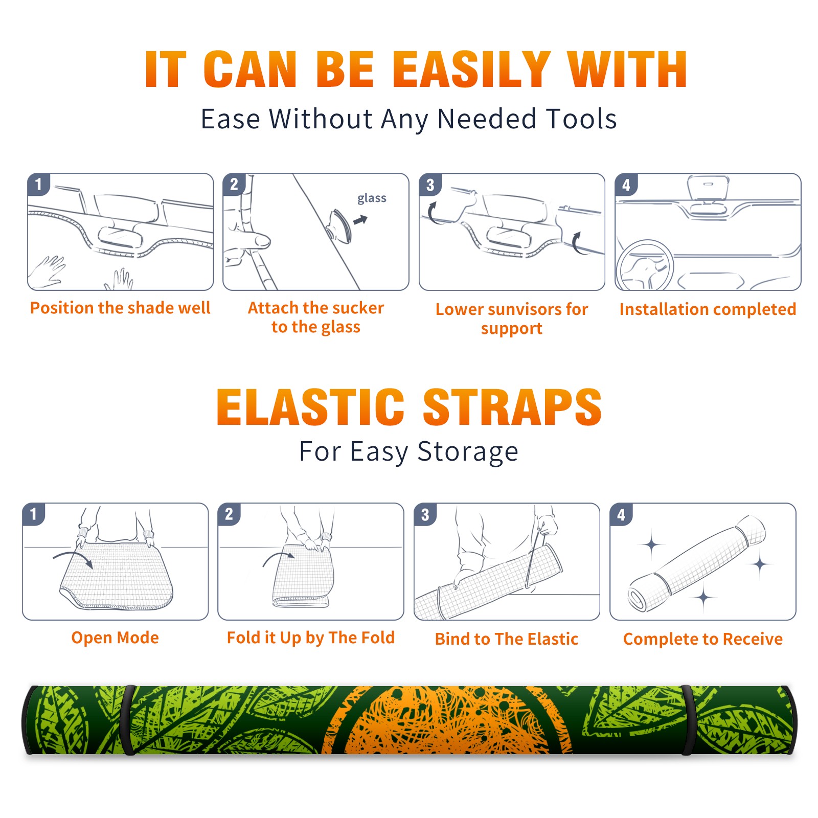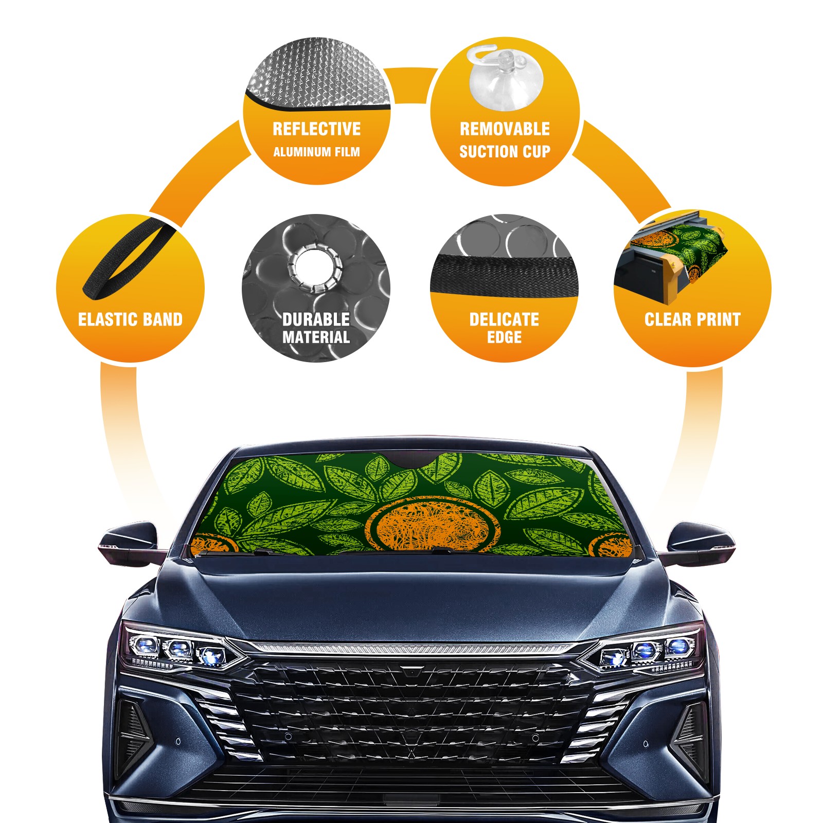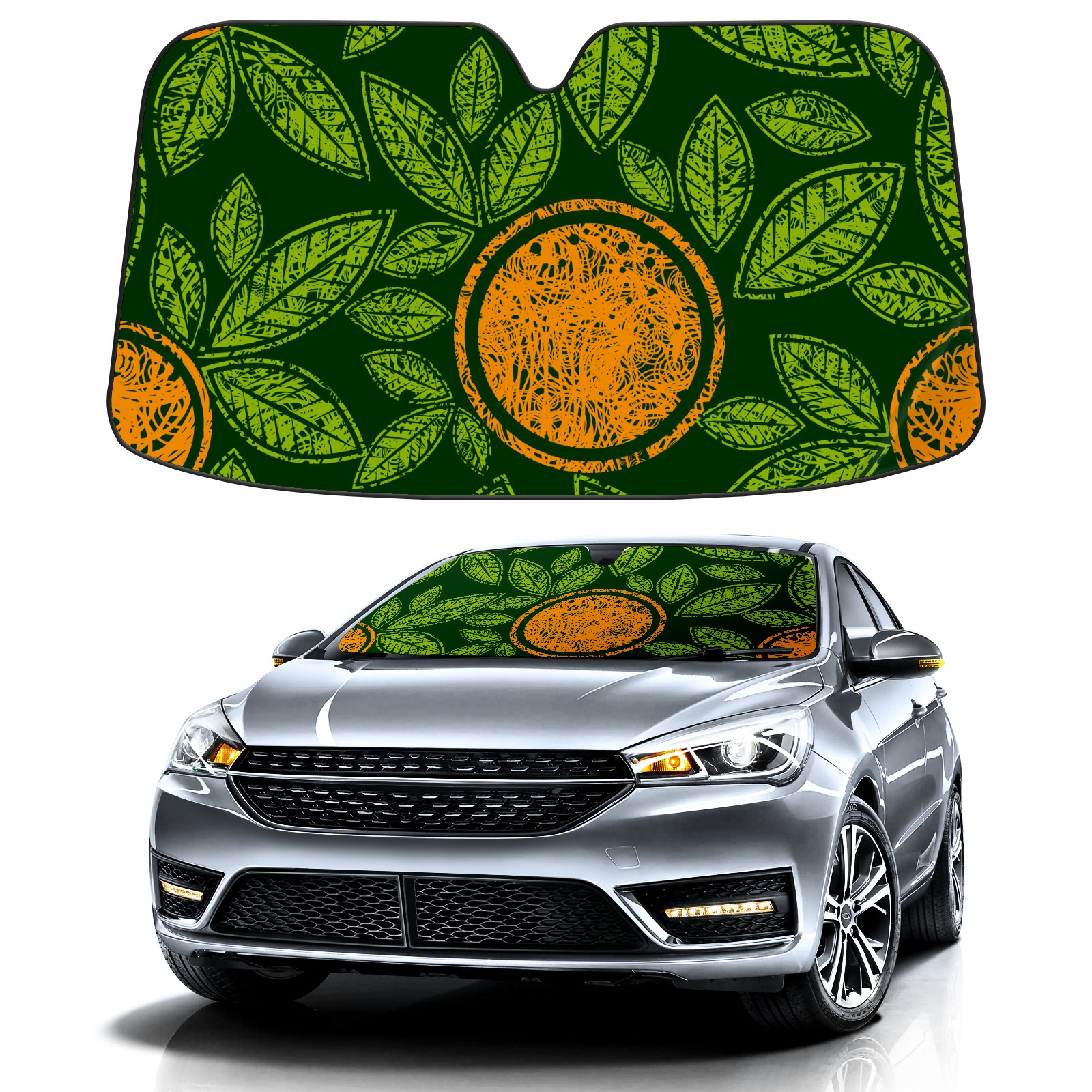 orange green leaves Car Sun Shade UV Protection Foldable Sunshade for Windshield Heat Insulation Portable Sun Shield for Car Interior Protection Automotive Window Protector