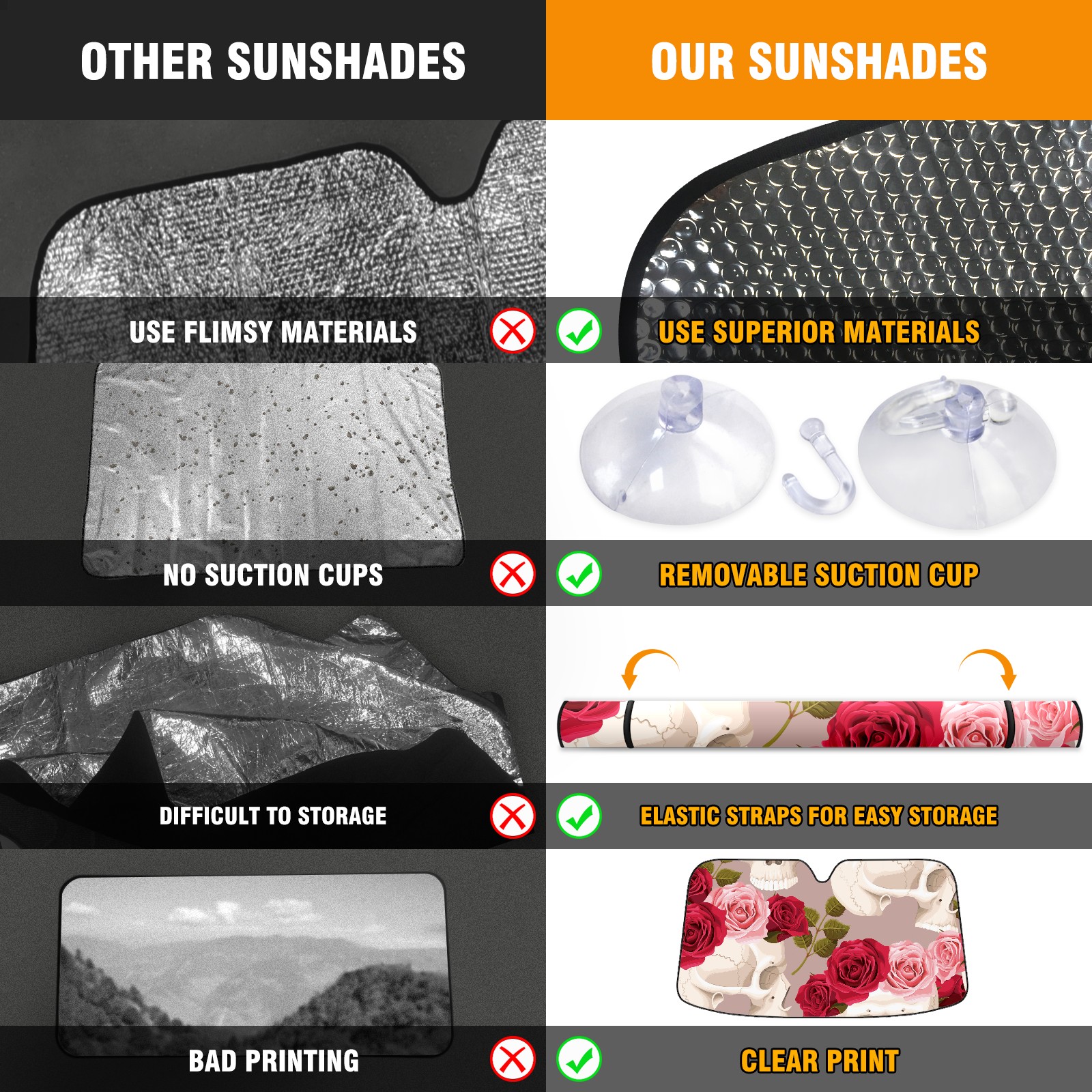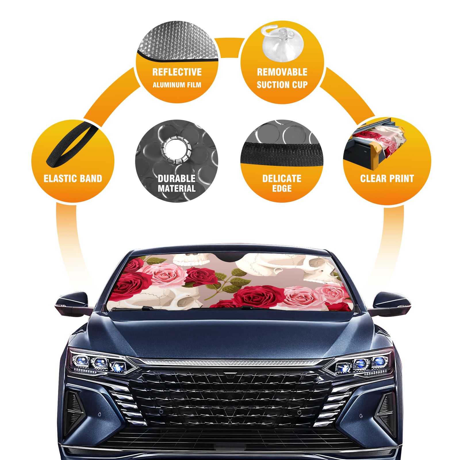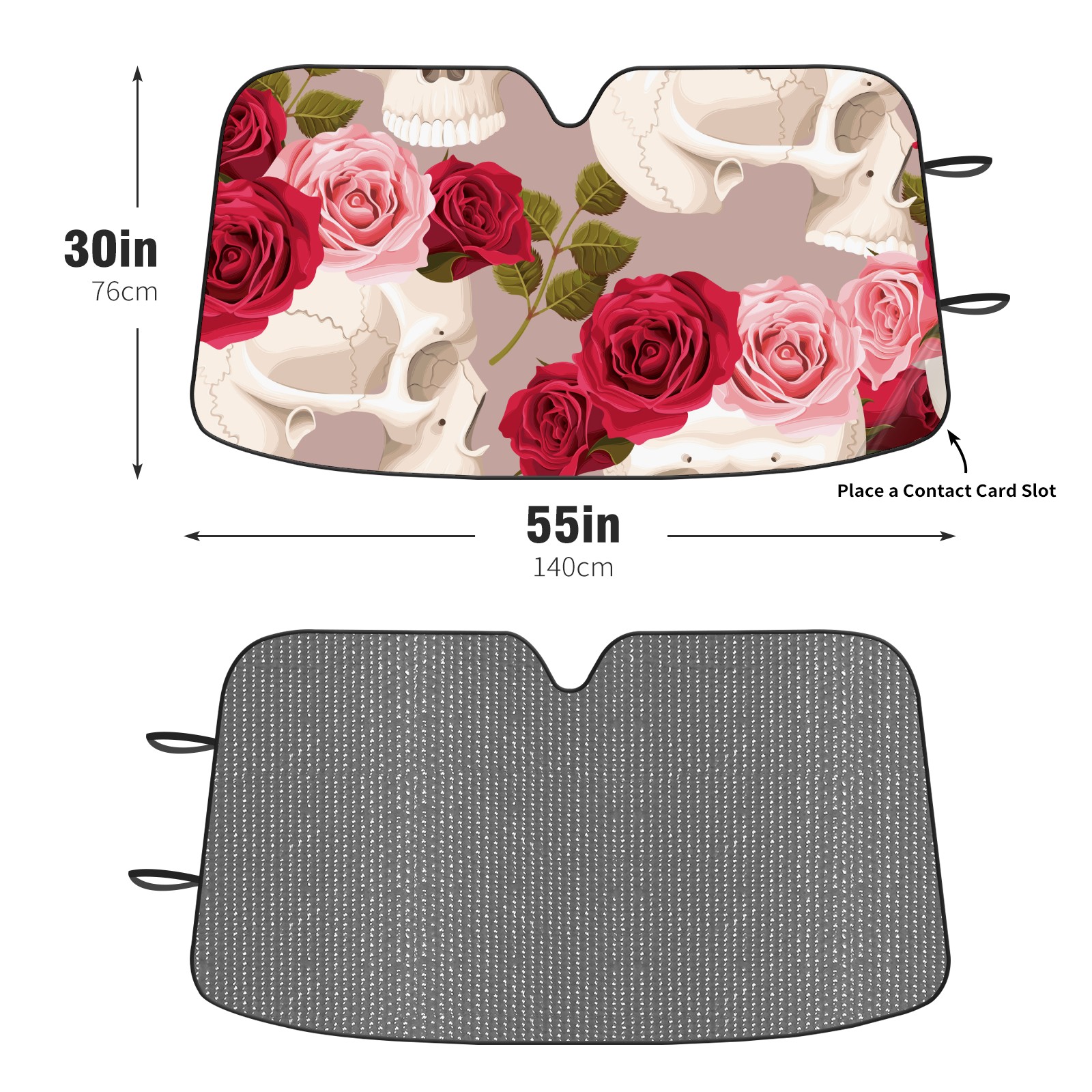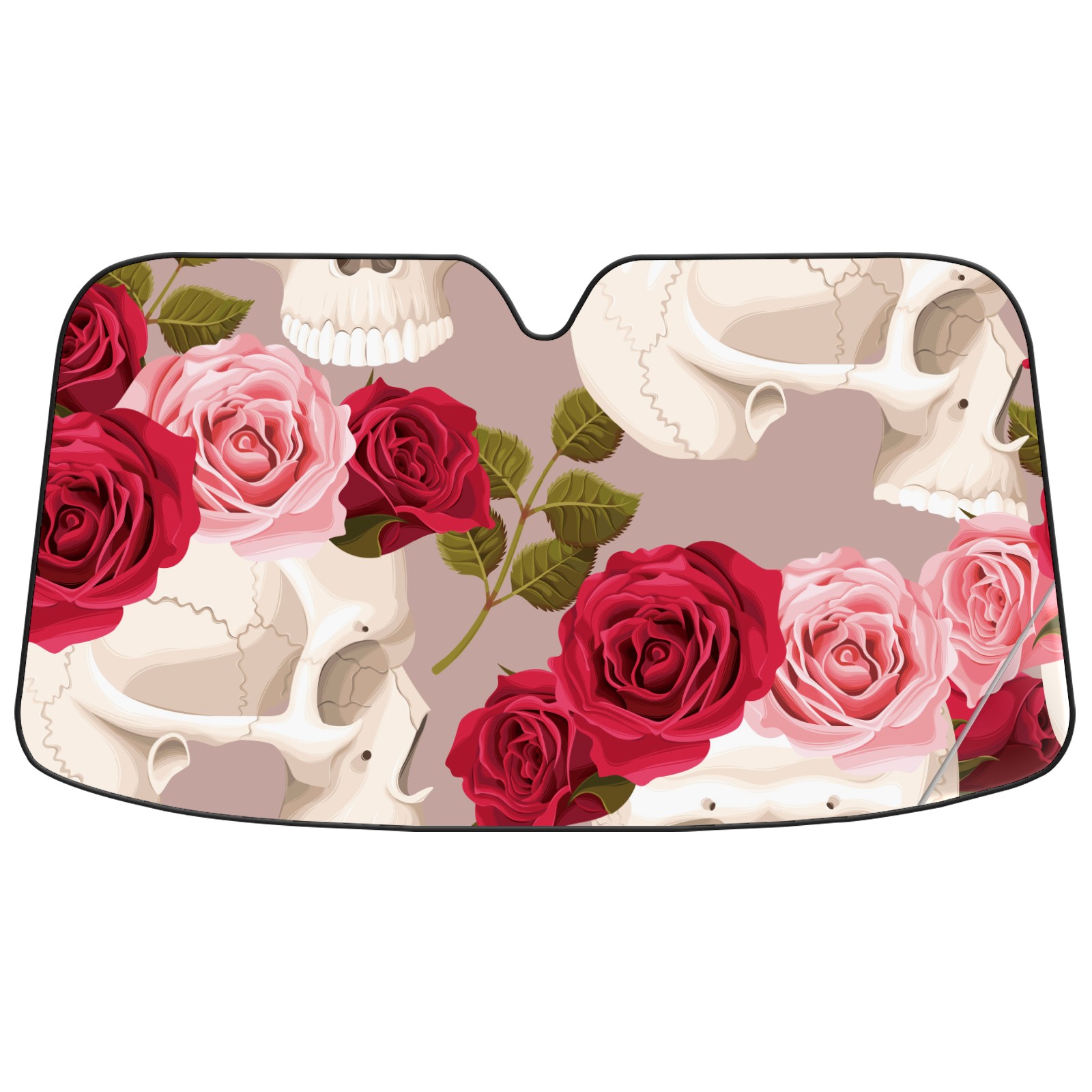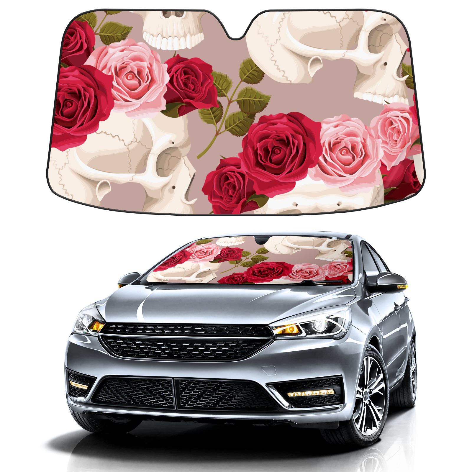 rose pink skull Car Sun Shade UV Protection Foldable Sunshade for Windshield Heat Insulation Portable Sun Shield for Car Interior Protection Automotive Window Protector