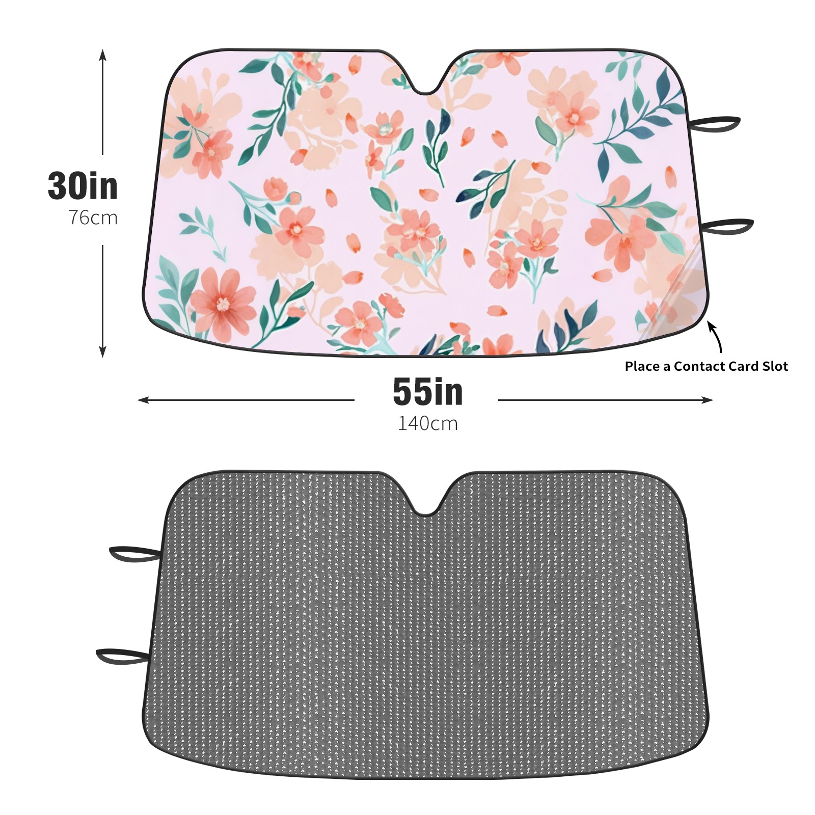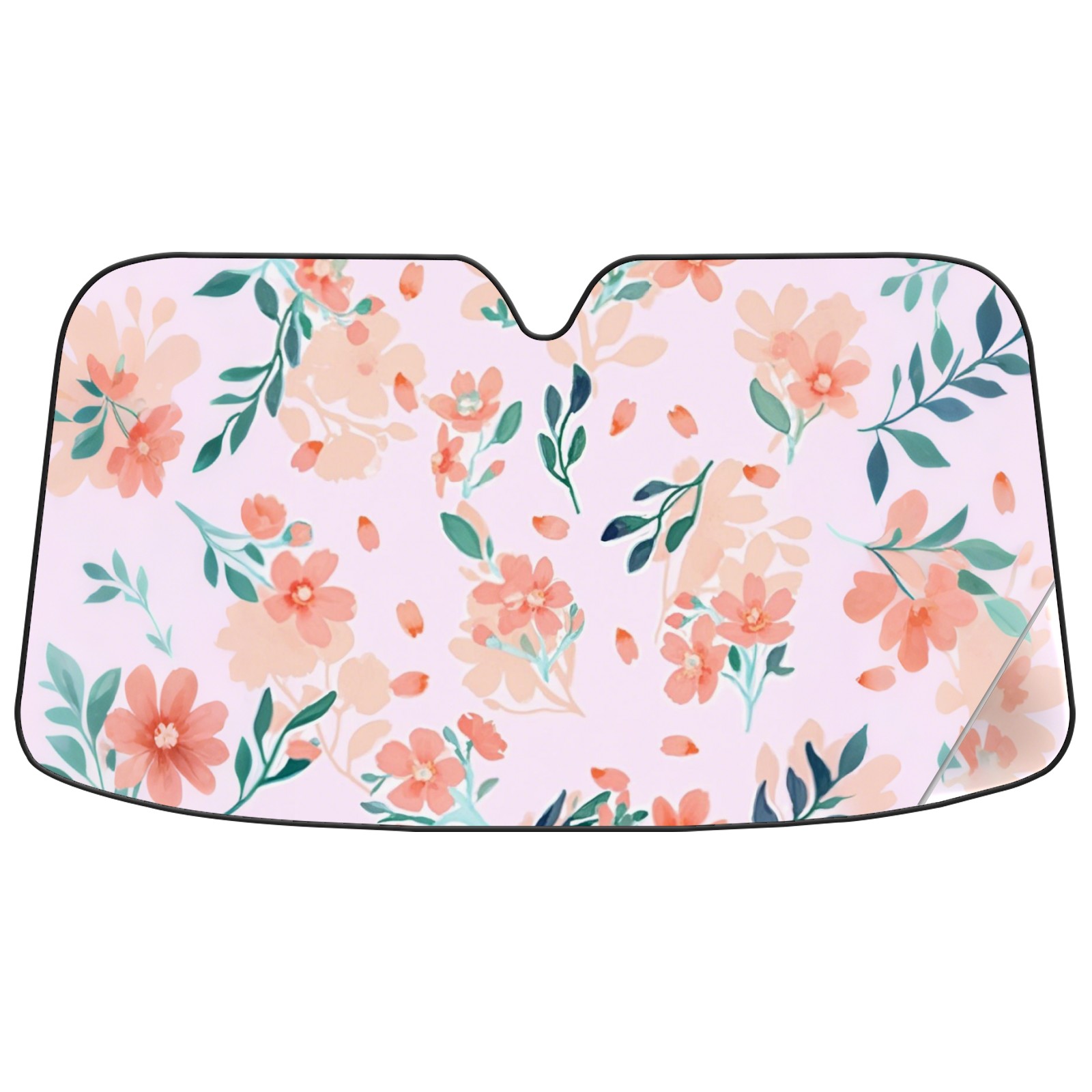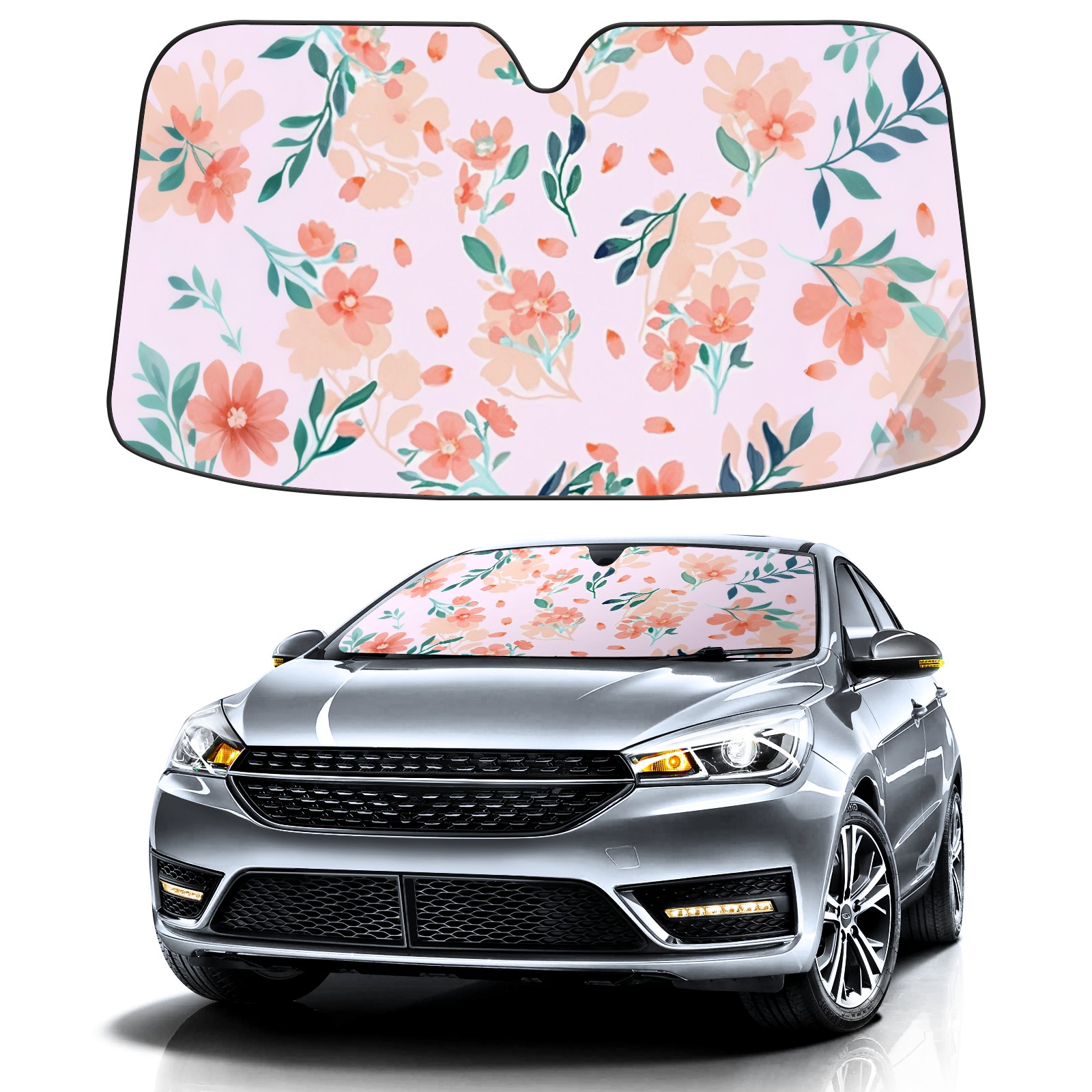 Peach Flowers Car Sun Shade UV Protection Foldable Sunshade for Windshield Heat Insulation Portable Sun Shield for Car Interior Protection Automotive Window Protector