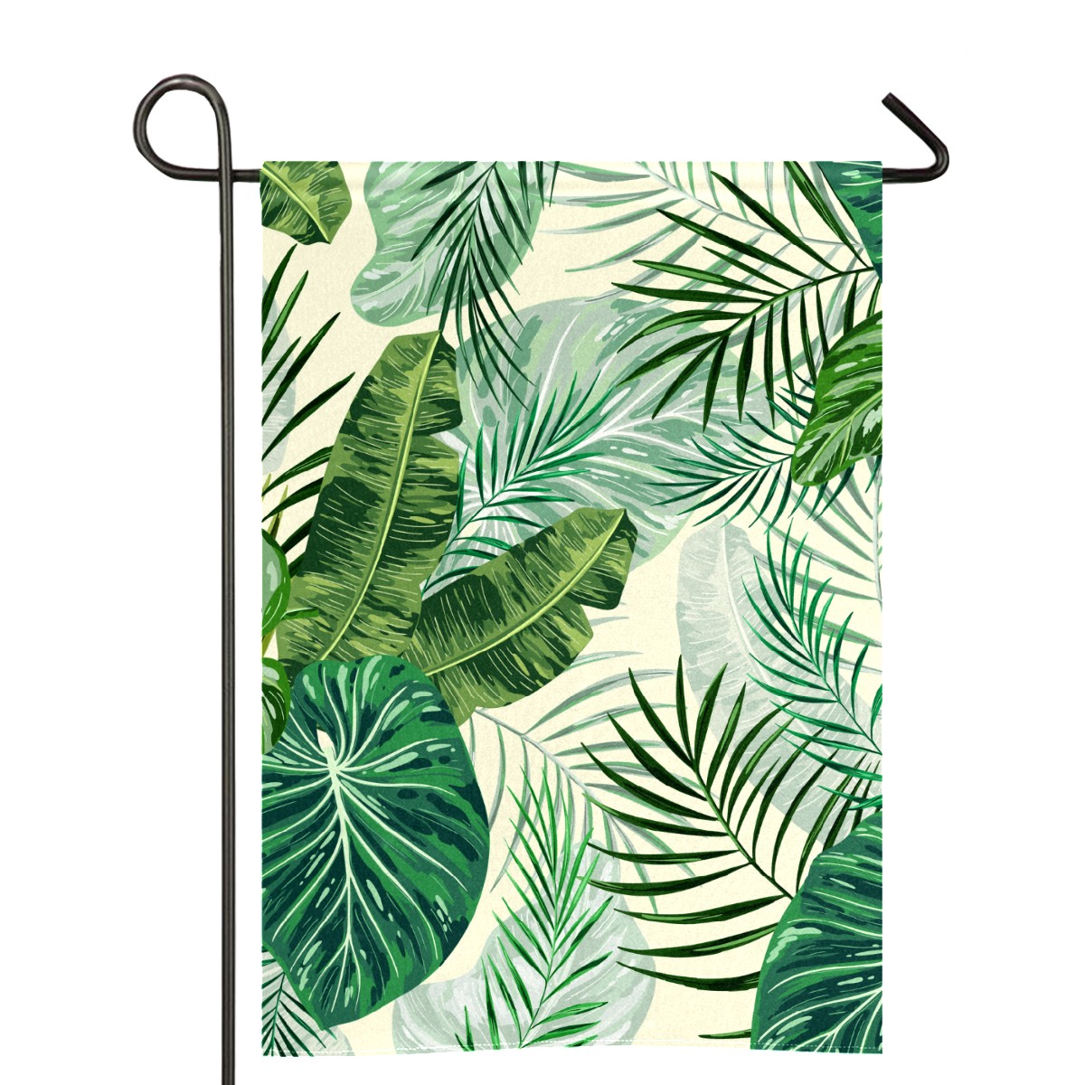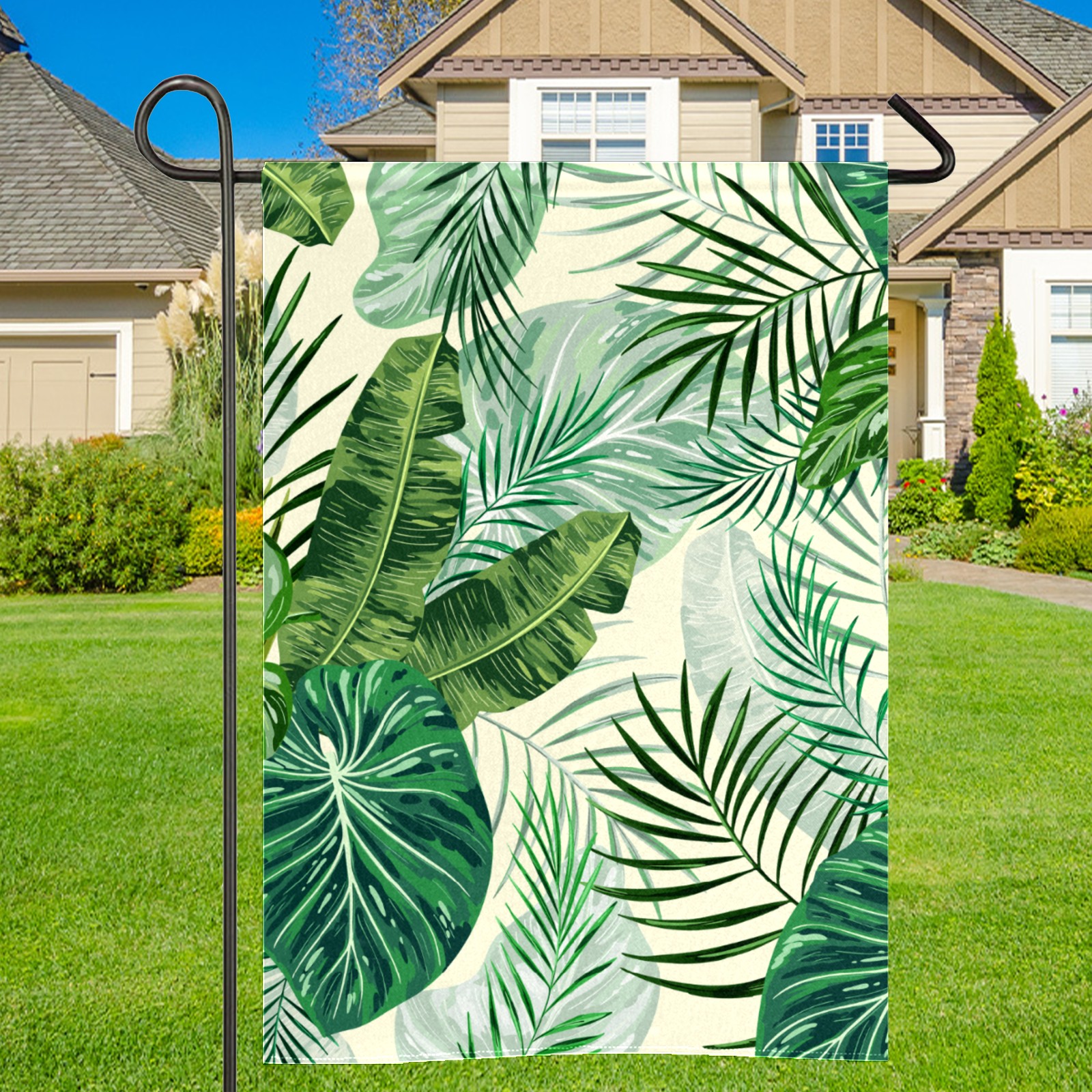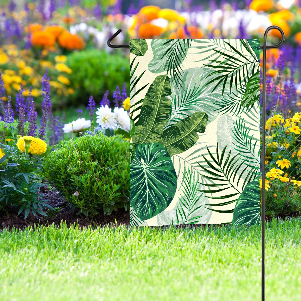 Green Tropical Leaves Waterproof Garden Flag for Outdoor Yard, Lawn, Porch Decor - All-Season Holiday Party/Patio Landscape Decoration (12x18 Inch)