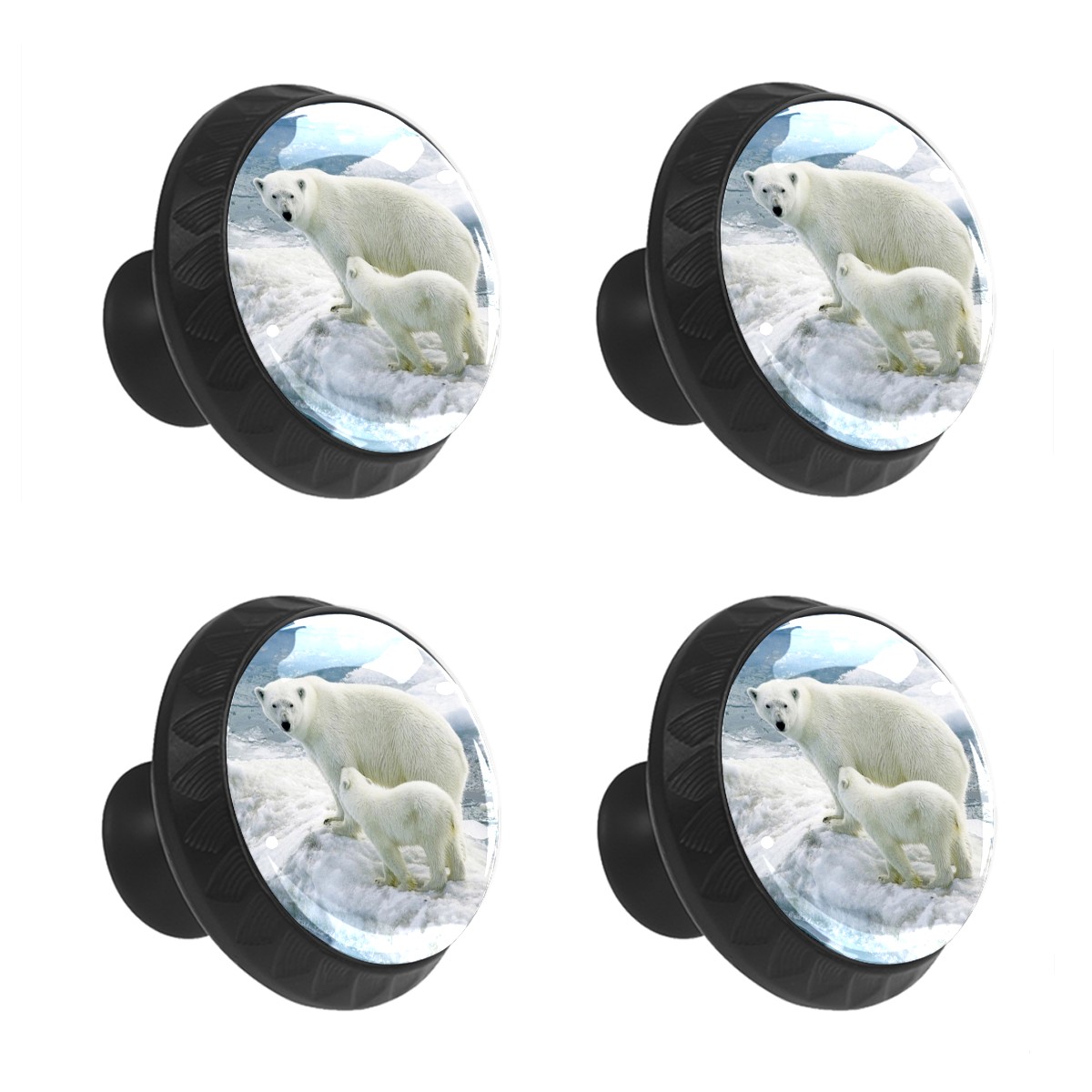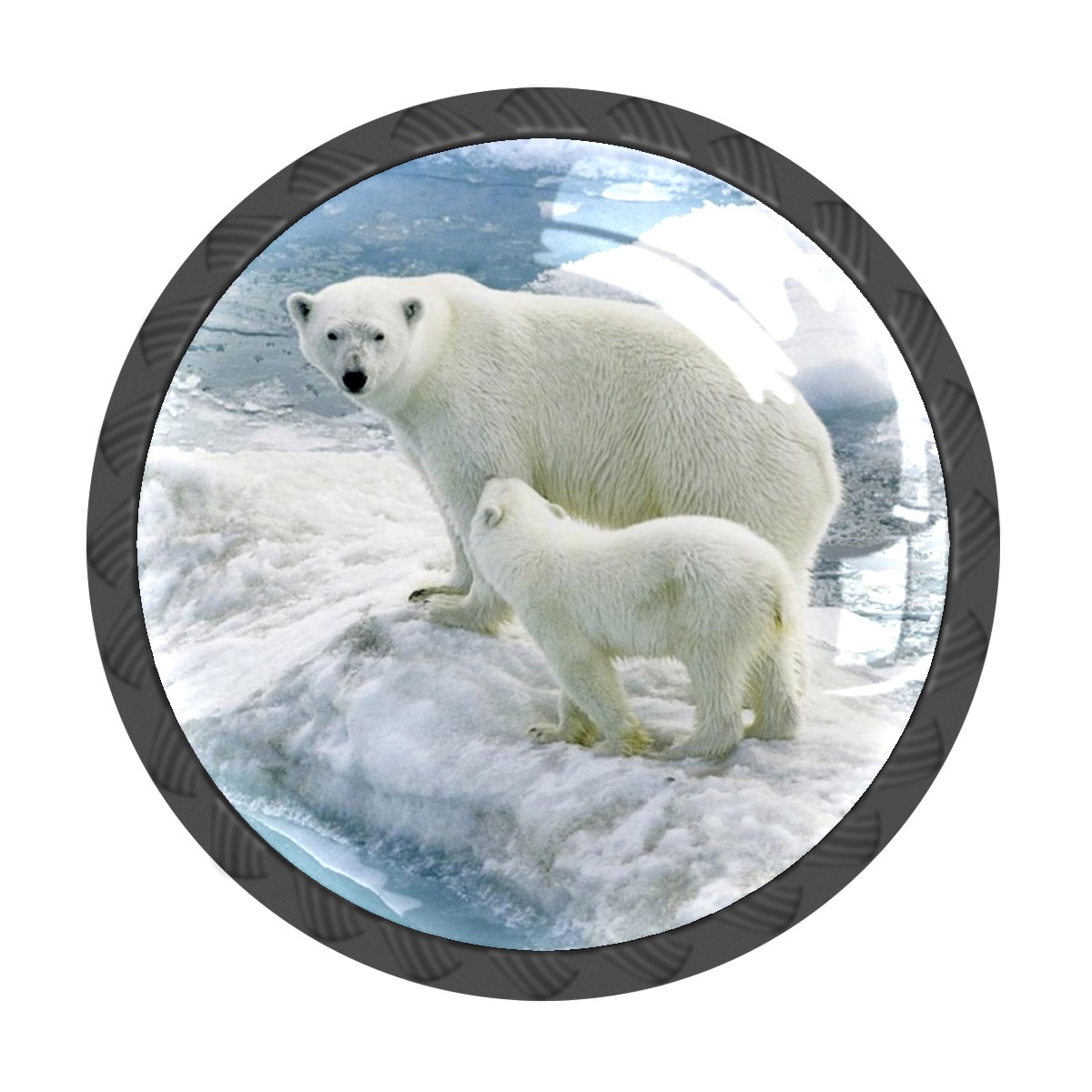 4 Pack Cute Polar Bear Mother Baby Cabinet Knobs Hardware Crystal Glass Drawer Pulls Knobs for Dresser Kitchen Bathroom Cabinets Drawers Black Furniture Cupboard Wardrobe Handles Round, 1-3/8''