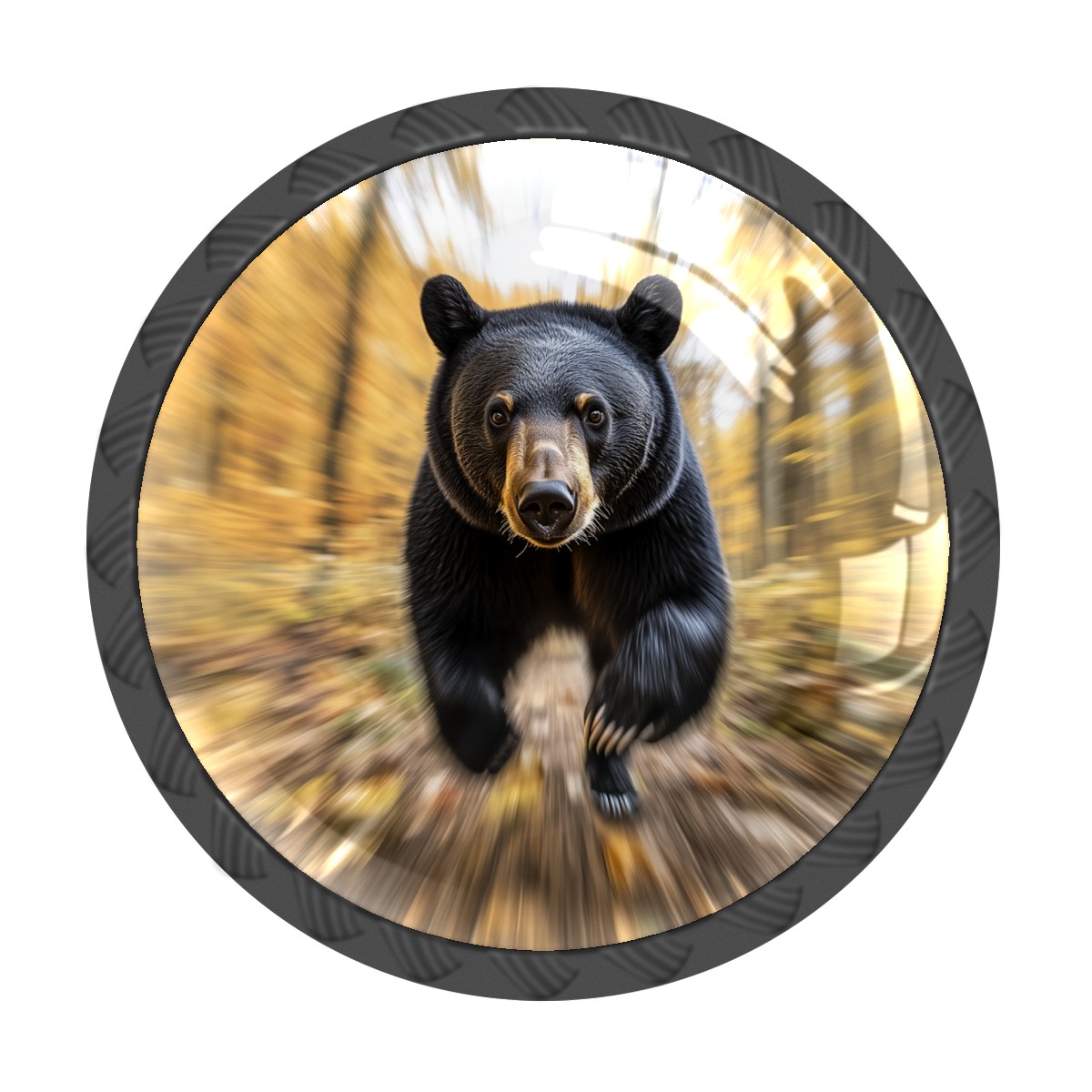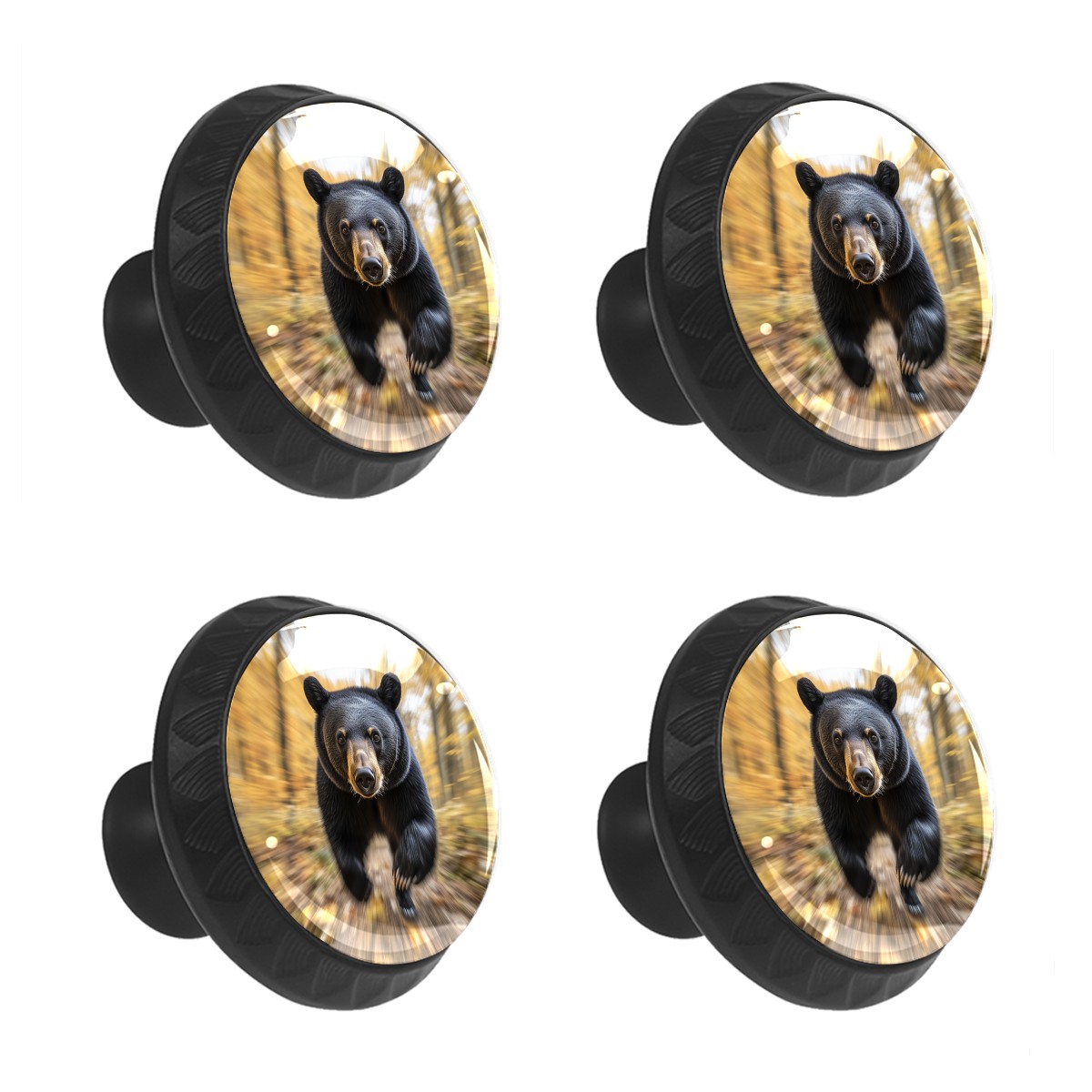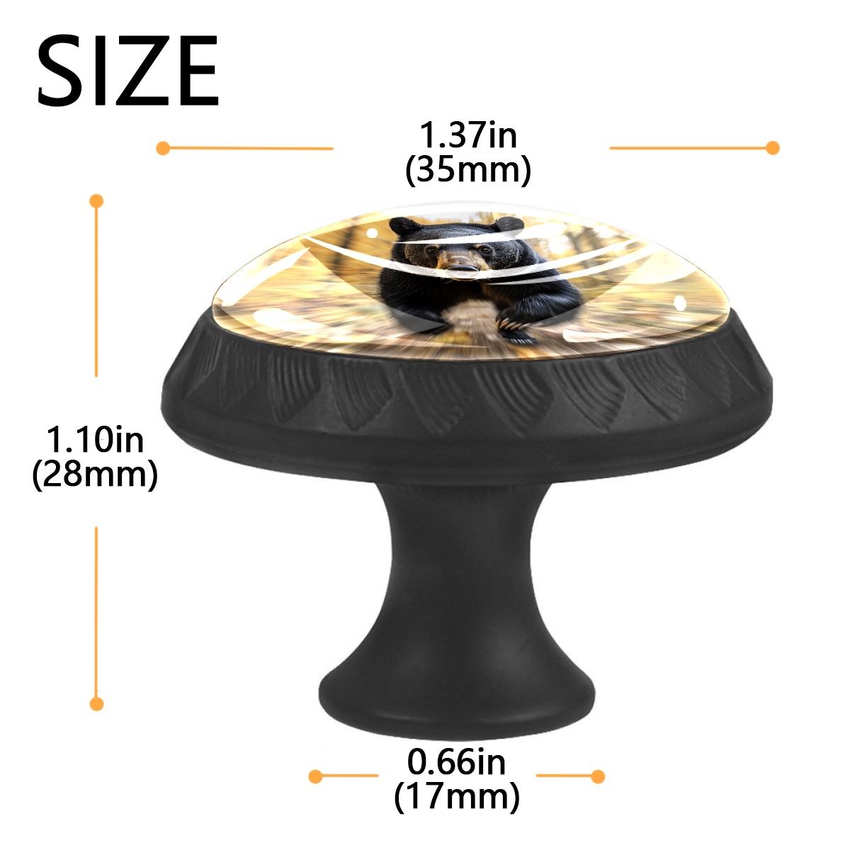 4 Pack Bear Cabinet Knobs Hardware Crystal Glass Drawer Pulls Knobs for Dresser Kitchen Bathroom Cabinets Drawers Black Furniture Cupboard Wardrobe Handles Round, 1-3/8''