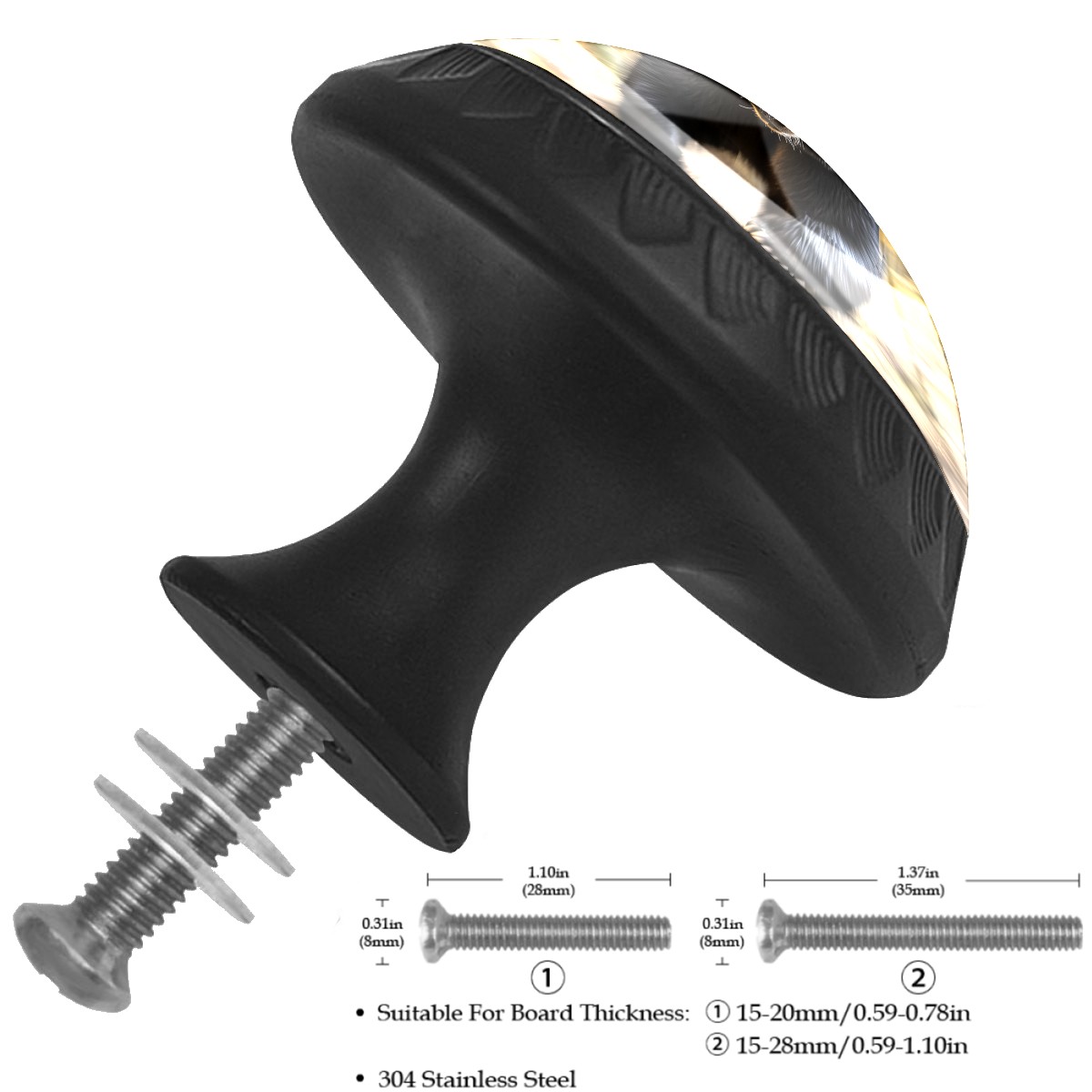 • <p><b>Package Includes:</b></p> <p>Drawer Knobs x 4</p> <p>1.10 Inches Mounting Screws x 4</p> <p>1.37 Inches Mounting Screws x 4</p> <p><br></p> <p></p> <p>Crystal Glass Diameter: 1.37 inches (35mm)</p> <p>Knob Height: 1.10 inches (28mm)</p> <p>Base Diameter: 0.66 inches (17mm)</p> <p><b>Practical and Aesthetic:</b></p> <p>The knobs for kitchen cabinets and drawers combine the durability of an ABS base with the high transparency of glass, enhanced by unique patterns that add decoration and cuteness. It’s both practical and visually appealing.</p> <p><b>Pattern Design:</b></p> <p>Clear patterns add decoration and personalization. Cabinet knobs and pulls enhance visual appeal and can match different home styles, meeting diverse design needs.</p> <p><b>Easy Installation:</b></p> <p>Equipped with mounting screws, the ABS base can be securely attached to the drawer with ease.</p> <p><b>Easy Cleaning:</b></p> <p>The smooth surface of the round glass drawer knobs resists dust and stains, making it easy to clean with just a damp cloth.</p> <p><b>Wear-Resistant:</b></p> <p>The bathroom cabinet knobs are designed to resist scratches and fading, maintaining their good appearance over long-term use.</p>