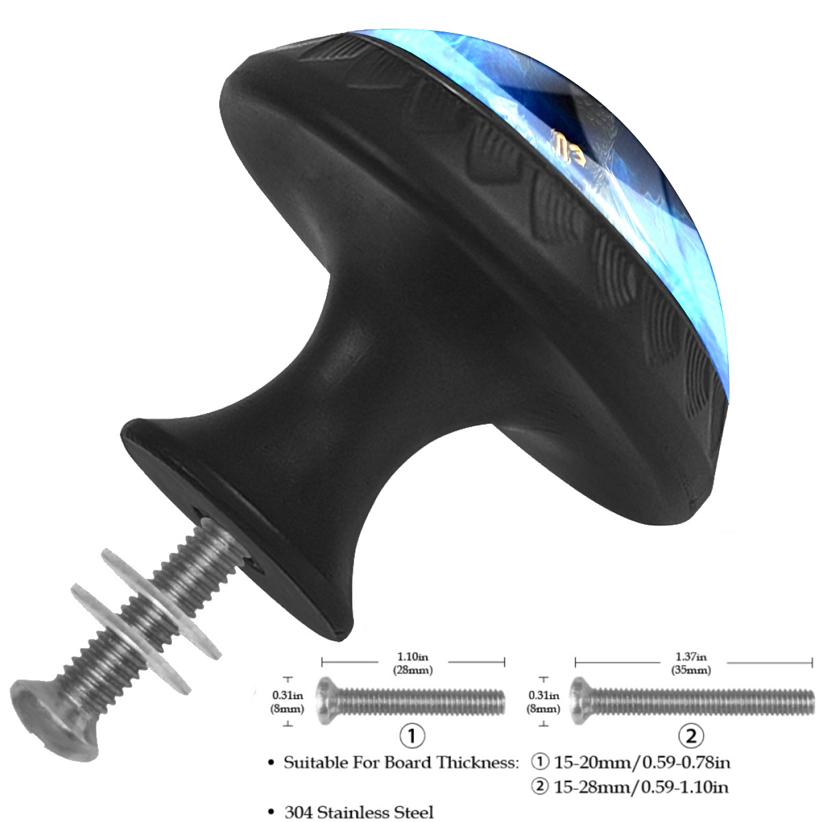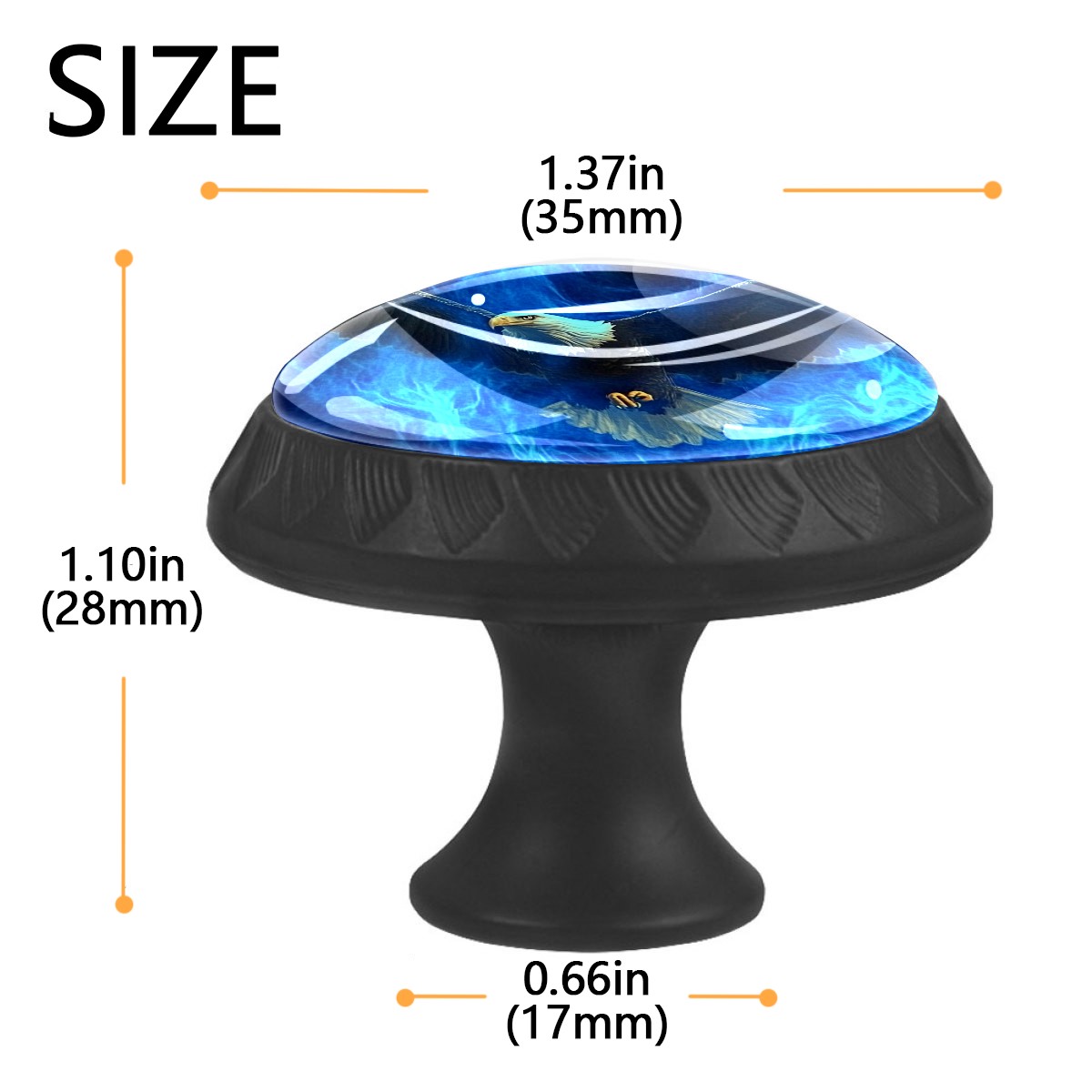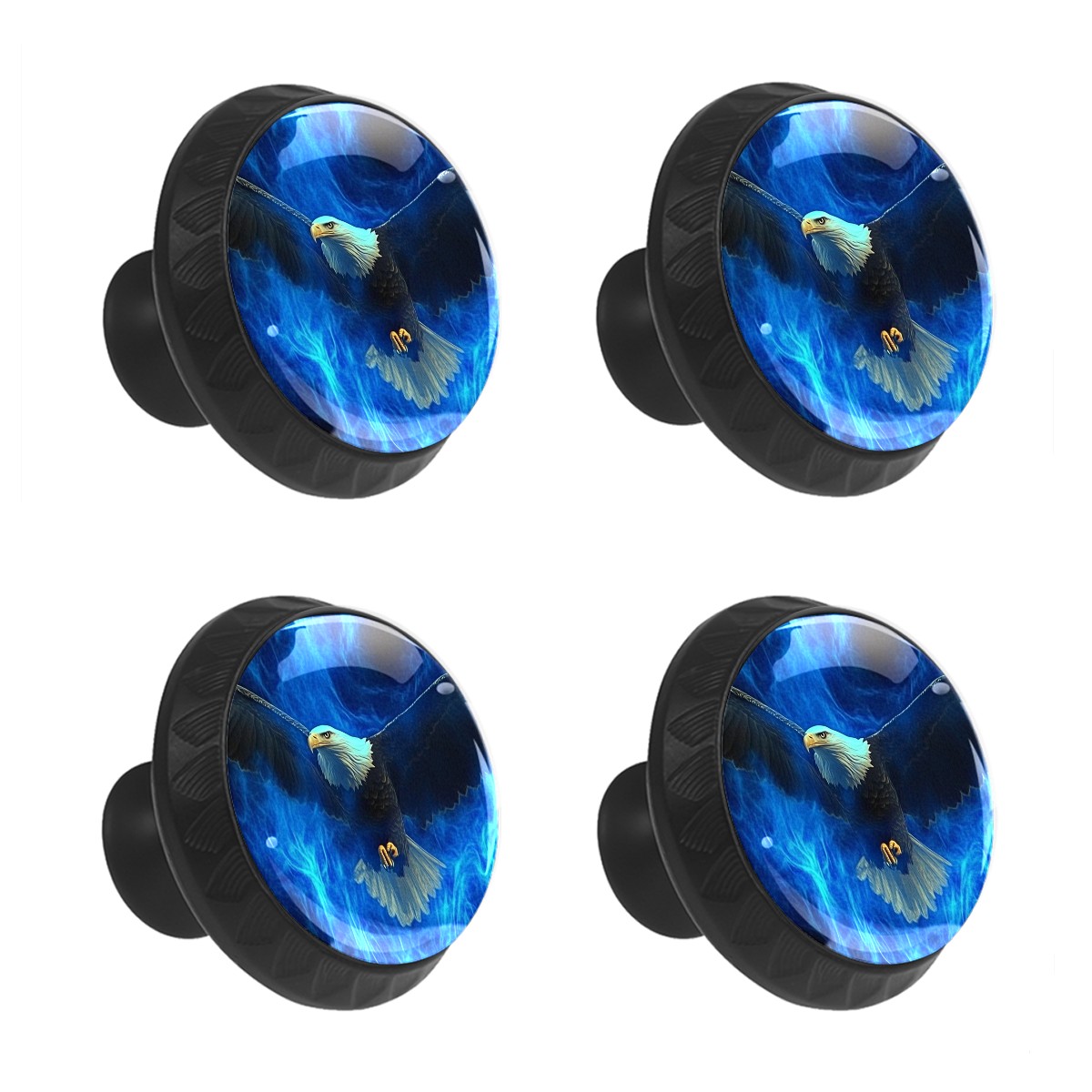 4 Pack Eagle Flying Blue Flames Cabinet Knobs Hardware Crystal Glass Drawer Pulls Knobs for Dresser Kitchen Bathroom Cabinets Drawers Black Furniture Cupboard Wardrobe Handles Round, 1-3/8''