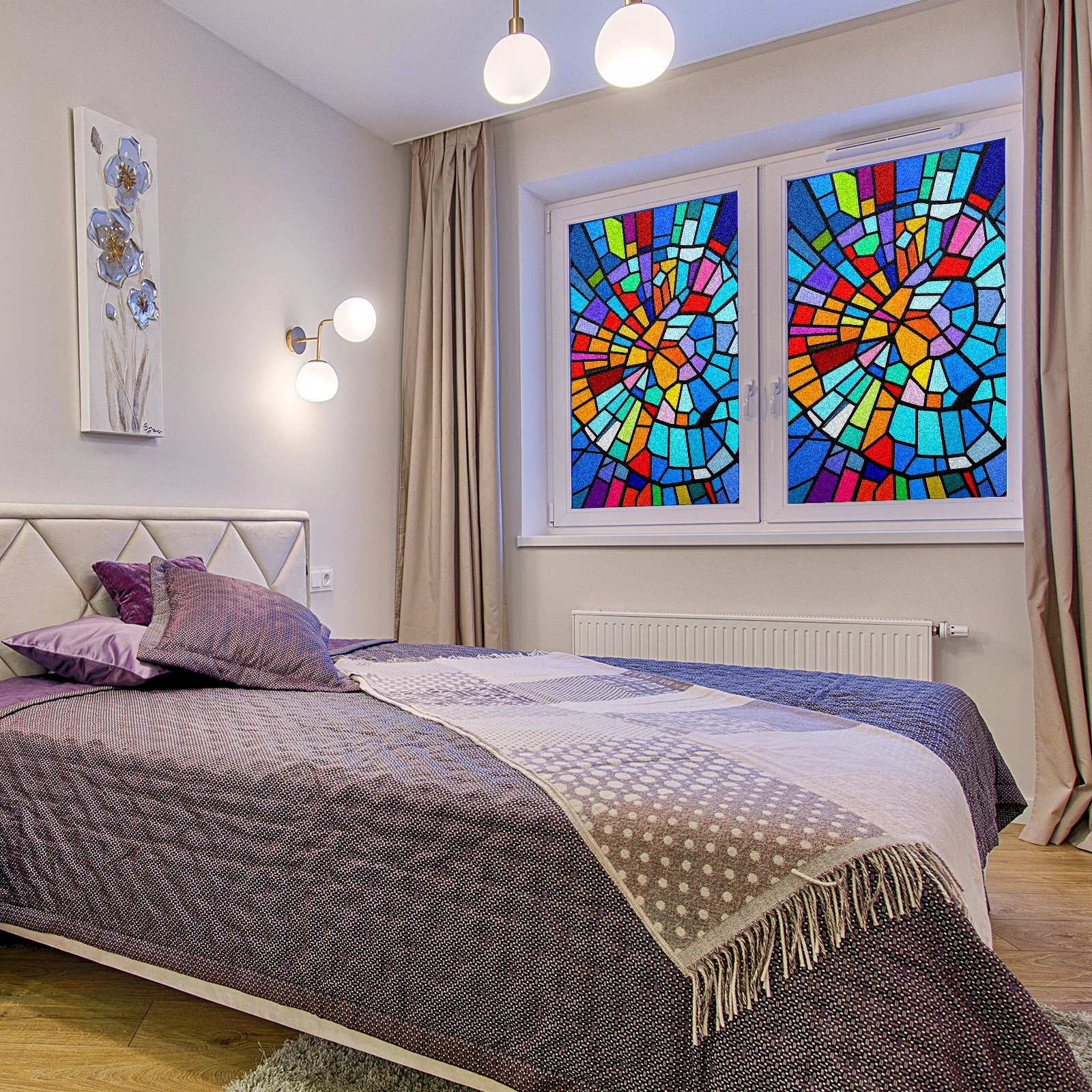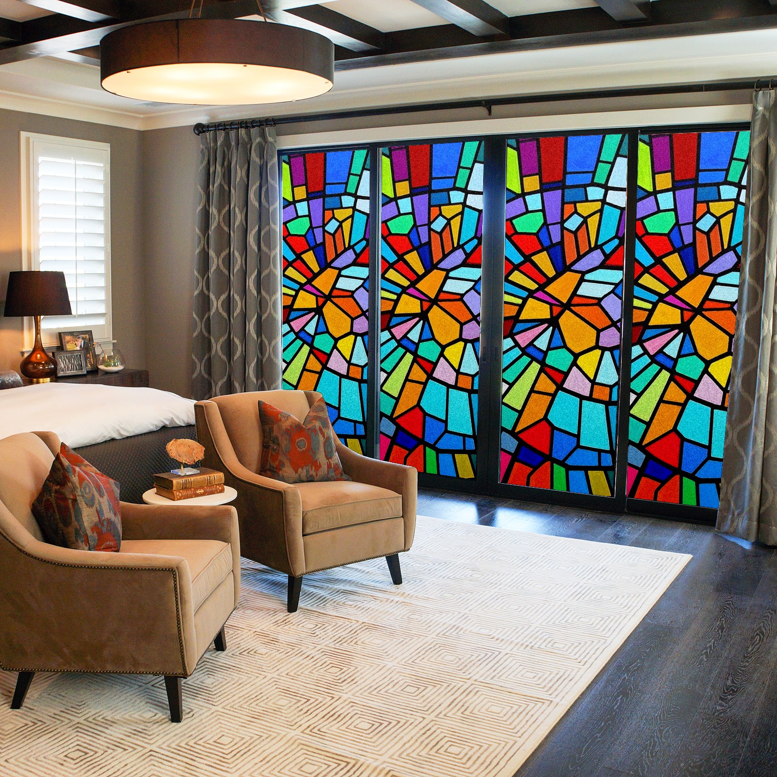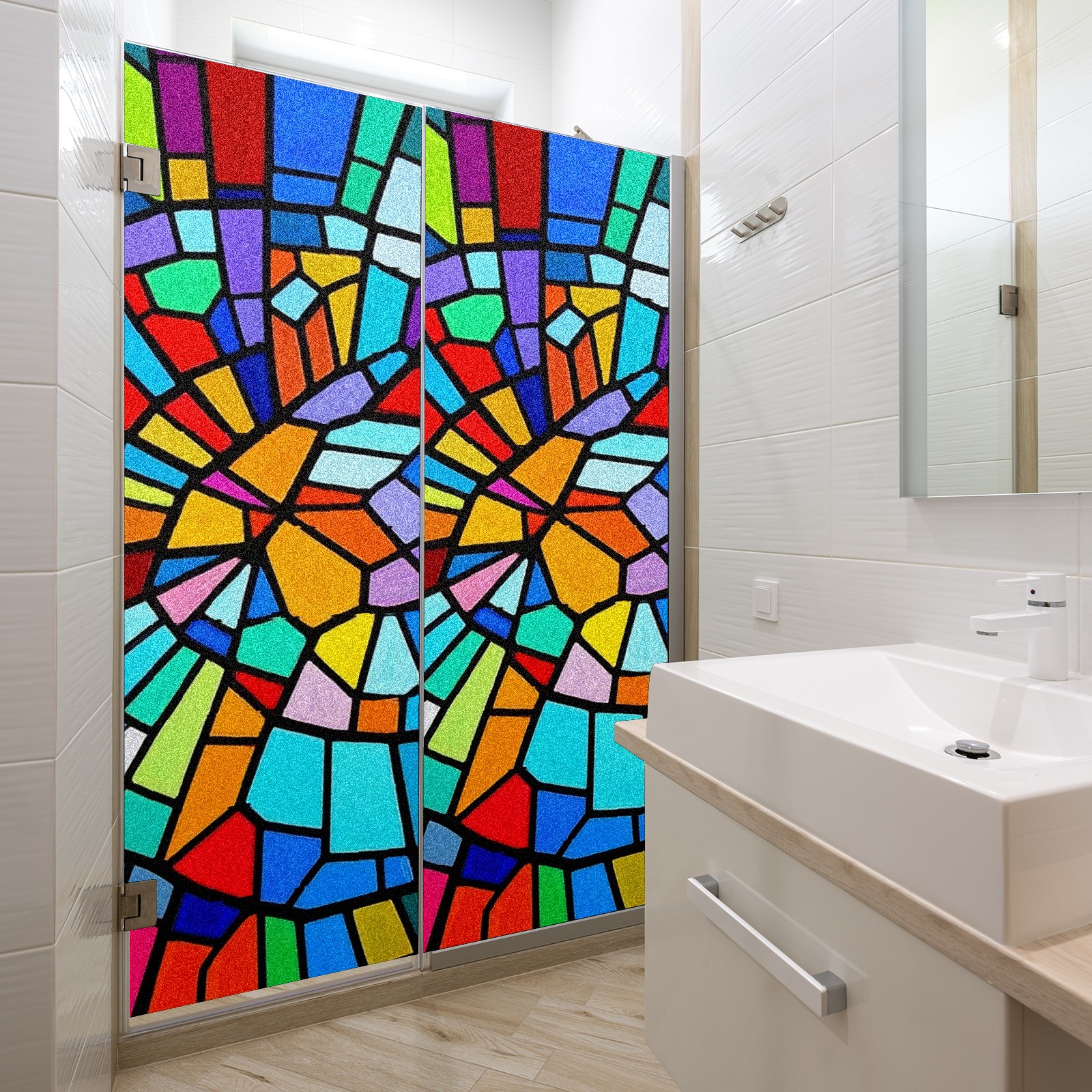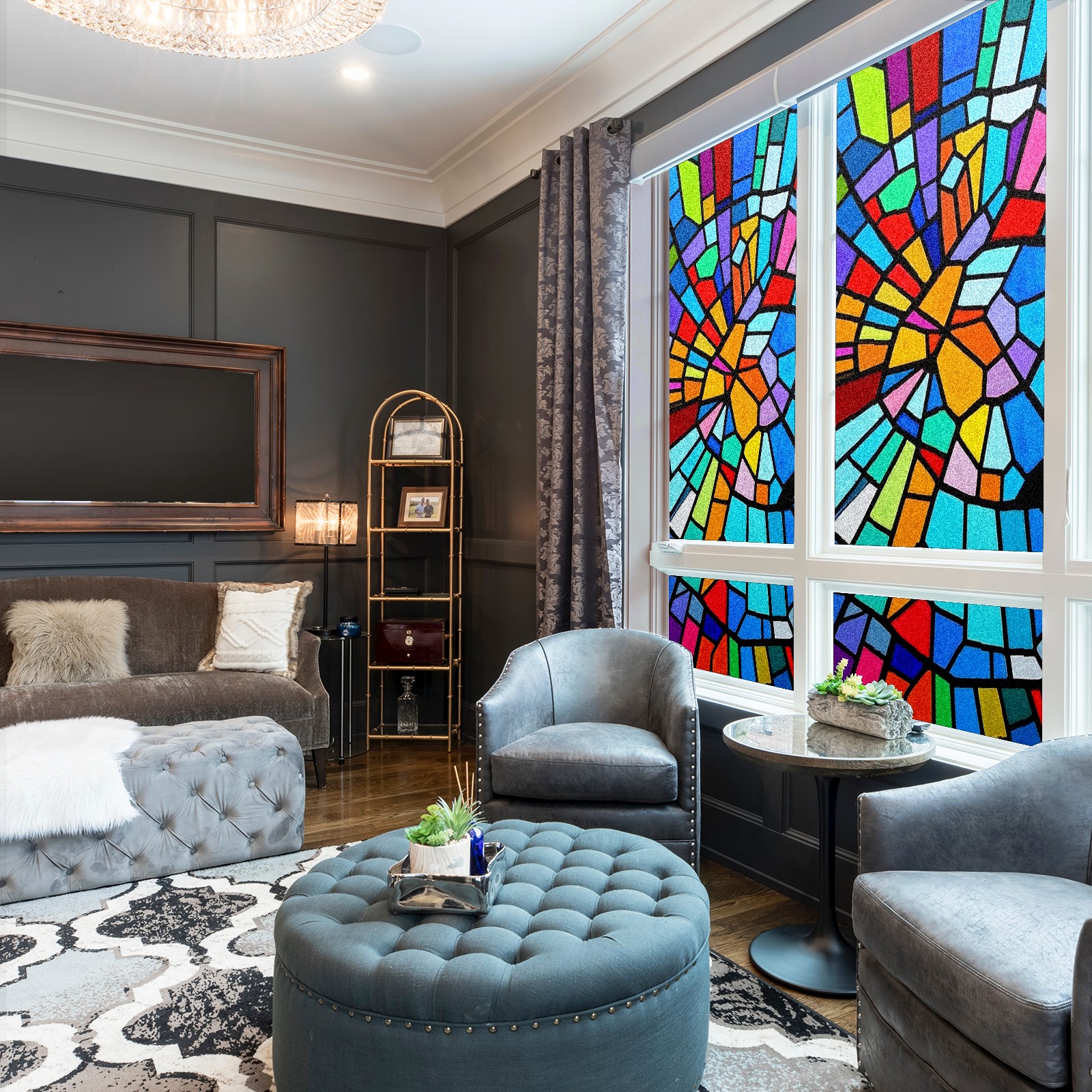 Window Privacy Film Frosted Stained Glass Film Decorative Static Cling for Bathroom Home Office Peel and Stick Window Film Stained Glass Rotundity(17.7x23.6in)
