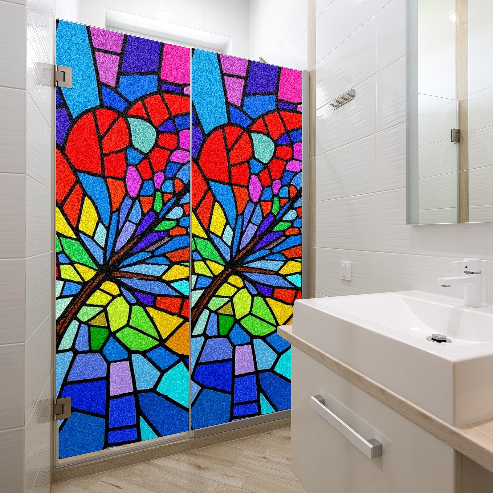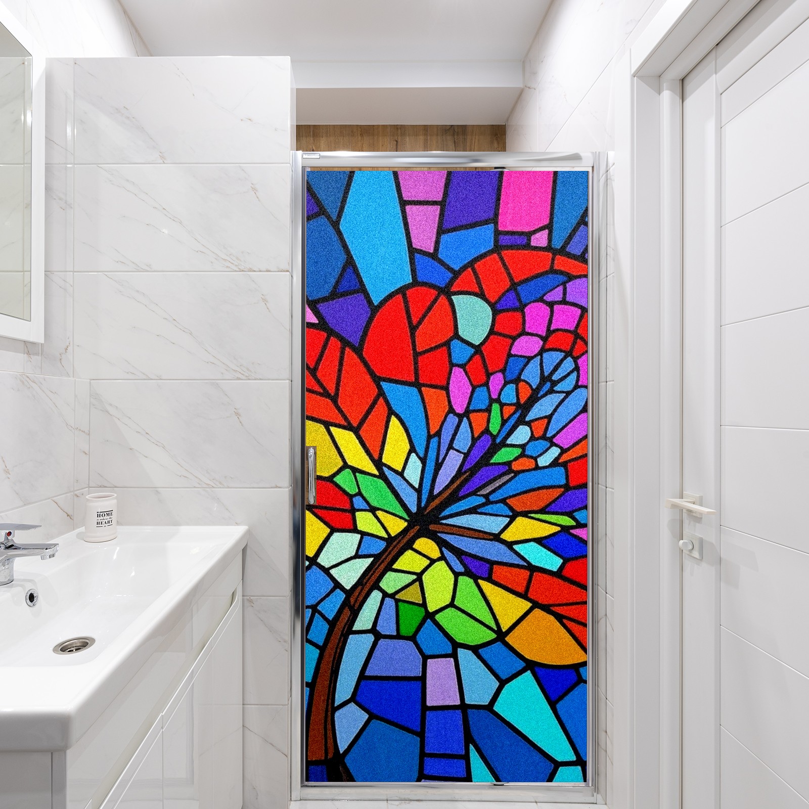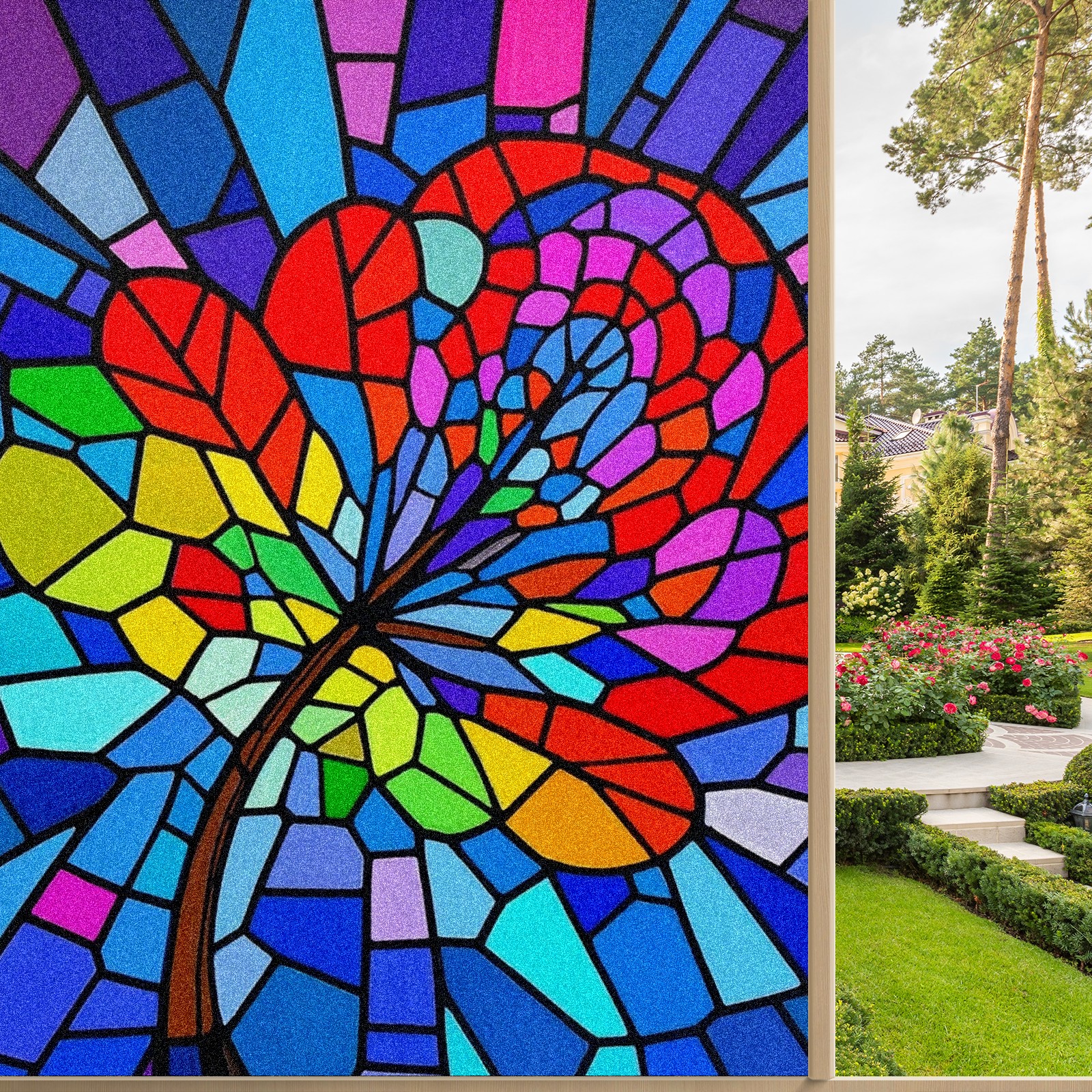 Window Privacy Film Frosted Stained Glass Film Decorative Static Cling for Bathroom Home Office Peel and Stick Window Film Stained Glass Artistic(17.7x23.6in)