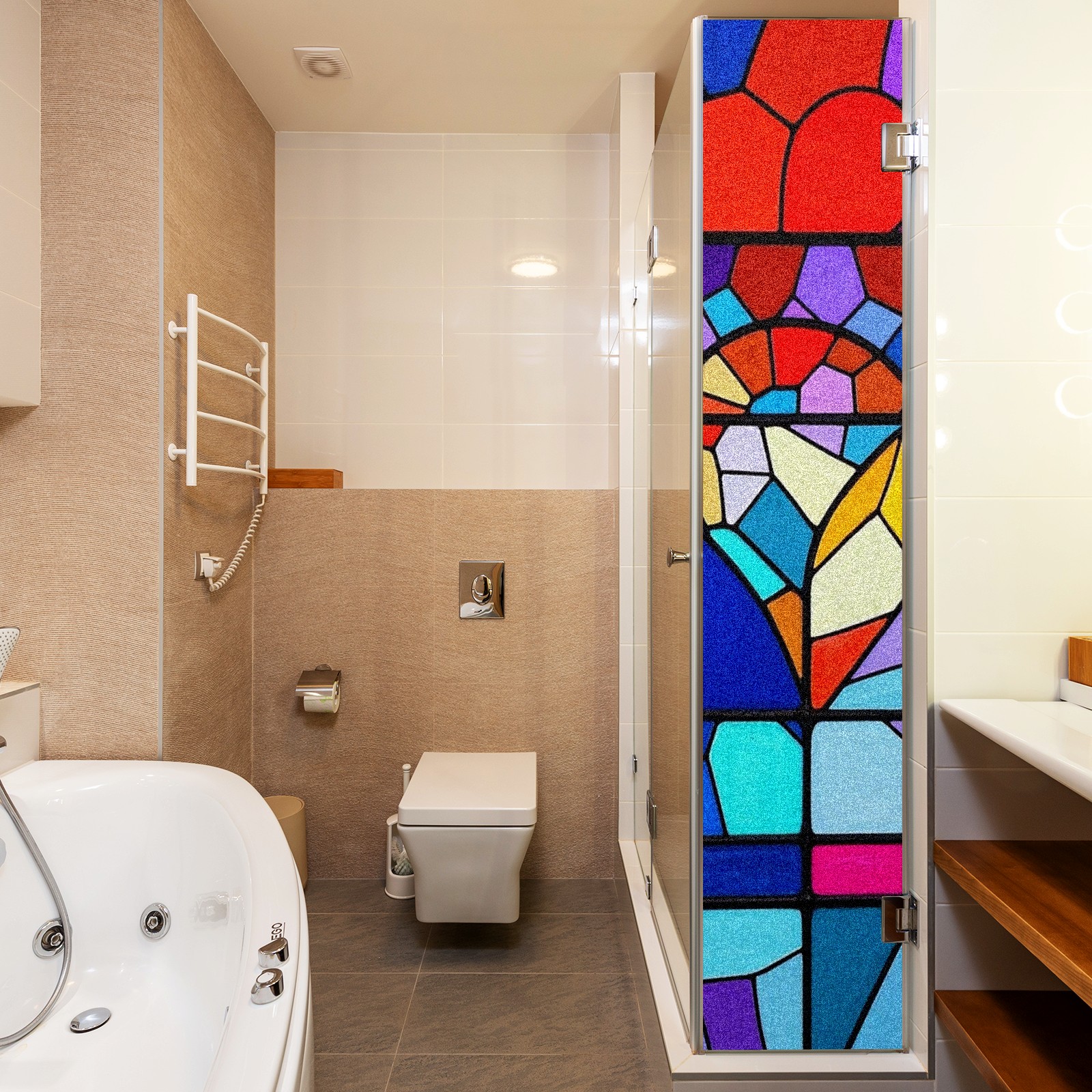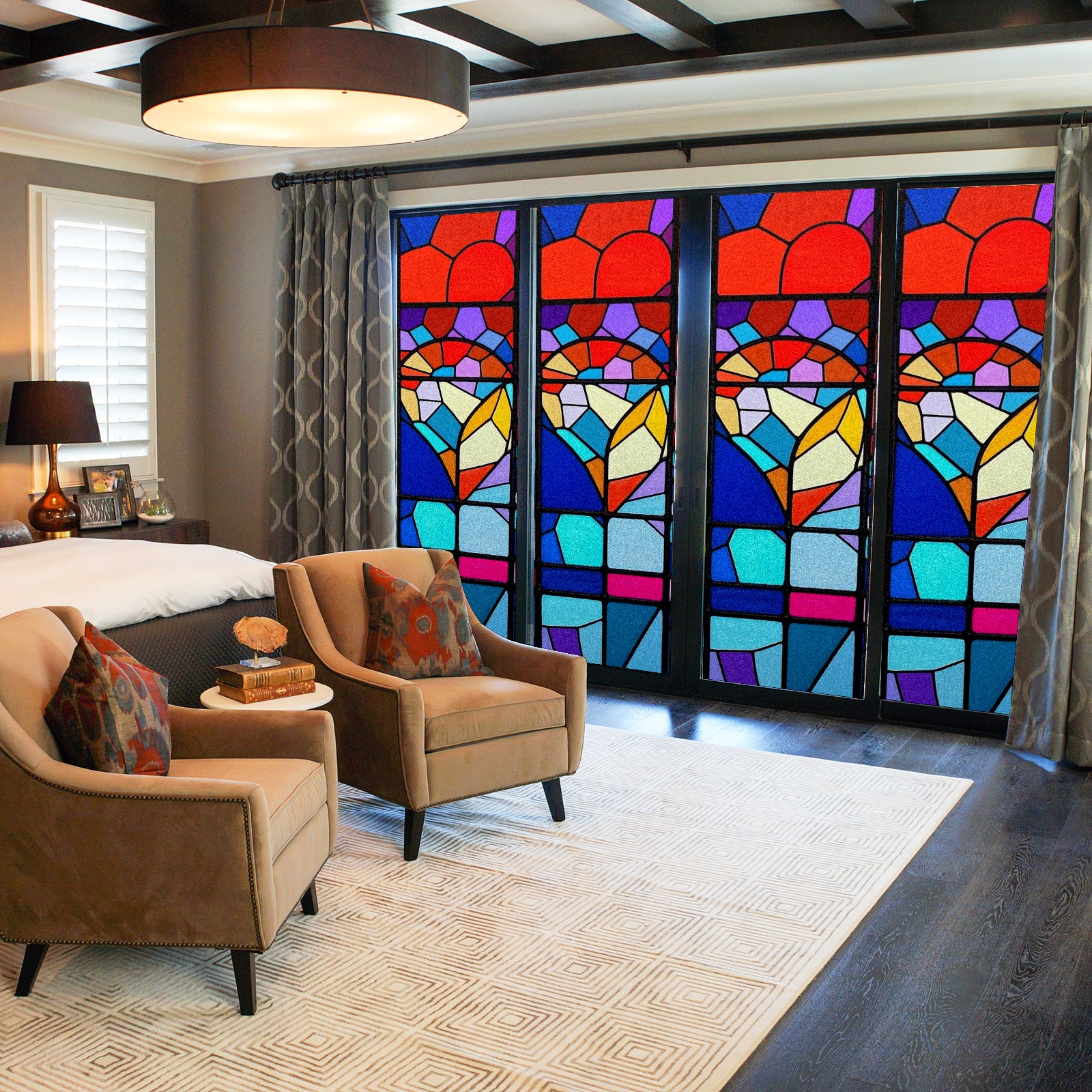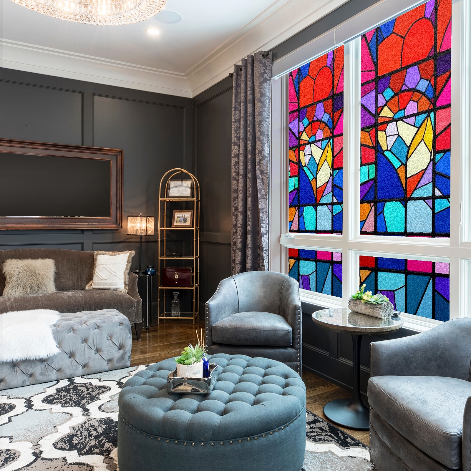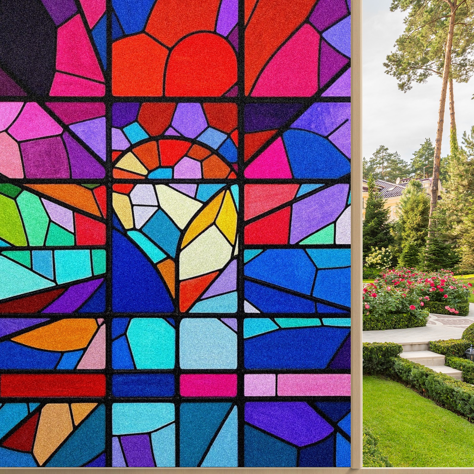 Window Privacy Film Frosted Stained Glass Film Decorative Static Cling for Bathroom Home Office Peel and Stick Window Film Geometry Stained Glass(17.7x23.6in)
