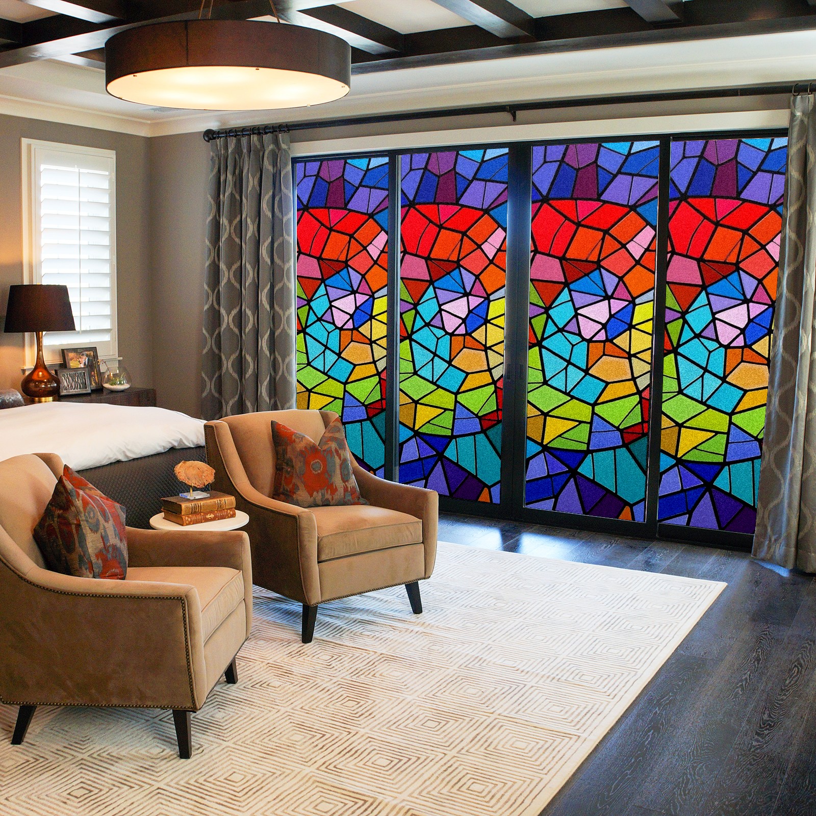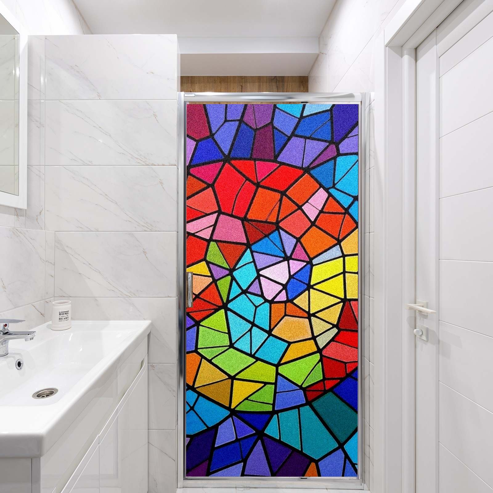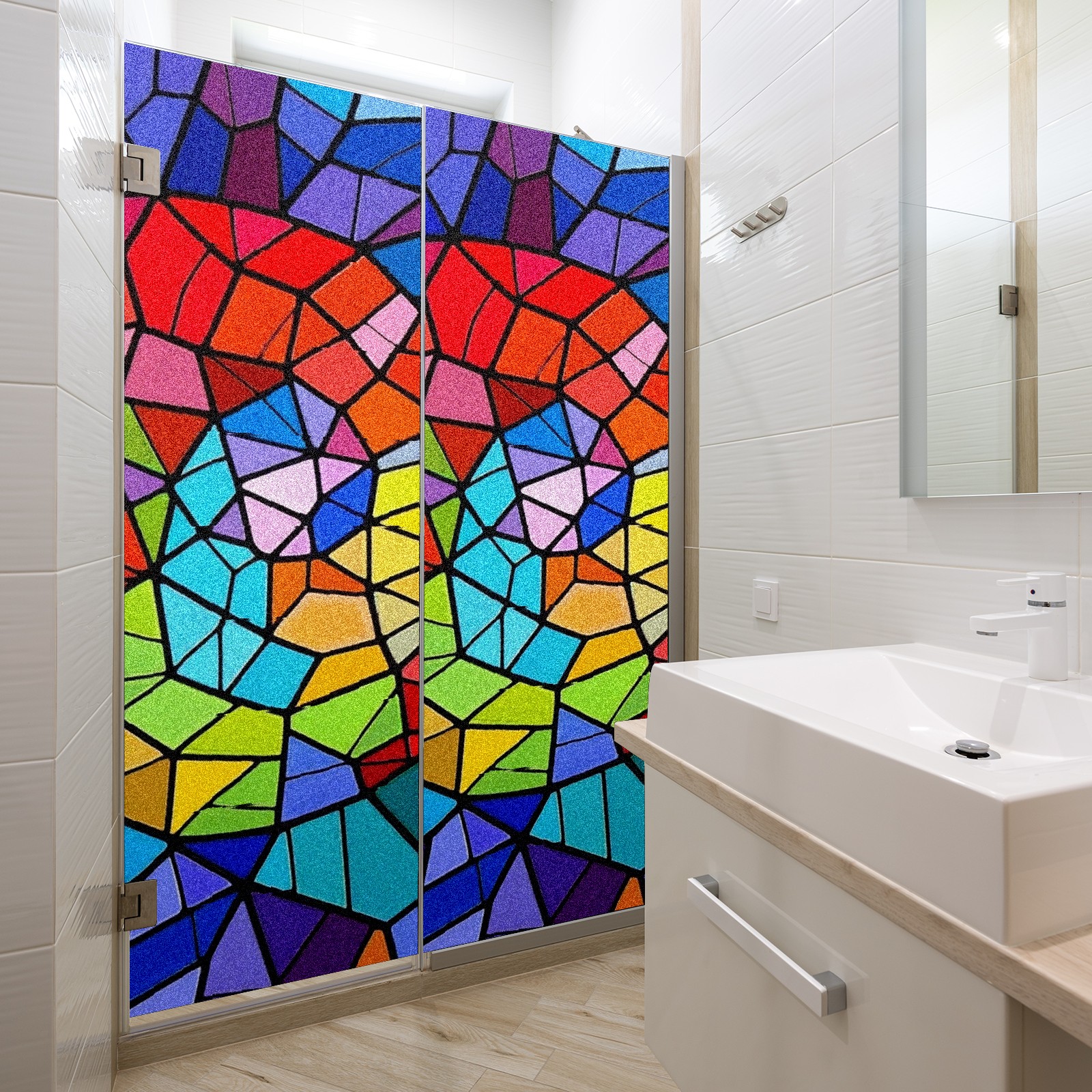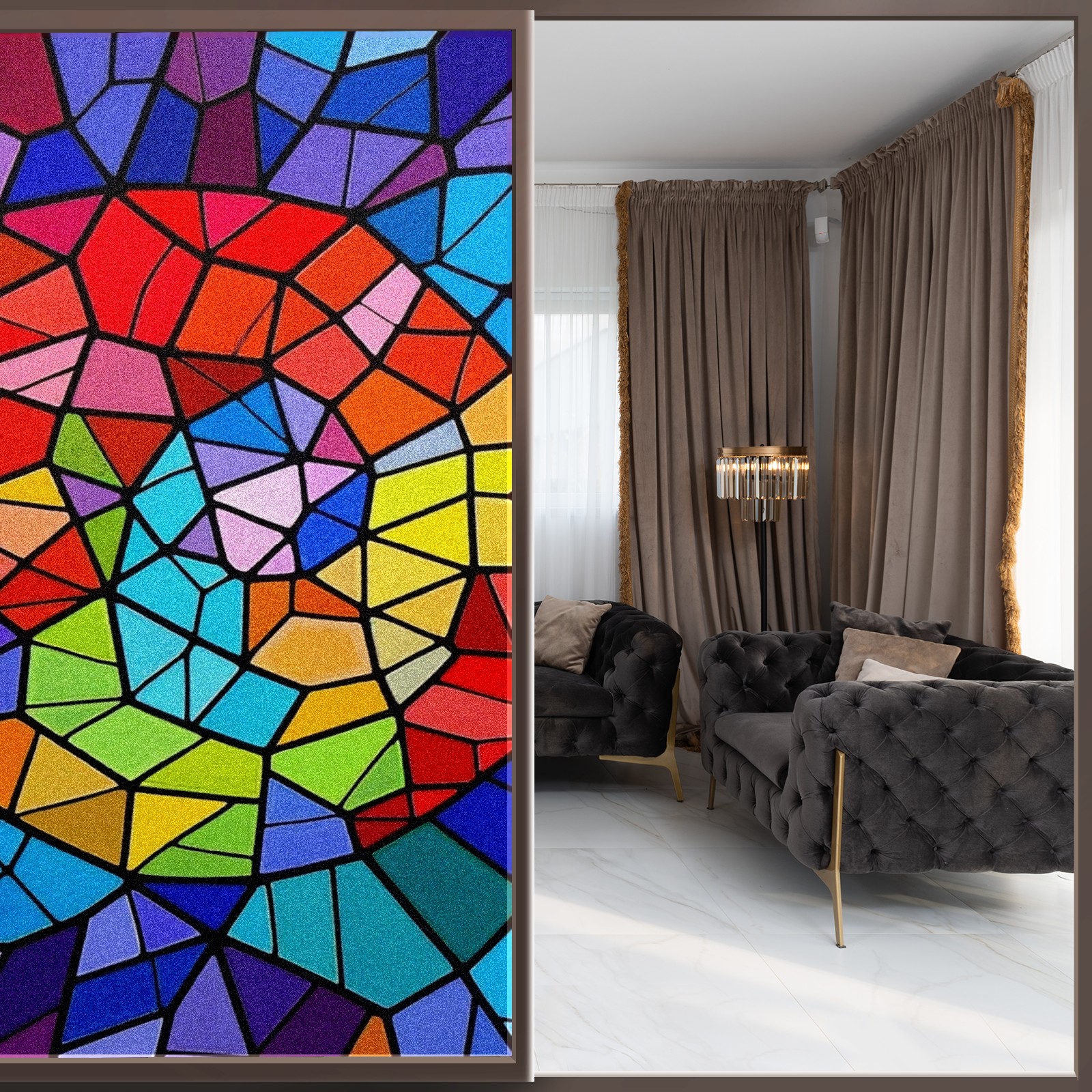 Window Privacy Film Frosted Stained Glass Film Decorative Static Cling for Bathroom Home Office Peel and Stick Window Film Abstract Color Segmentation(17.7x23.6in)