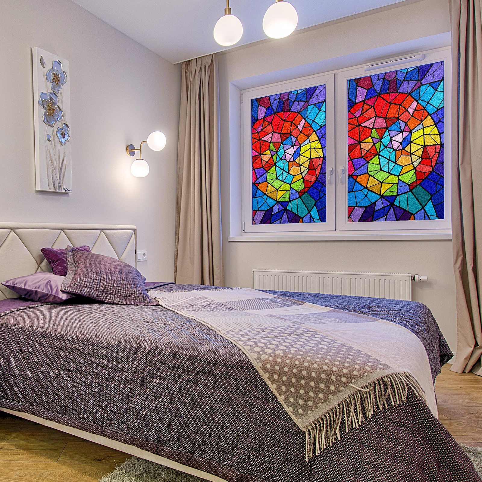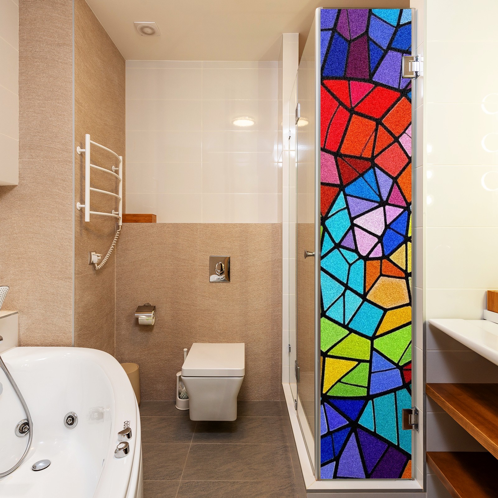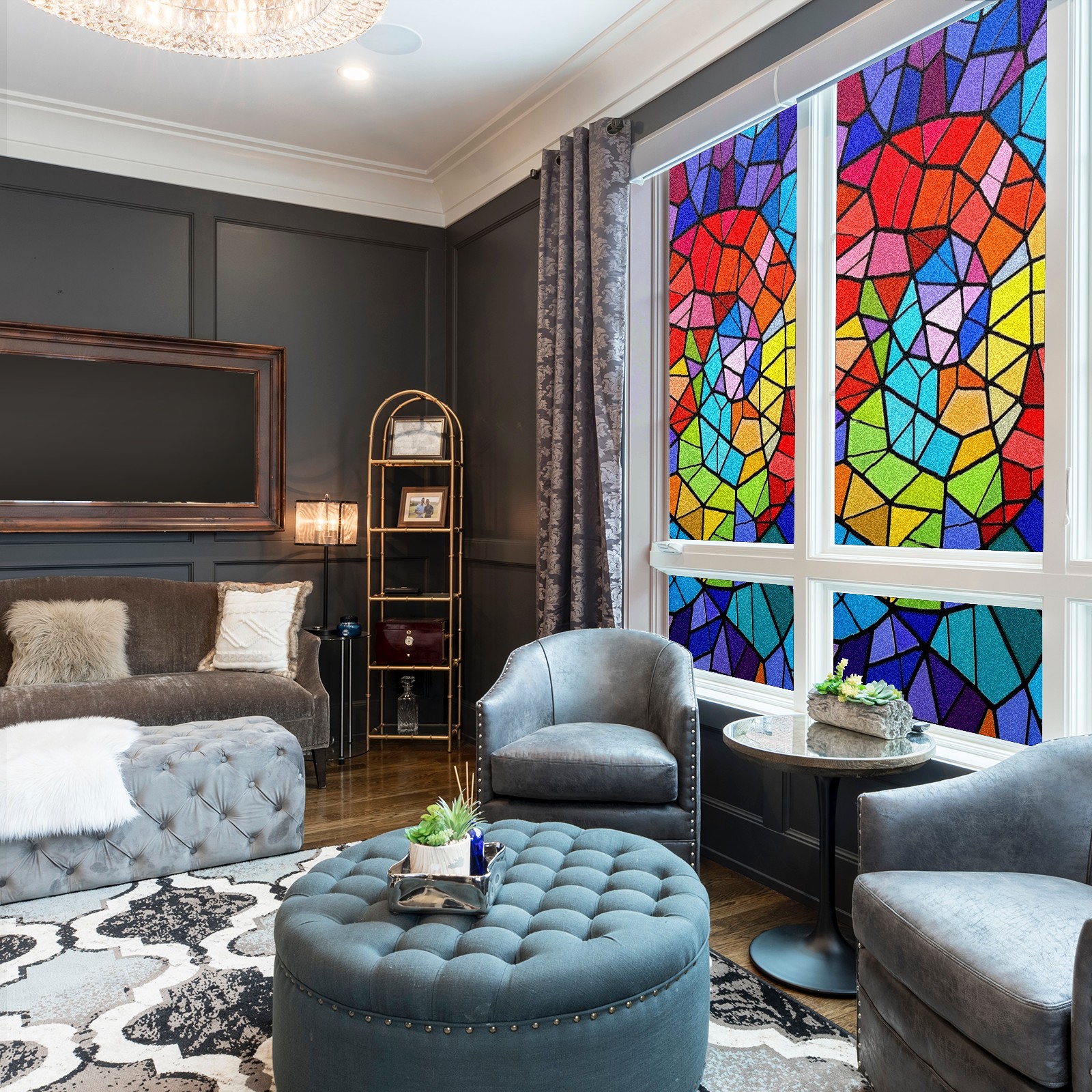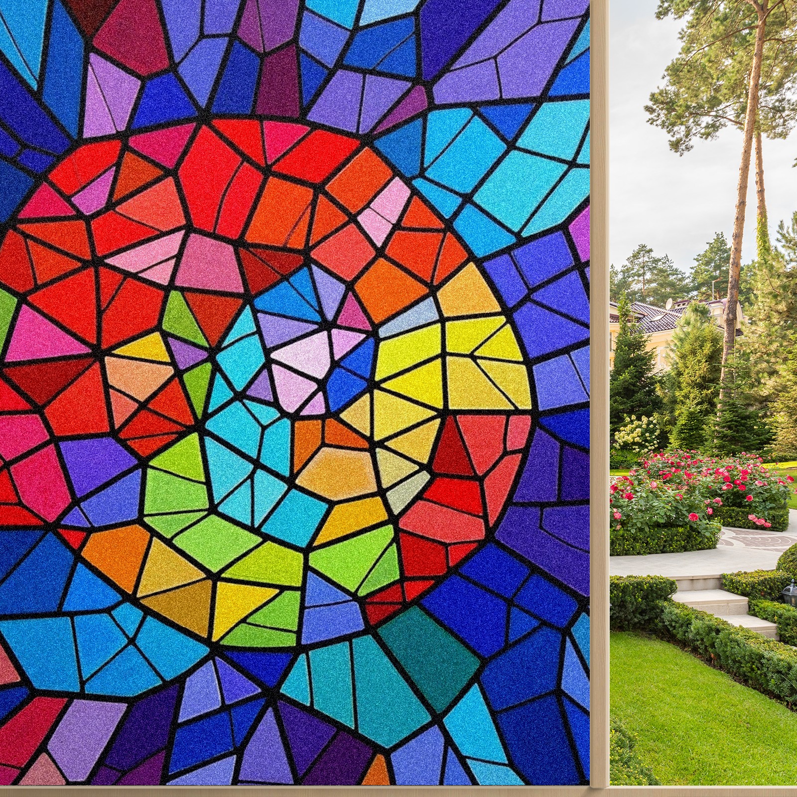 Window Privacy Film Frosted Stained Glass Film Decorative Static Cling for Bathroom Home Office Peel and Stick Window Film Abstract Color Segmentation(17.7x23.6in)