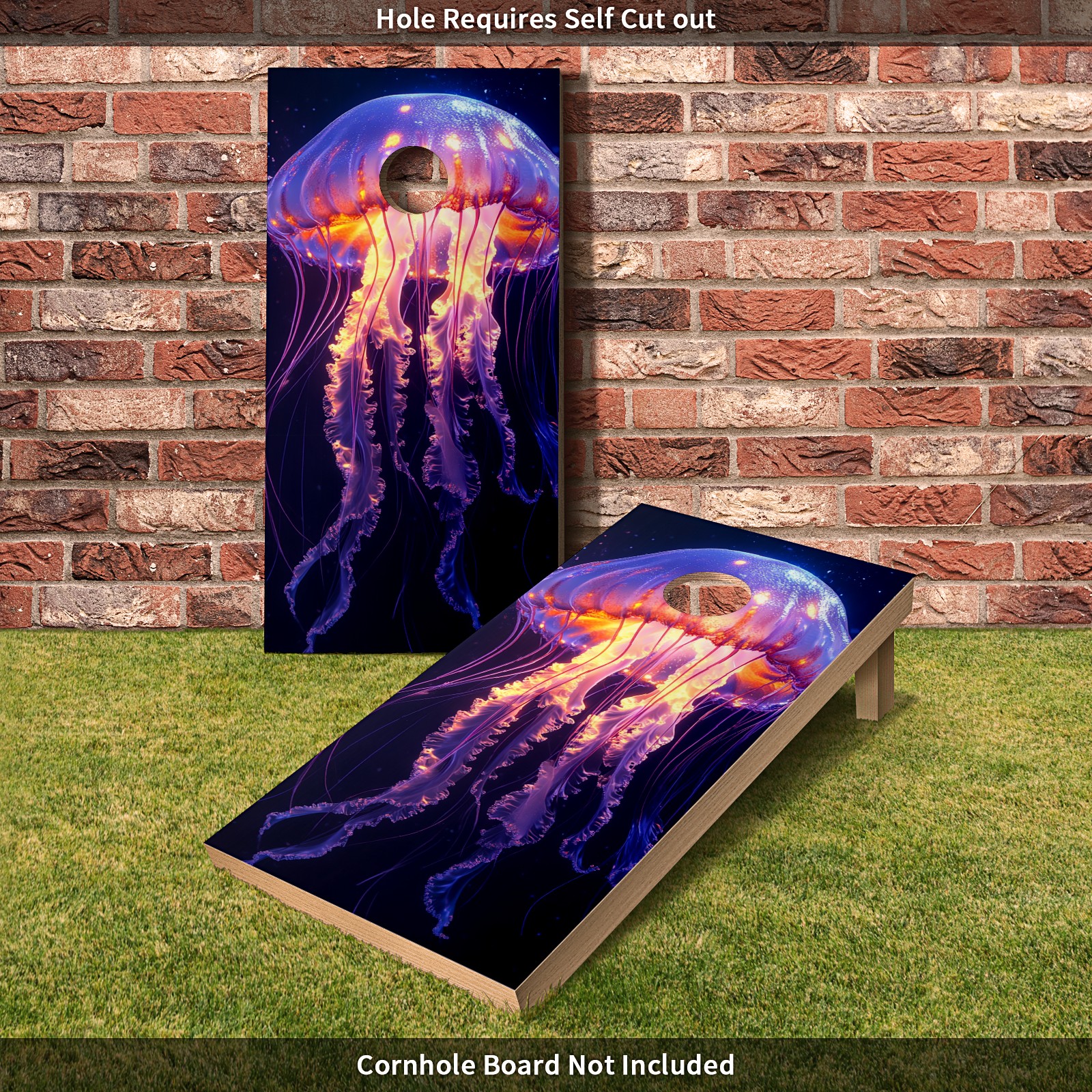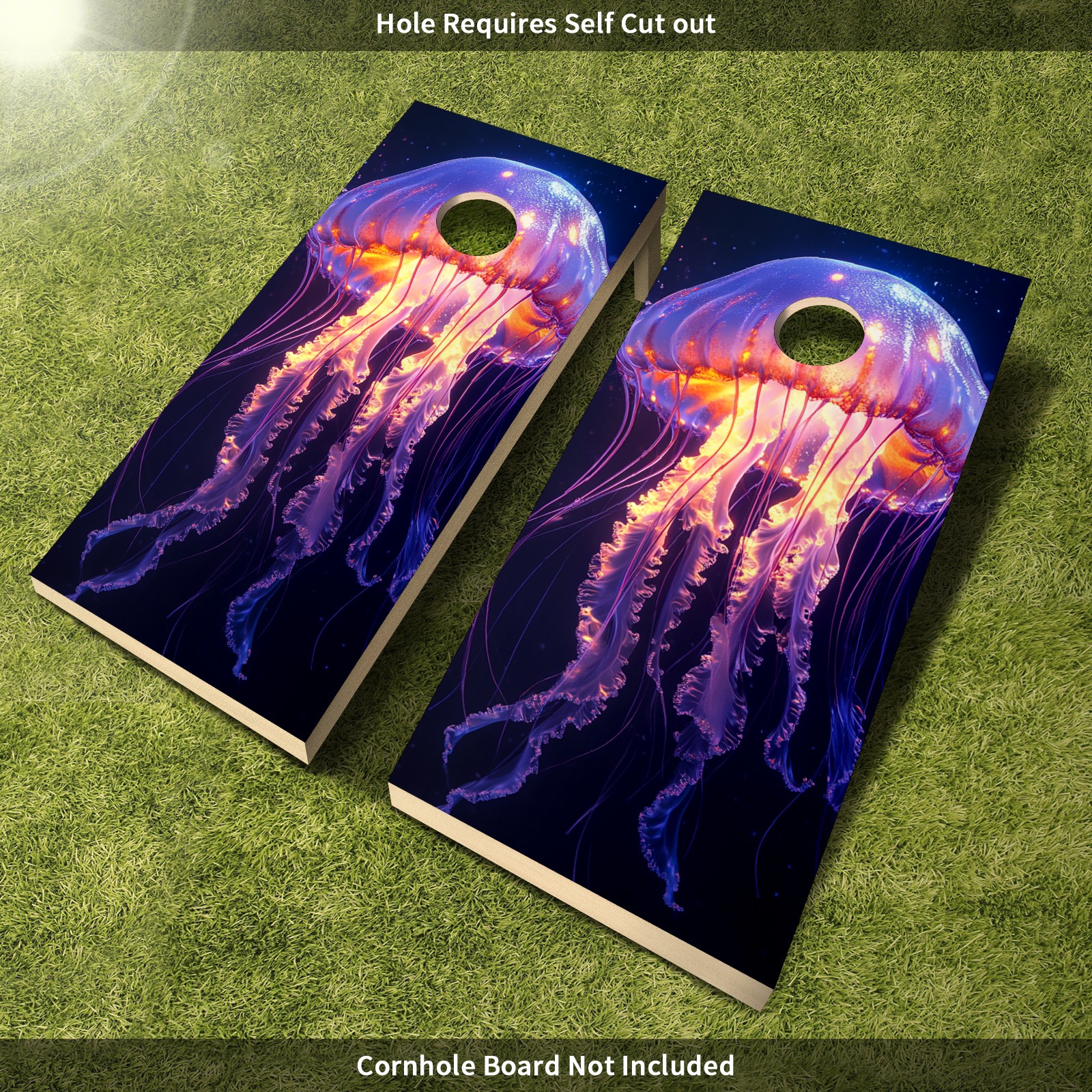 Cornhole Board Wraps Decals 2'x4' Jellyfish Purple Outdoor Bean Bag Toss Game Graphic Wraps Vinyl Skin Stickers For Cornhole Boards