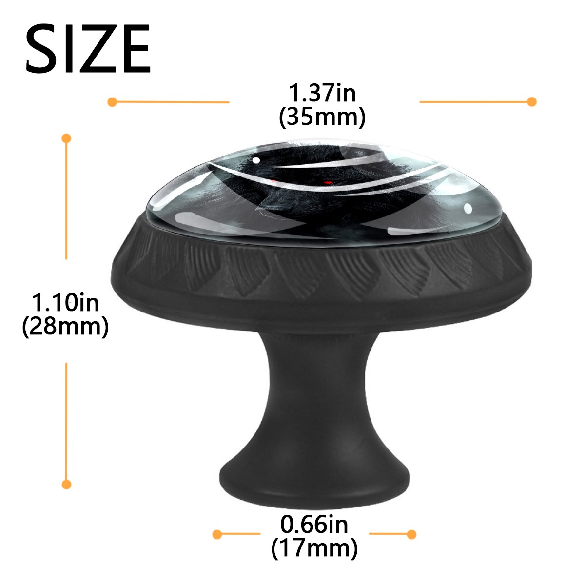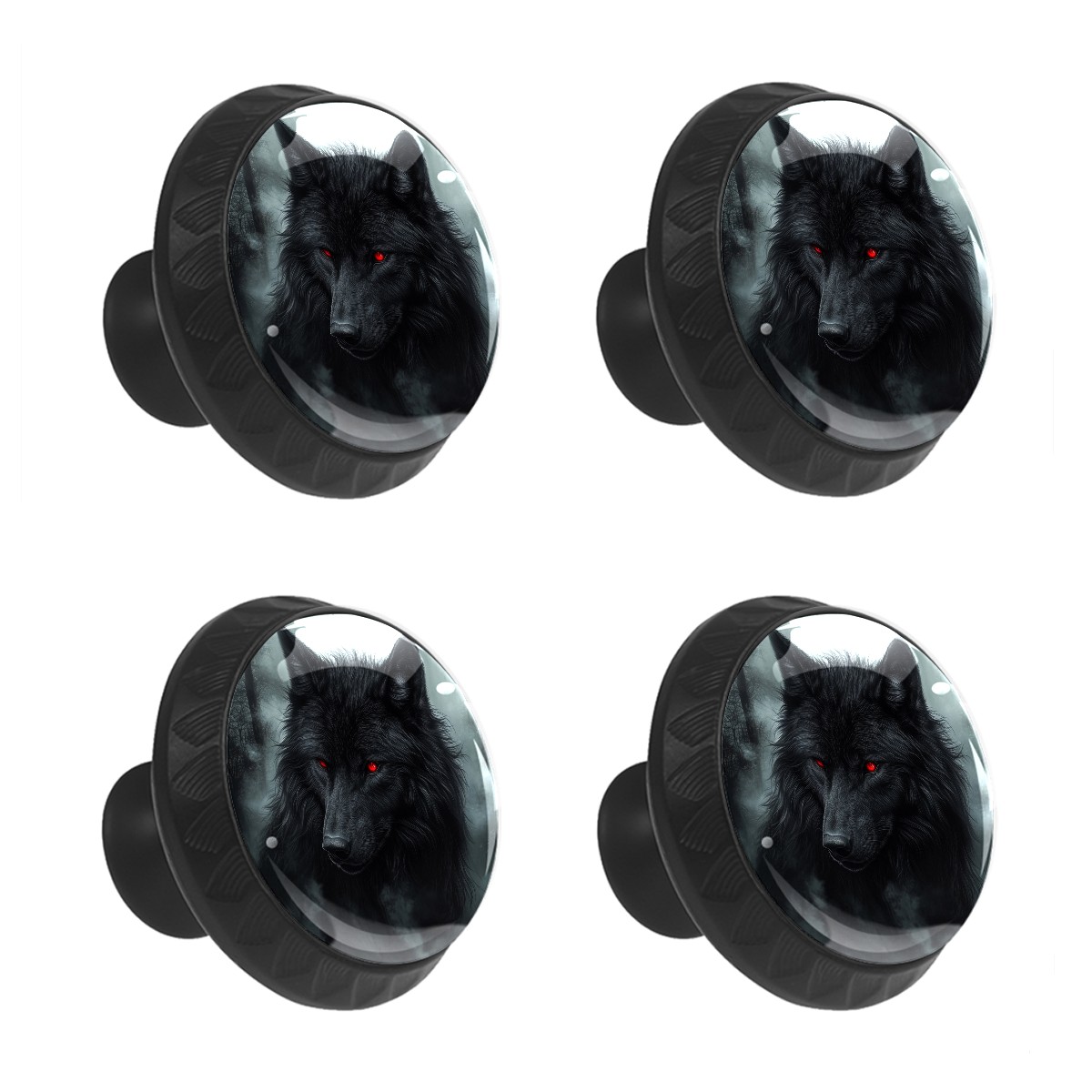 4 Pack Black Wolf (1) Cabinet Knobs Hardware Crystal Glass Drawer Pulls Knobs for Dresser Kitchen Bathroom Cabinets Drawers Black Furniture Cupboard Wardrobe Handles Round, 1-3/8''