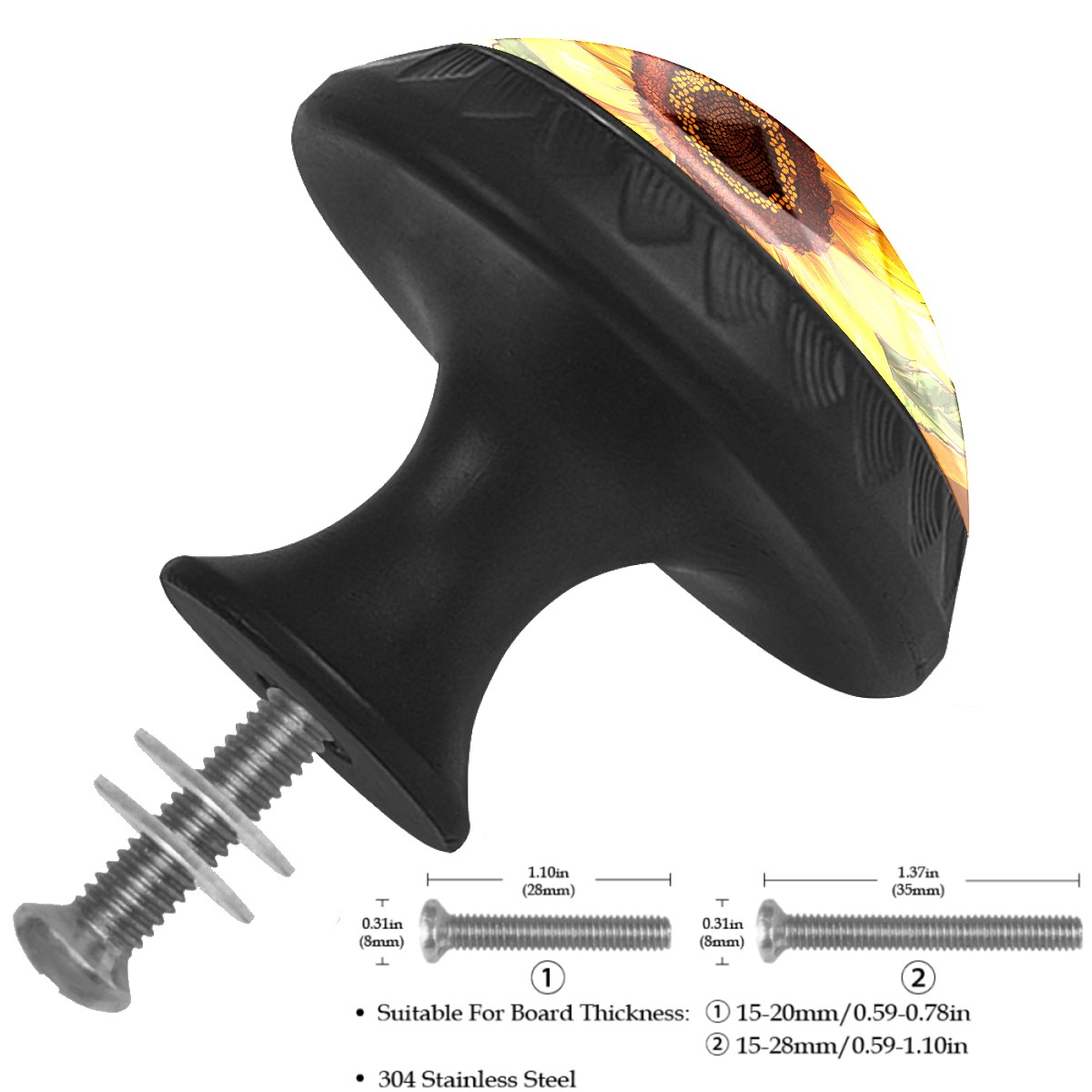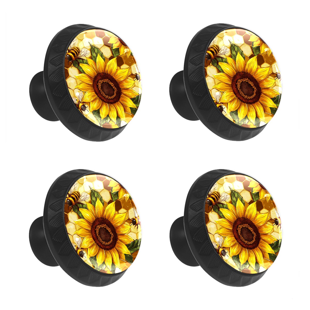 4 Pack Sunflower Yellow Bee Cabinet Knobs Hardware Crystal Glass Drawer Pulls Knobs for Dresser Kitchen Bathroom Cabinets Drawers Black Furniture Cupboard Wardrobe Handles Round, 1-3/8''
