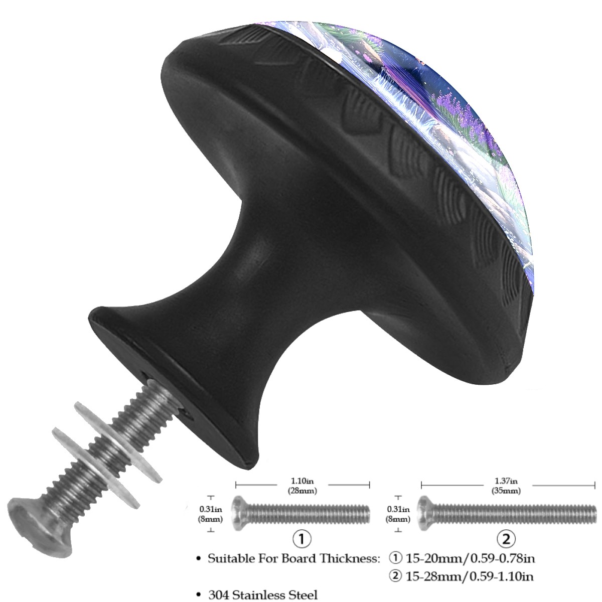 <p><b>Package Includes:</b></p> <p>Drawer Knobs x 4</p> <p>1.10 Inches Mounting Screws x 4</p> <p>1.37 Inches Mounting Screws x 4</p> <p><br></p> <p></p> <p>Crystal Glass Diameter: 1.37 inches (35mm)</p> <p>Knob Height: 1.10 inches (28mm)</p> <p>Base Diameter: 0.66 inches (17mm)</p> <p><b>Practical and Aesthetic:</b></p> <p>The knobs for kitchen cabinets and drawers combine the durability of an ABS base with the high transparency of glass, enhanced by unique patterns that add decoration and cuteness. It’s both practical and visually appealing.</p> <p><b>Pattern Design:</b></p> <p>Clear patterns add decoration and personalization. Cabinet knobs and pulls enhance visual appeal and can match different home styles, meeting diverse design needs.</p> <p><b>Easy Installation:</b></p> <p>Equipped with mounting screws, the ABS base can be securely attached to the drawer with ease.</p> <p><b>Easy Cleaning:</b></p> <p>The smooth surface of the round glass drawer knobs resists dust and stains, making it easy to clean with just a damp cloth.</p> <p><b>Wear-Resistant:</b></p> <p>The bathroom cabinet knobs are designed to resist scratches and fading, maintaining their good appearance over long-term use.</p>