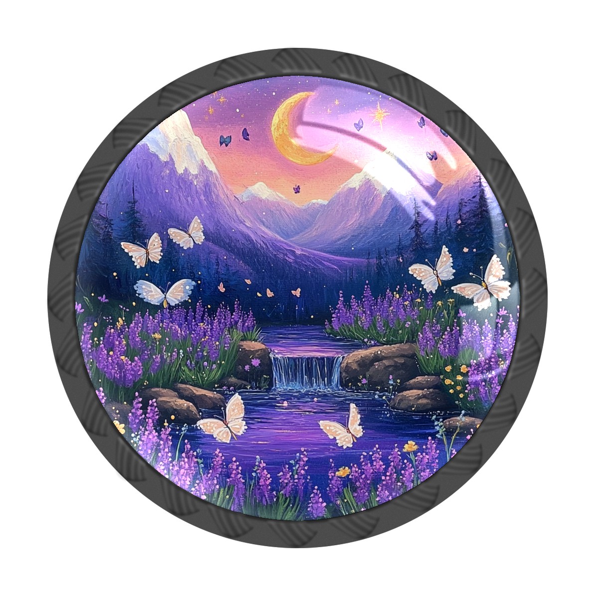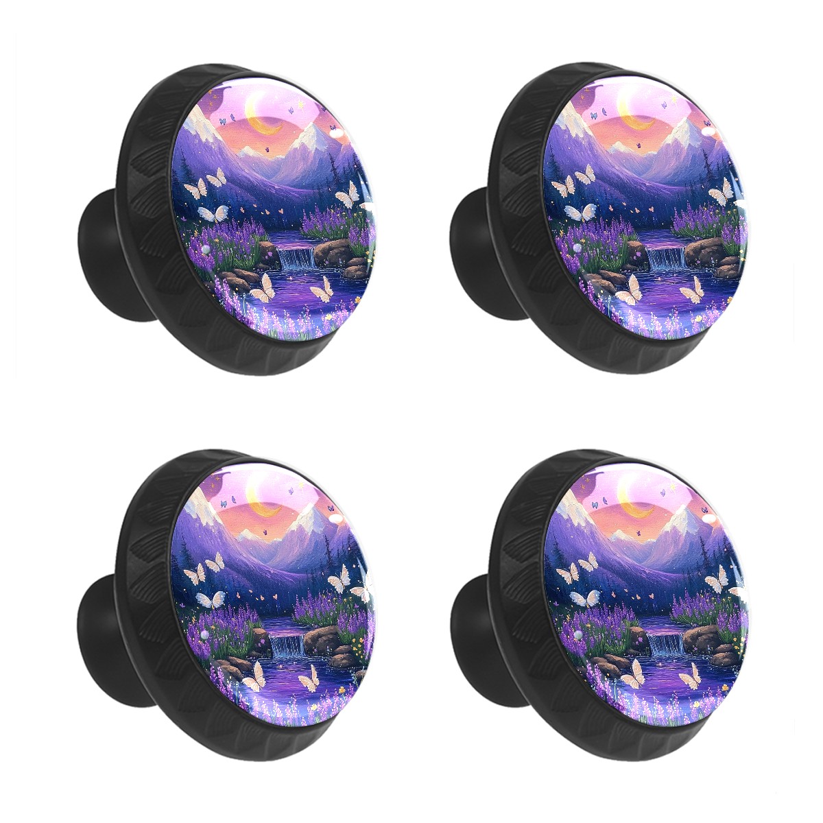 4 Pack Purple Mountain Cabinet Knobs Hardware Crystal Glass Drawer Pulls Knobs for Dresser Kitchen Bathroom Cabinets Drawers Black Furniture Cupboard Wardrobe Handles Round, 1-3/8''