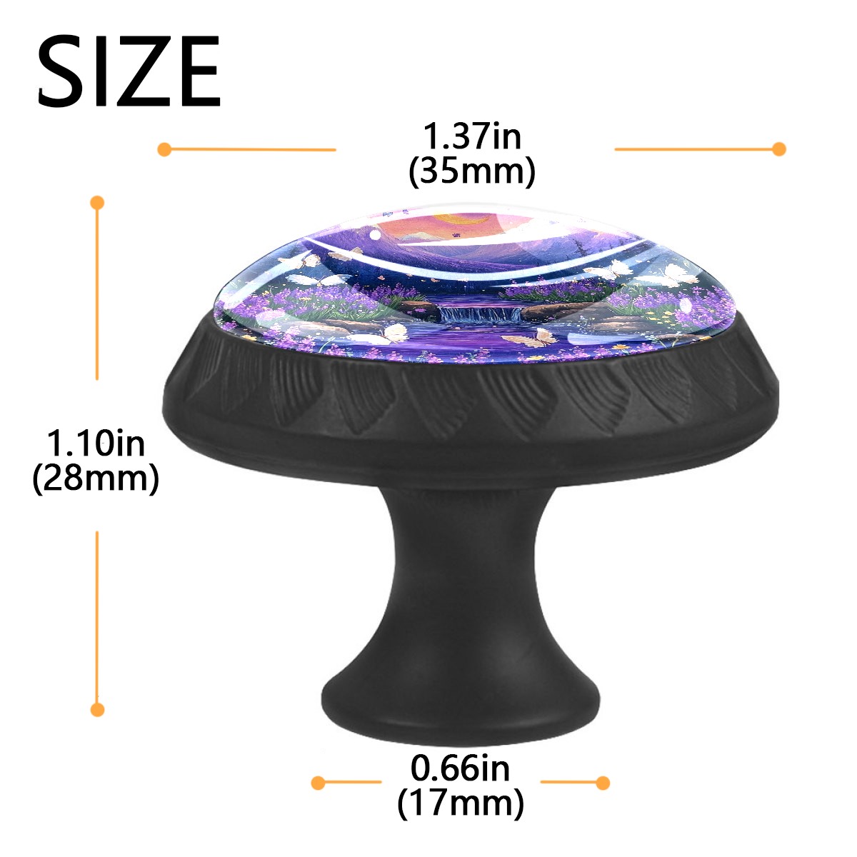 • <p><b>Package Includes:</b></p> <p>Drawer Knobs x 4</p> <p>1.10 Inches Mounting Screws x 4</p> <p>1.37 Inches Mounting Screws x 4</p> <p><br></p> <p></p> <p>Crystal Glass Diameter: 1.37 inches (35mm)</p> <p>Knob Height: 1.10 inches (28mm)</p> <p>Base Diameter: 0.66 inches (17mm)</p> <p><b>Practical and Aesthetic:</b></p> <p>The knobs for kitchen cabinets and drawers combine the durability of an ABS base with the high transparency of glass, enhanced by unique patterns that add decoration and cuteness. It’s both practical and visually appealing.</p> <p><b>Pattern Design:</b></p> <p>Clear patterns add decoration and personalization. Cabinet knobs and pulls enhance visual appeal and can match different home styles, meeting diverse design needs.</p> <p><b>Easy Installation:</b></p> <p>Equipped with mounting screws, the ABS base can be securely attached to the drawer with ease.</p> <p><b>Easy Cleaning:</b></p> <p>The smooth surface of the round glass drawer knobs resists dust and stains, making it easy to clean with just a damp cloth.</p> <p><b>Wear-Resistant:</b></p> <p>The bathroom cabinet knobs are designed to resist scratches and fading, maintaining their good appearance over long-term use.</p>
