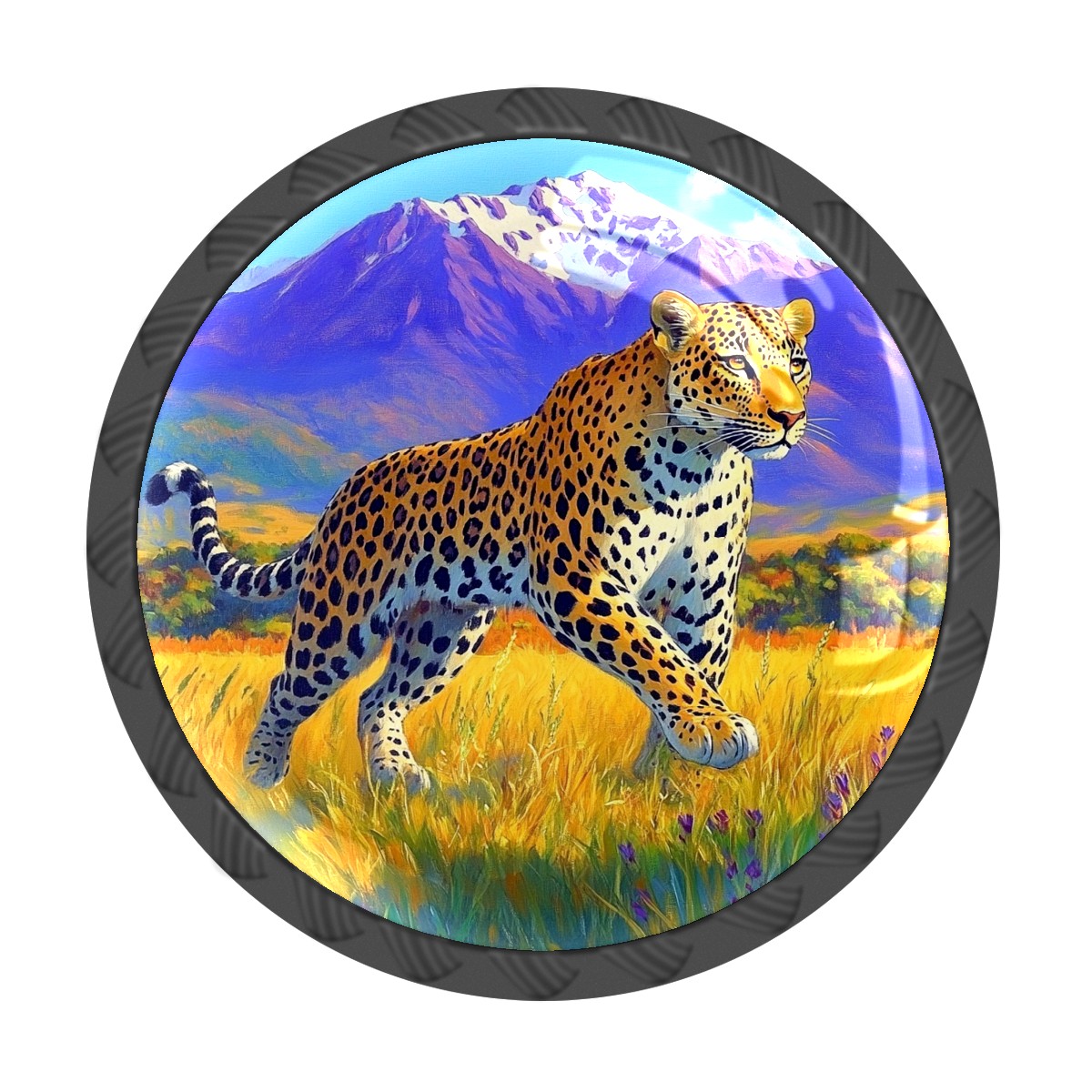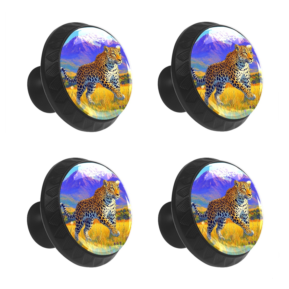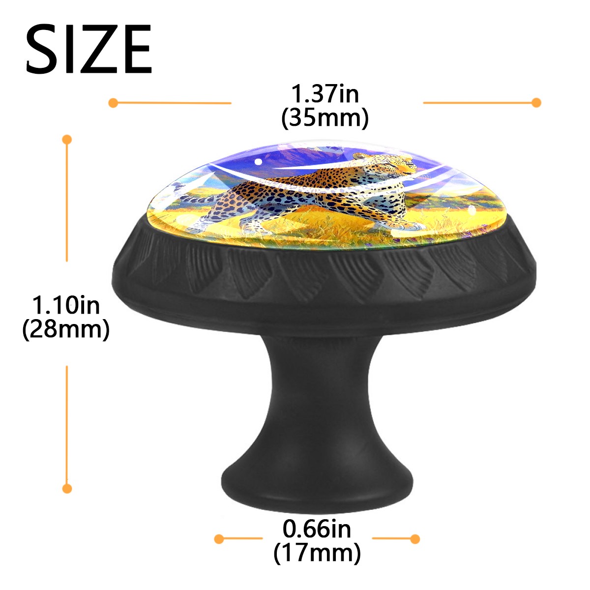 4 Pack Leopard Mountain Purple Cabinet Knobs Hardware Crystal Glass Drawer Pulls Knobs for Dresser Kitchen Bathroom Cabinets Drawers Black Furniture Cupboard Wardrobe Handles Round, 1-3/8''