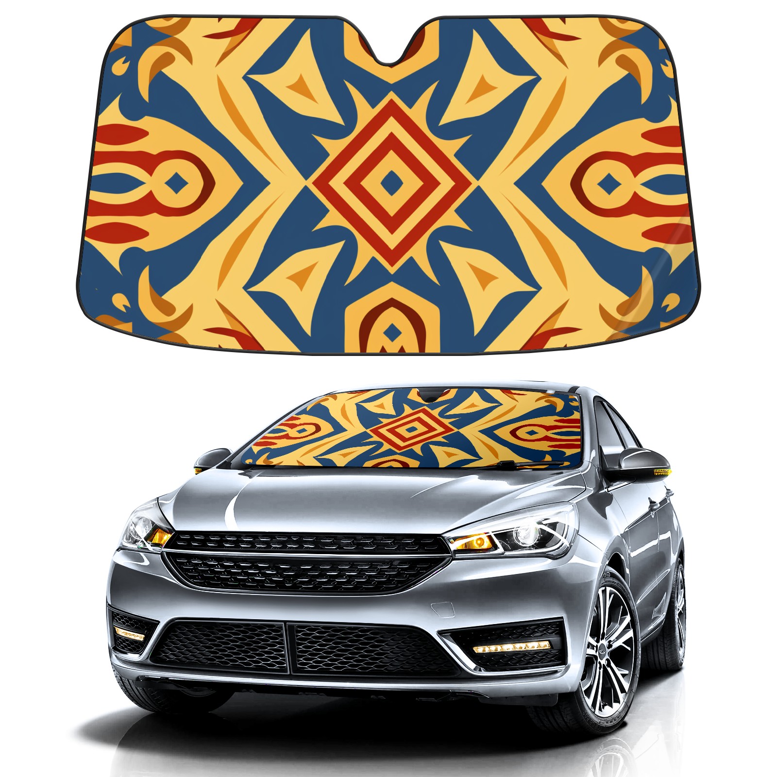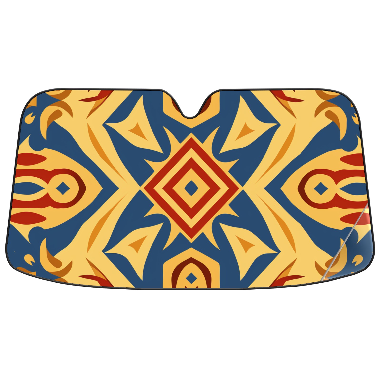 Blue And Red Geometry Car Sun Shade UV Protection Foldable Sunshade for Windshield Heat Insulation Portable Sun Shield for Car Interior Protection Automotive Window Protector