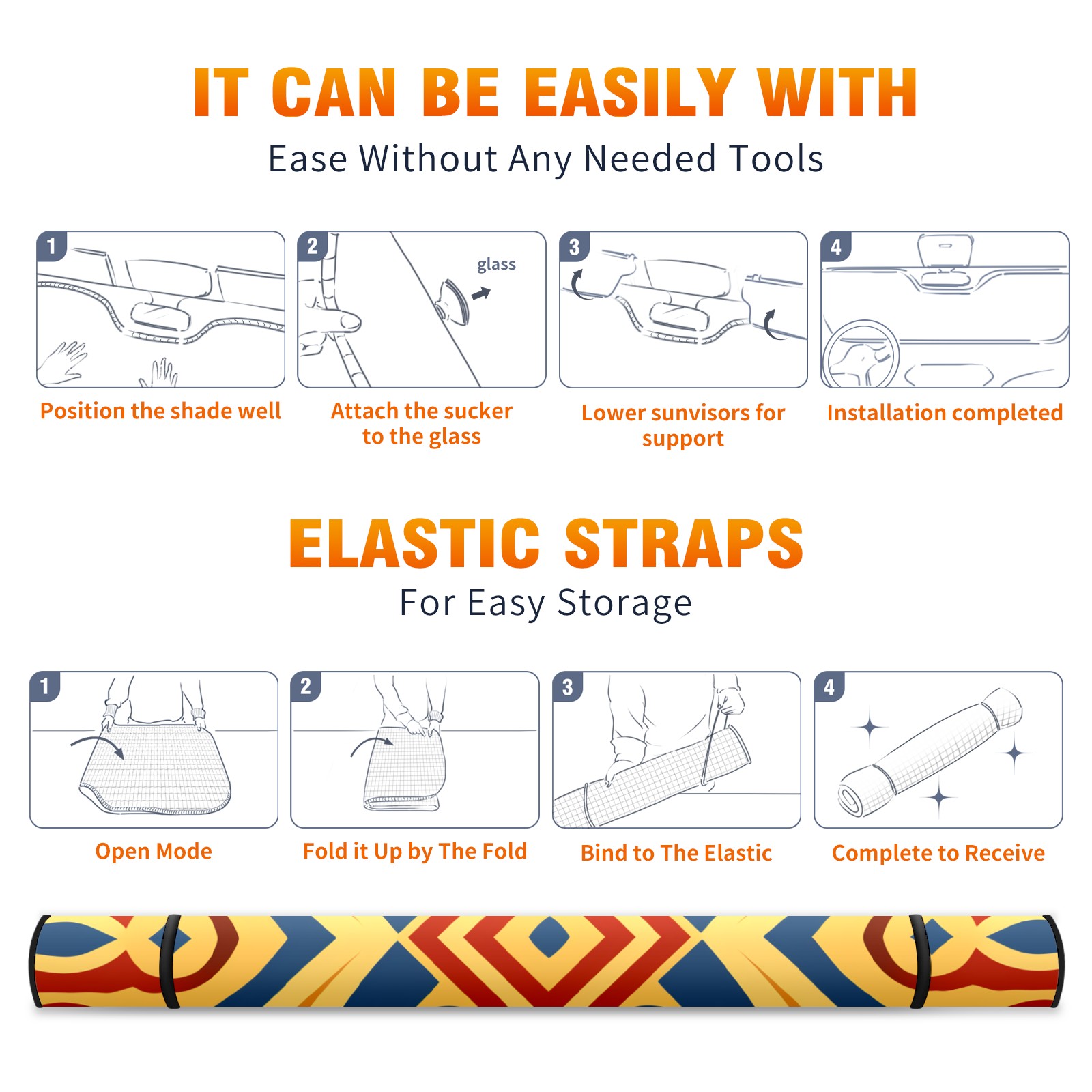 • <p><b>Foldable Premium Car Windshield Sunshade is your great solution to reduce your car’s interior temperature dramatically! This is definitely a must-have item for your summer travel!</b></p><p><b>【Precision Fit, Stylish Protection】</b></p><p>55"x30" (140x76cm) universal size with 3cm flexible margins fits curved windshields of most sedans/SUVs.</p><p><b>【Blocking Uv Rays &amp; Heat Insulation】</b></p><p>Our vehicle sunshade provides effective UV, sun, and summer heat protection, preventing leather fading and plastic cracking to keep your car interior pristine.</p><p><b>【Zero-Mark Installation &amp; Space-Saving】</b></p><p>Equipped with dual scratch-free silicone suction cups + adjustable straps: Medical-grade silicone cups hold firmly yet remove cleanly. Folds to A3 size (42x30cm x &lt;2cm thick), tucks discreetly into glove compartments or door pockets.&nbsp;</p>