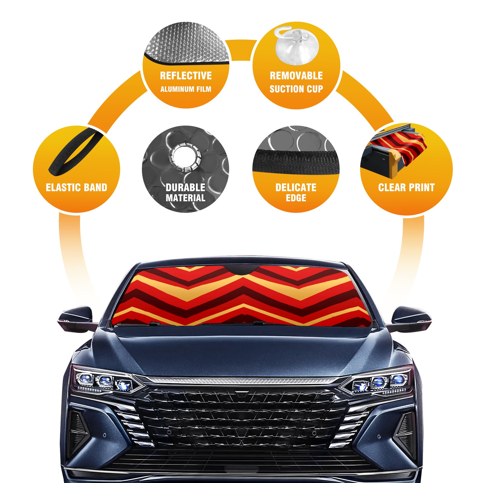 Red Abstract Geometry Car Sun Shade UV Protection Foldable Sunshade for Windshield Heat Insulation Portable Sun Shield for Car Interior Protection Automotive Window Protector